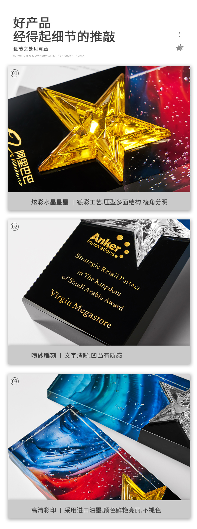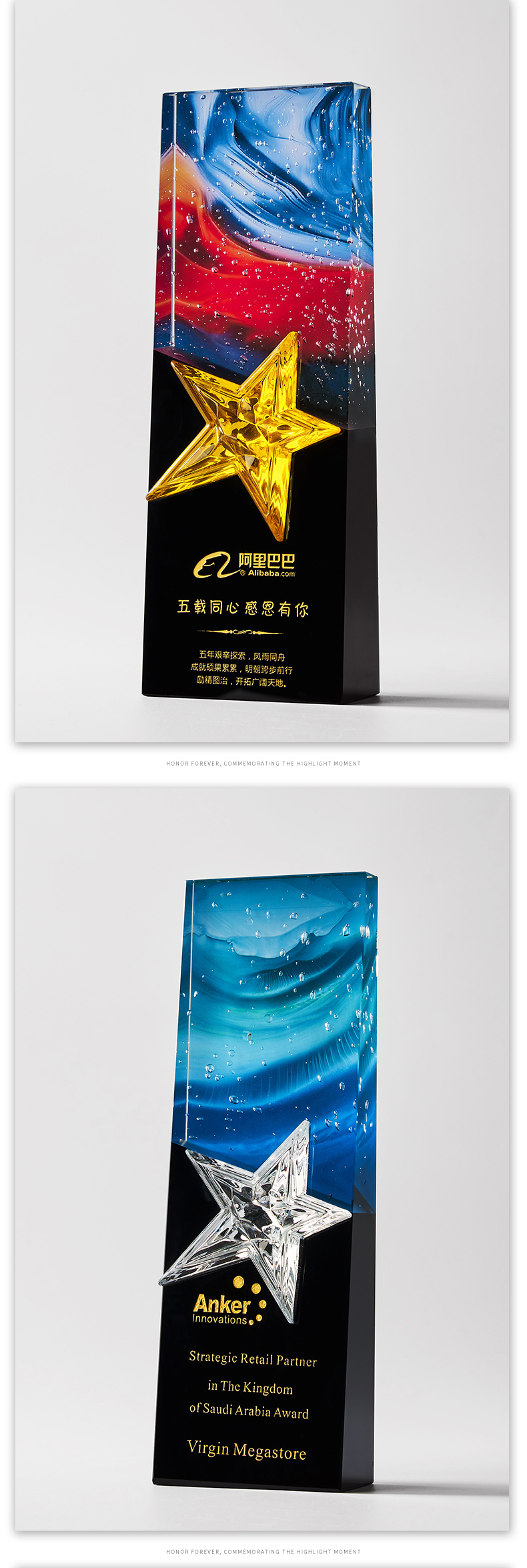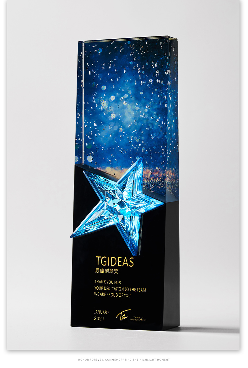 1034 / 高档大气炫彩水晶五角星奖杯定制创意刻字优秀员工颁奖表彰牌订制