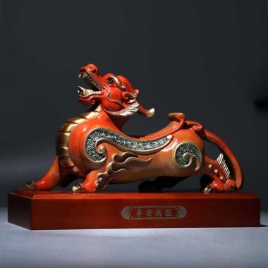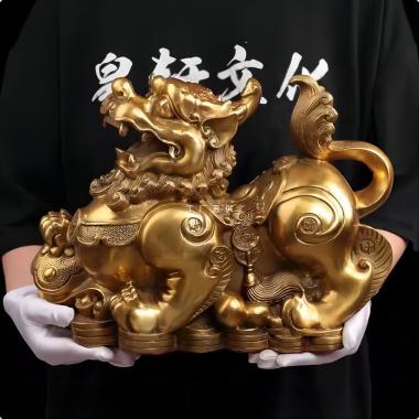 53 / 成都麒麟摆件全铜大号公母一对祥瑞麒麟家用办公室桌面装…