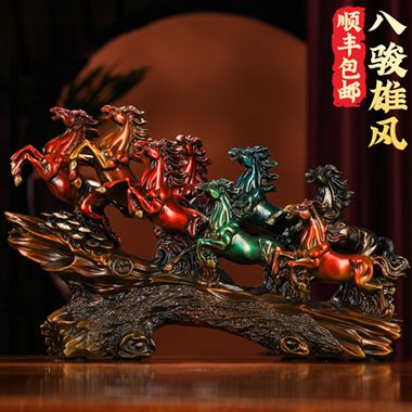 1131 / 成都礼之源琉璃象牙八骏马摆件家居客厅酒柜办公室装…