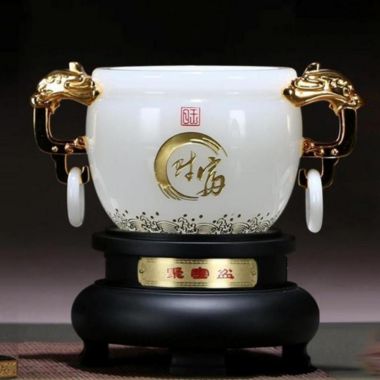 27 / 成都白玉琉璃聚宝盆摆件招财工艺品客厅办公室家居装饰品…