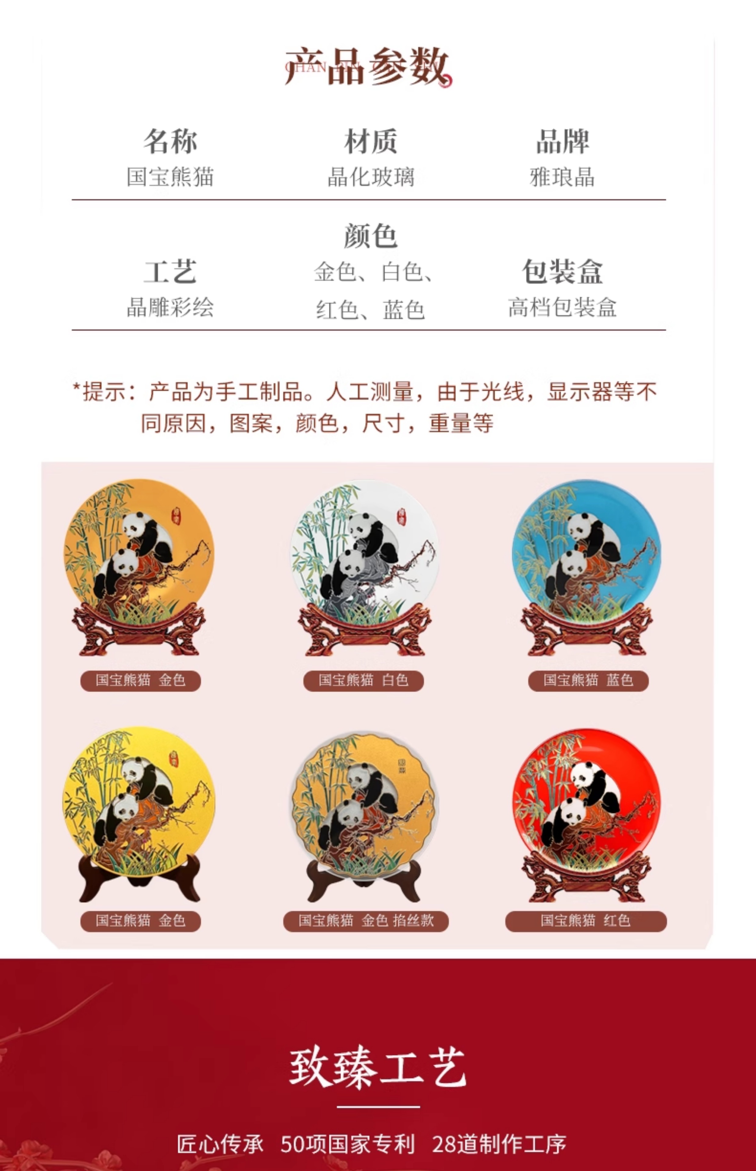 9 / 雅琅晶国宝熊猫摆件中国特色工艺品送外宾老外创意礼品高档定制