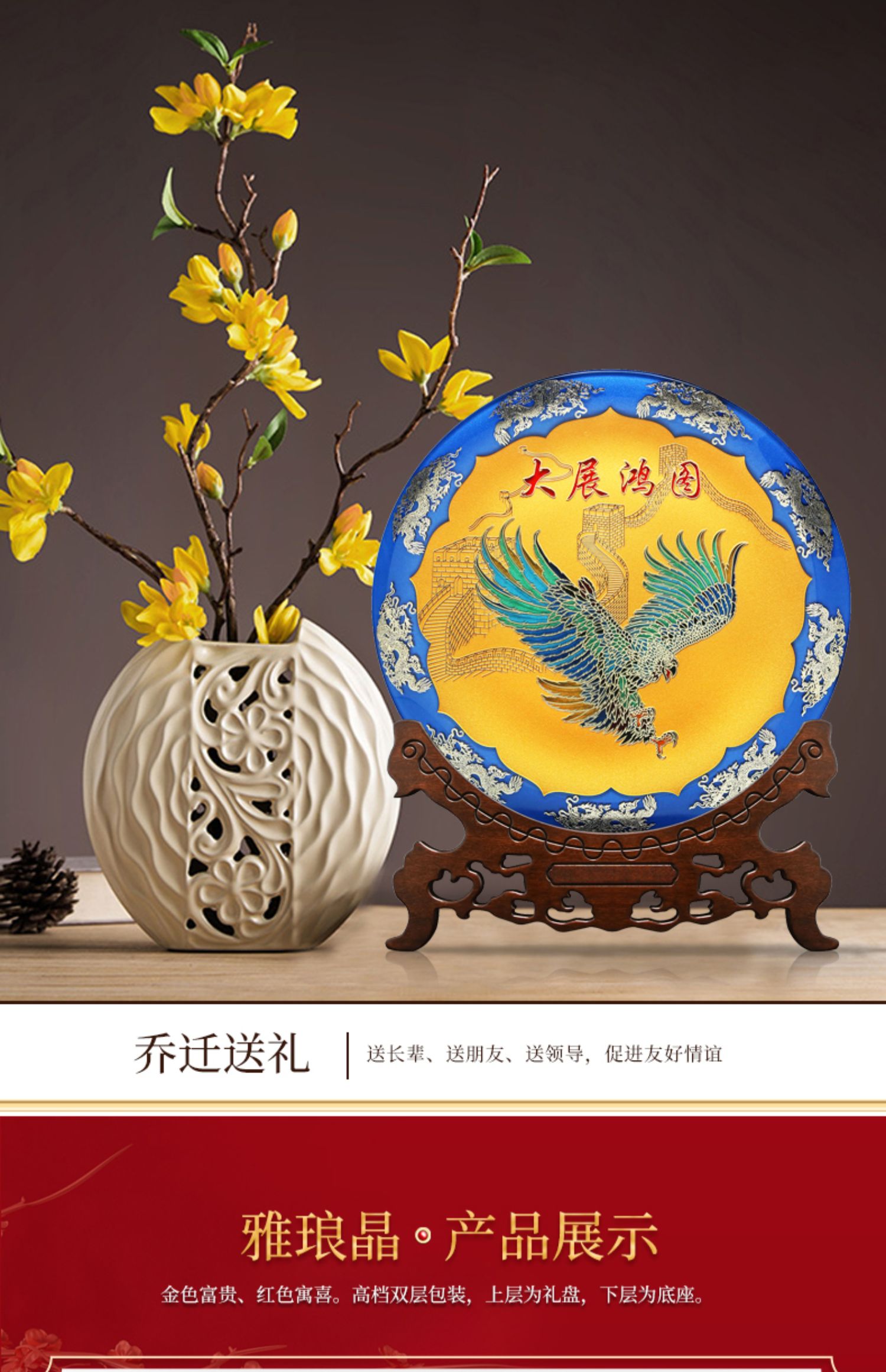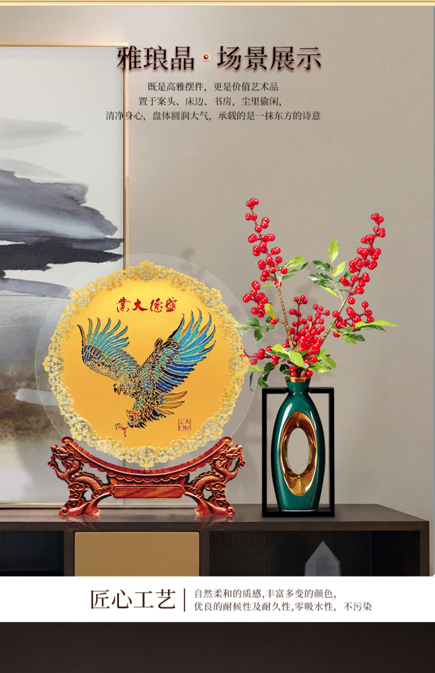 7 / 雅琅晶大展宏图摆件客厅老板办公室家居装饰老鹰工艺品开业纪念盘