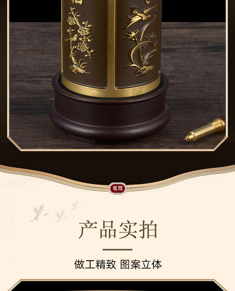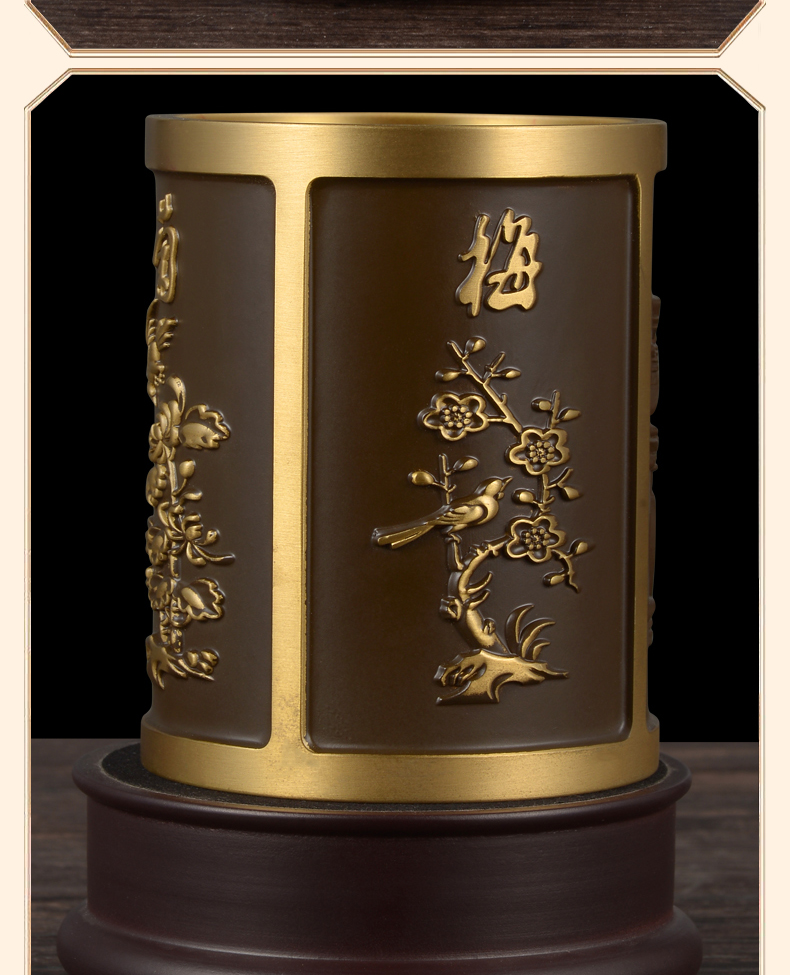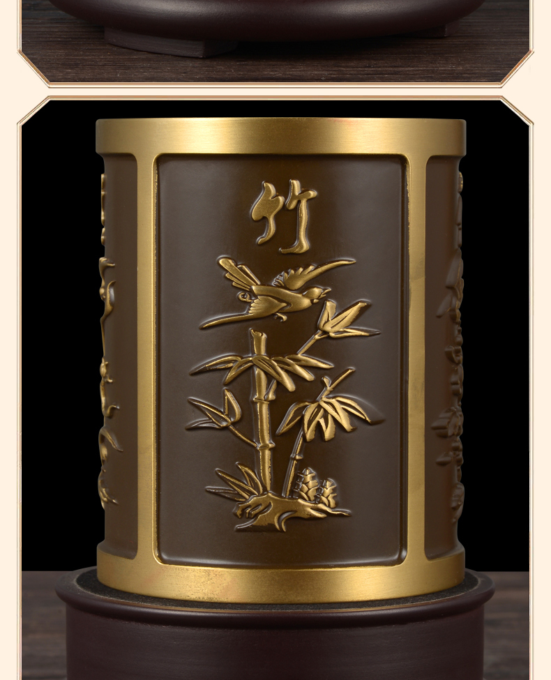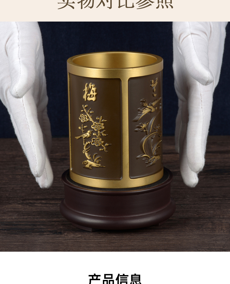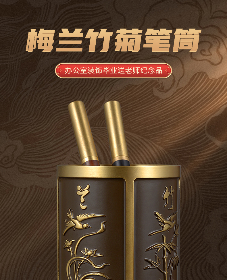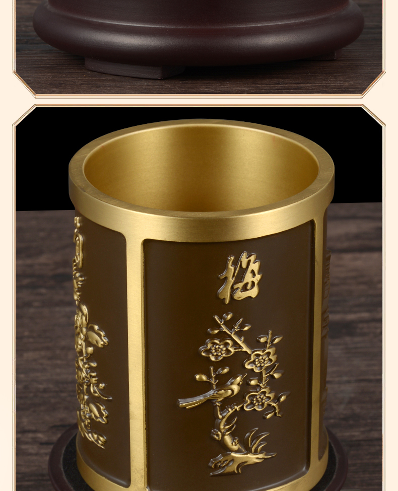 22 / 全铜梅兰竹菊全铜笔筒摆件办公室桌面书房摆设送老师同事退休礼品
