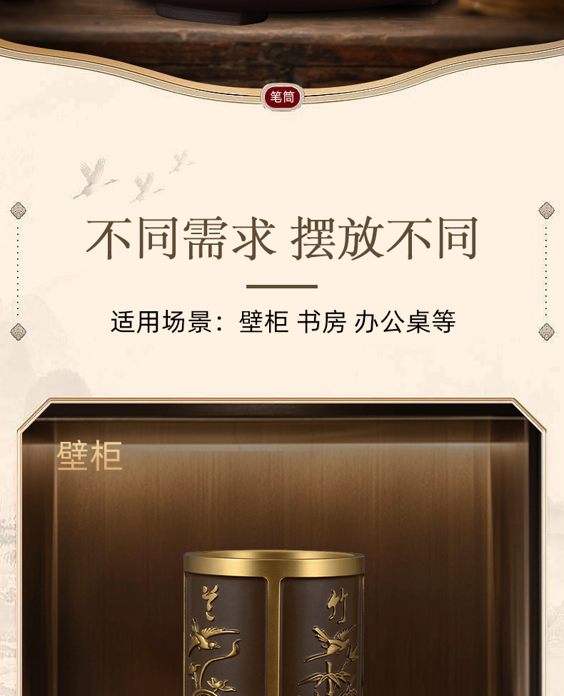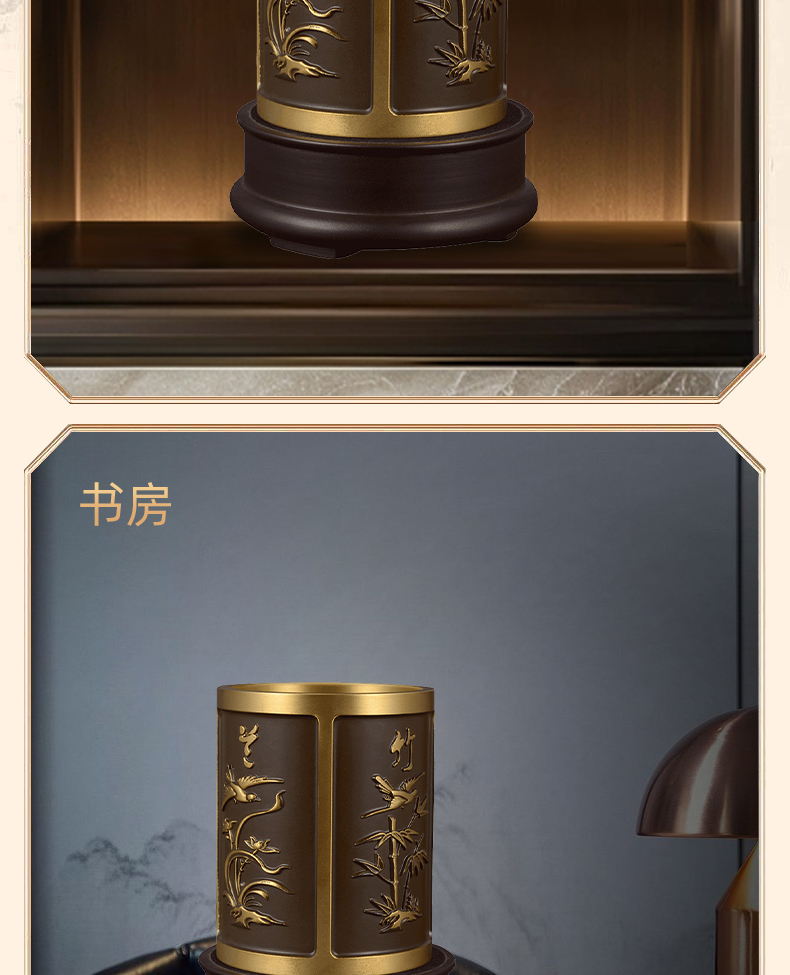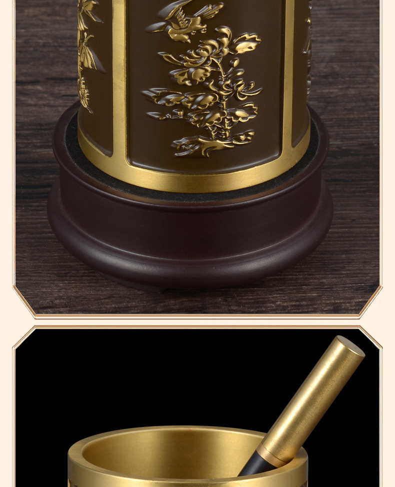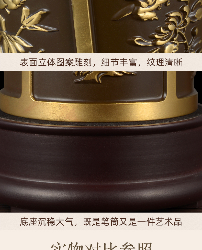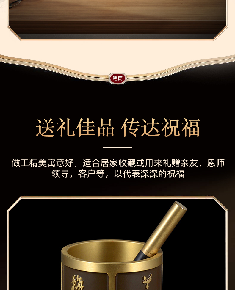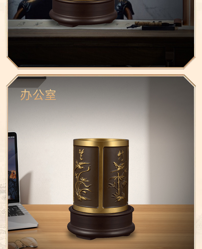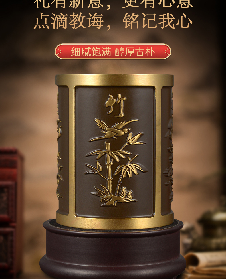 22 / 全铜梅兰竹菊全铜笔筒摆件办公室桌面书房摆设送老师同事退休礼品