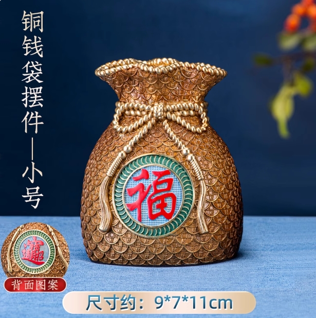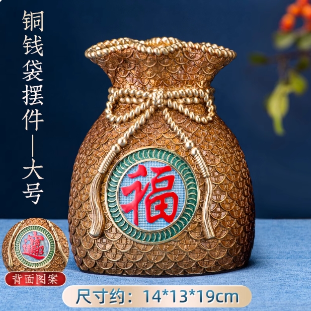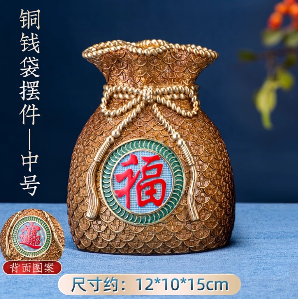 46 / 彩铜钱袋摆件聚宝盆只进不出存钱罐开业送礼电视机柜卧室工艺品