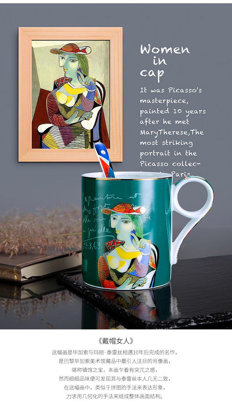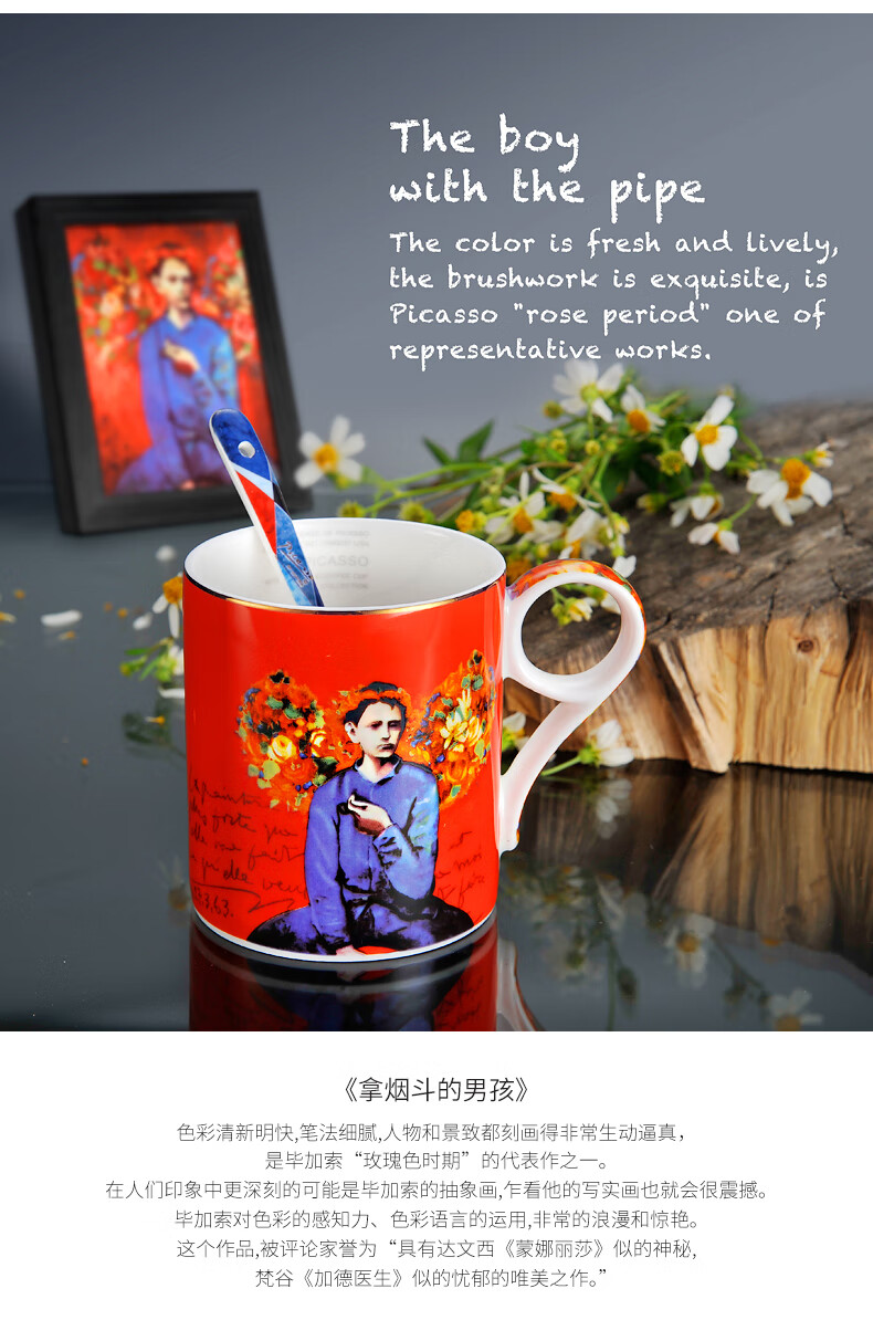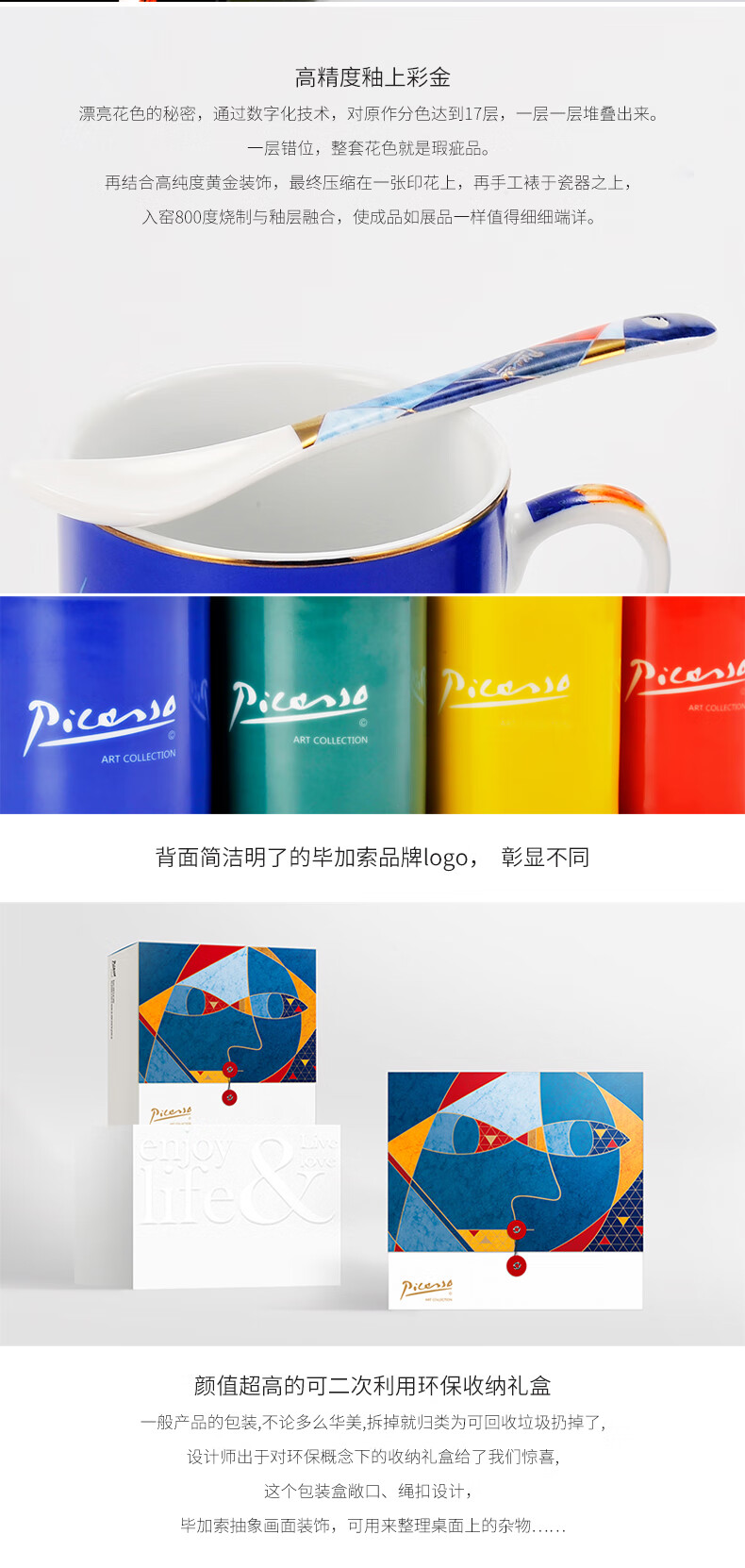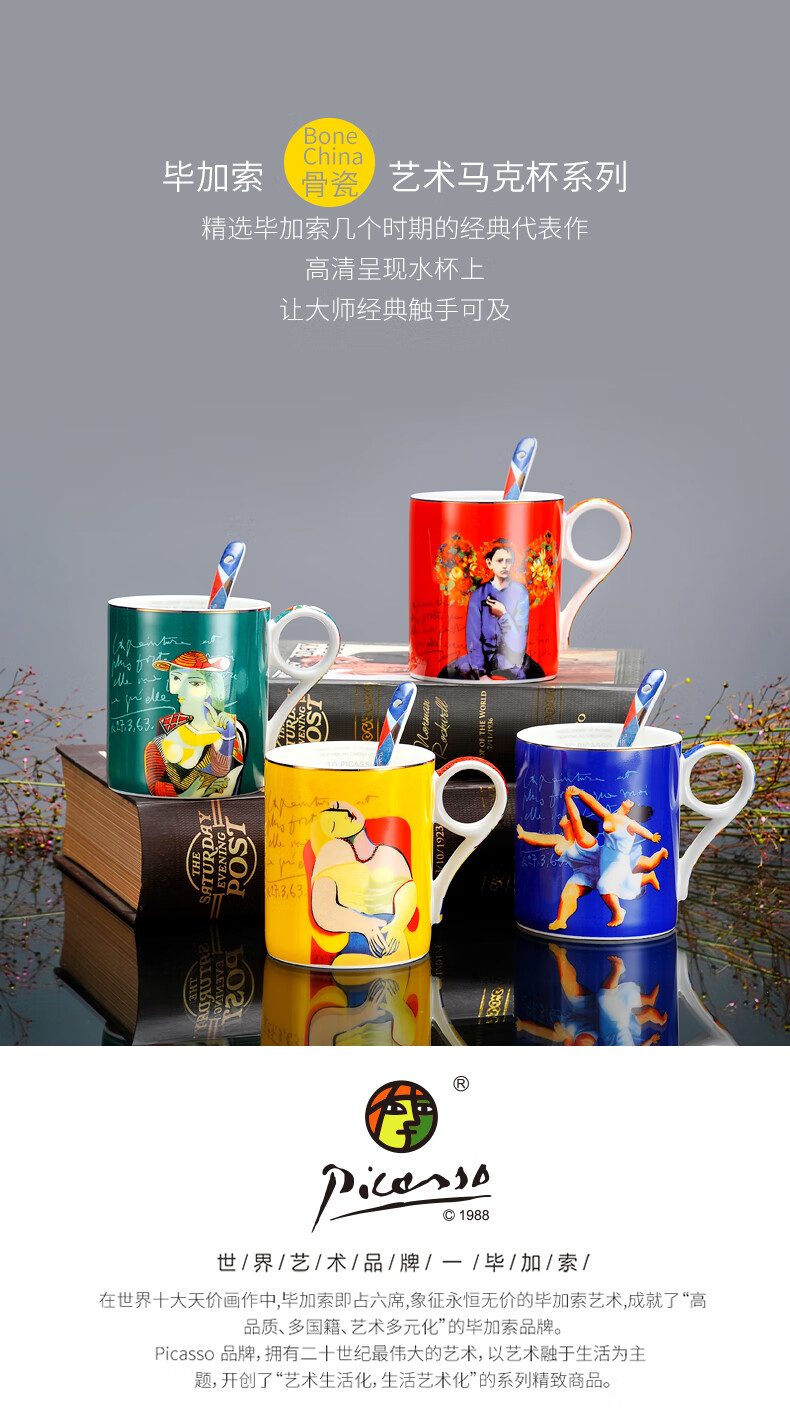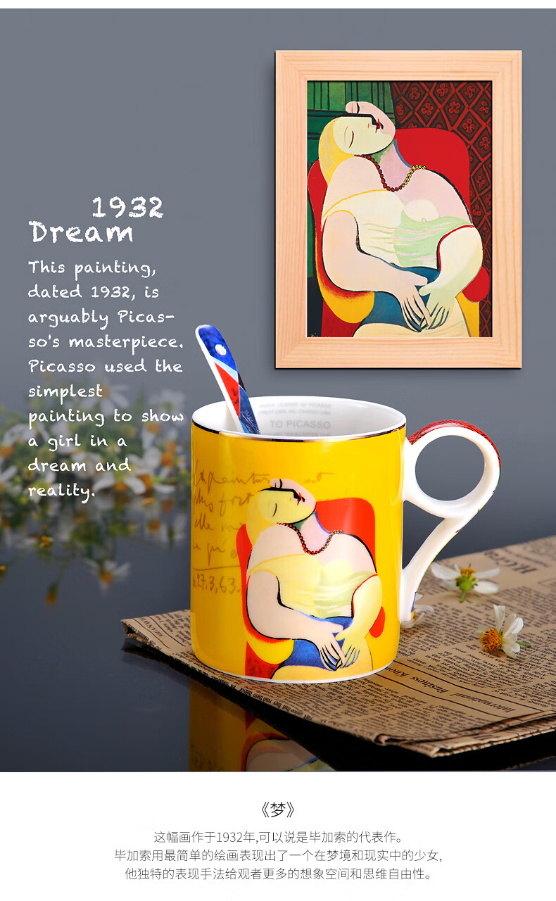 4 / Picasso艺术画作高档礼品高颜值大容量马克情侣咖啡杯带勺子 黄色-梦(1杯1勺)