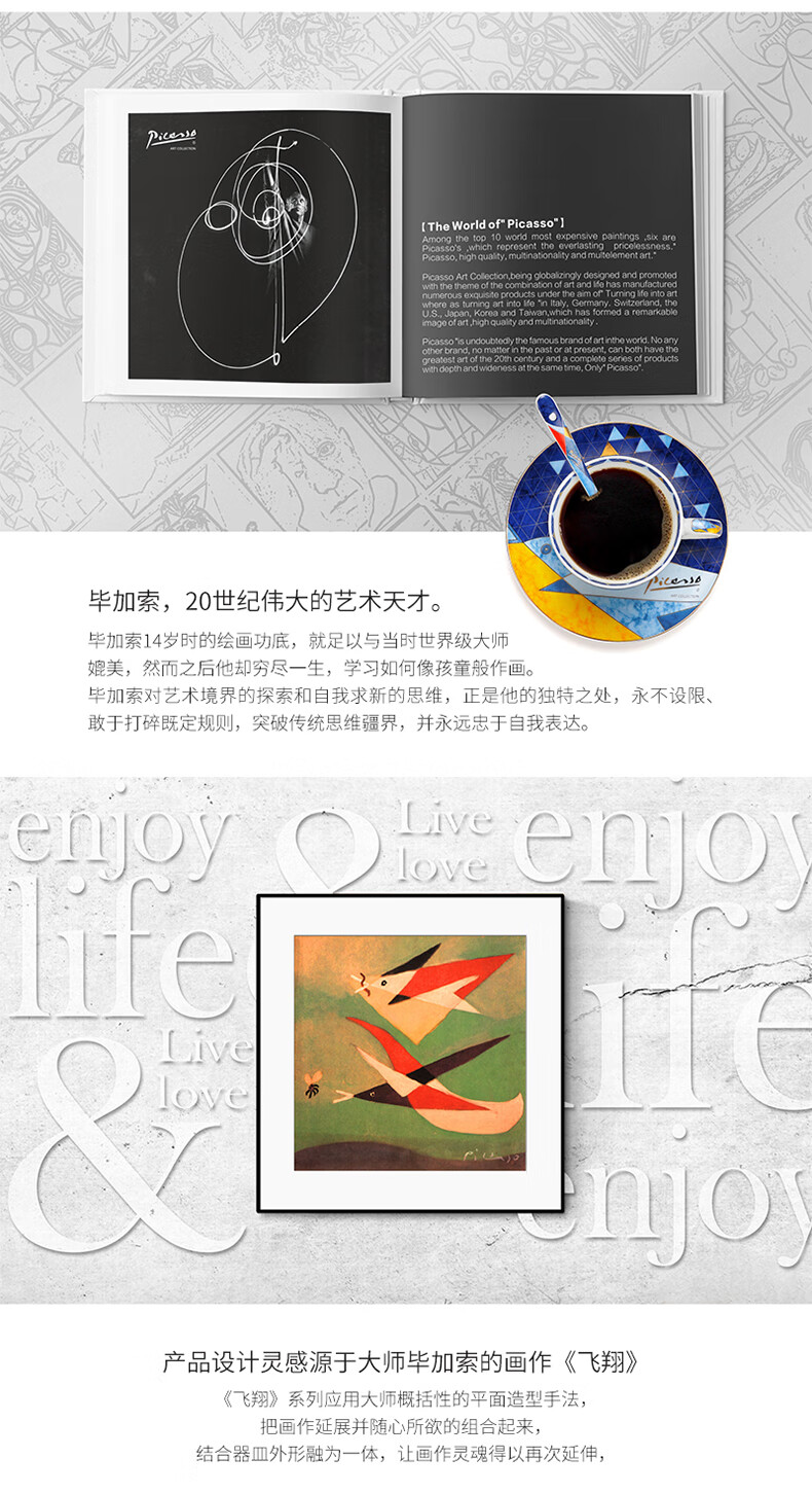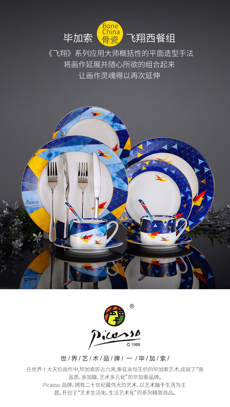 2 / Picasso毕加索西餐乔迁碗盘陶瓷餐茶具套装北欧风《飞翔》系列 毕加索骨瓷《飞翔》西餐组一人食