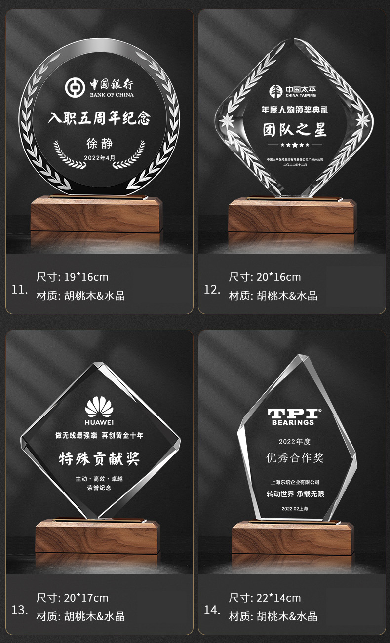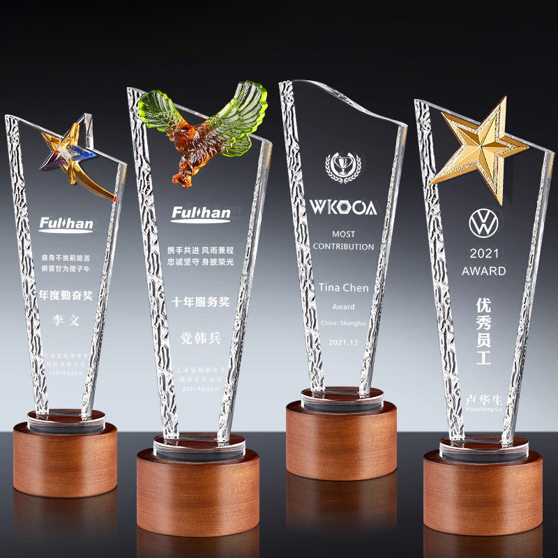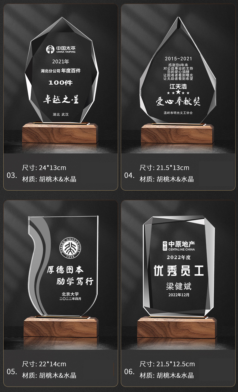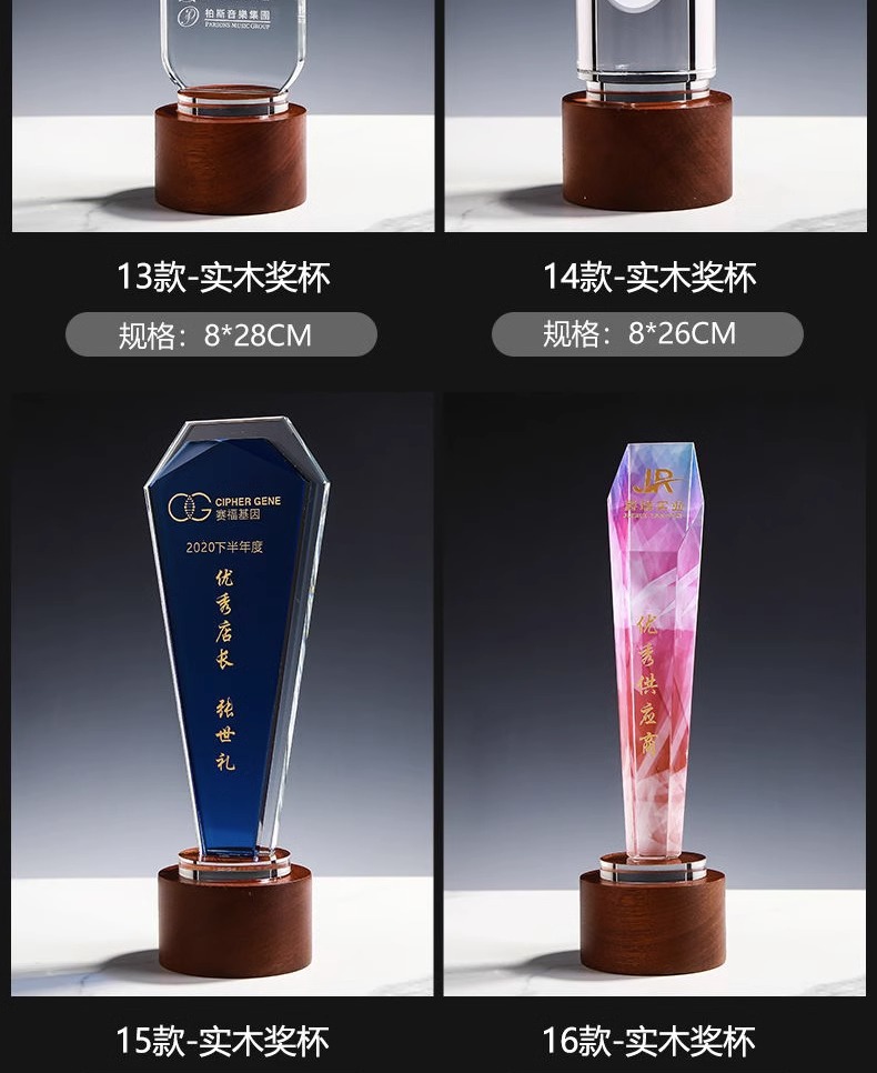 111 / 创意实木水晶奖杯奖牌定制奖牌定做荣誉牌优秀员工年会纪念品表彰颁奖