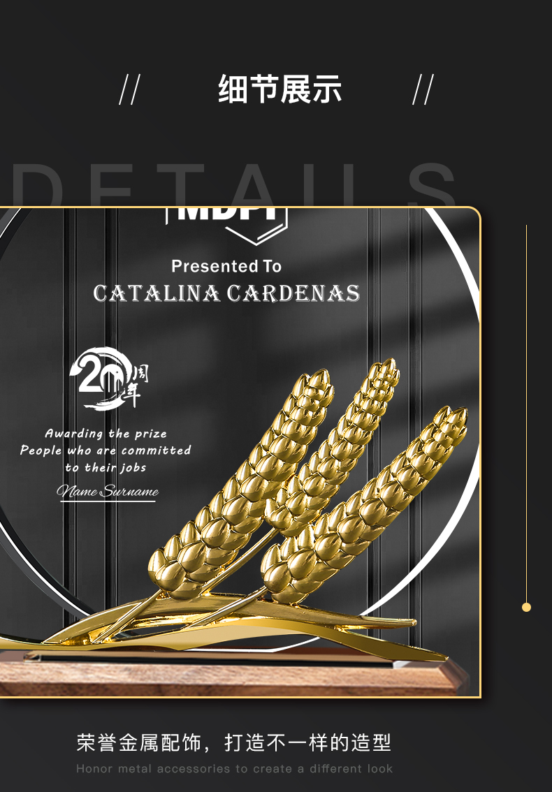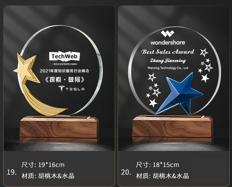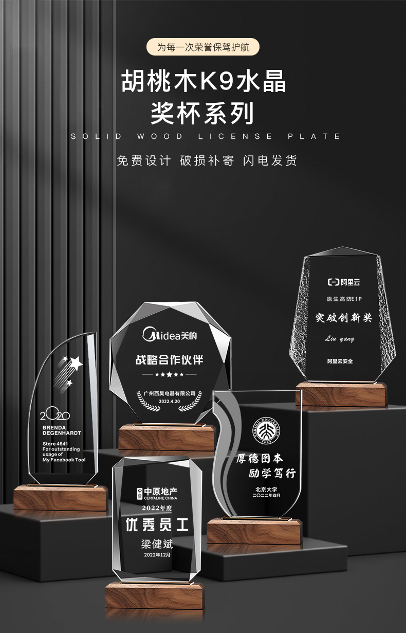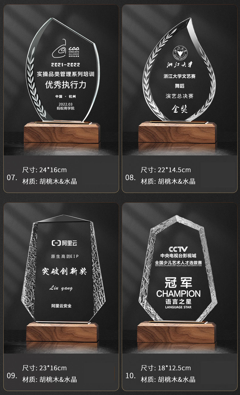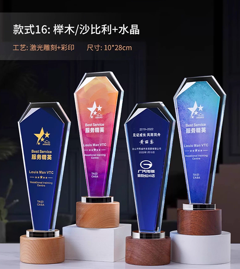 111 / 创意实木水晶奖杯奖牌定制奖牌定做荣誉牌优秀员工年会纪念品表彰颁奖