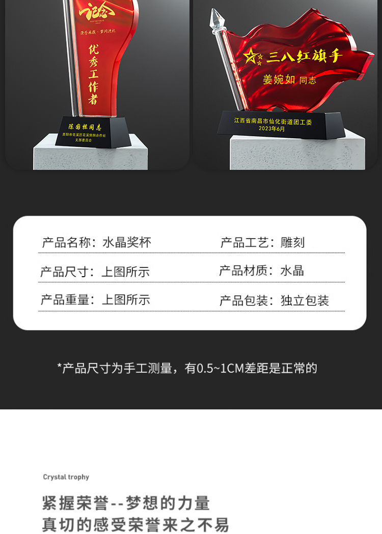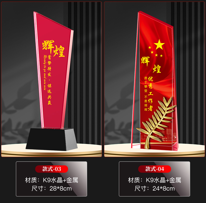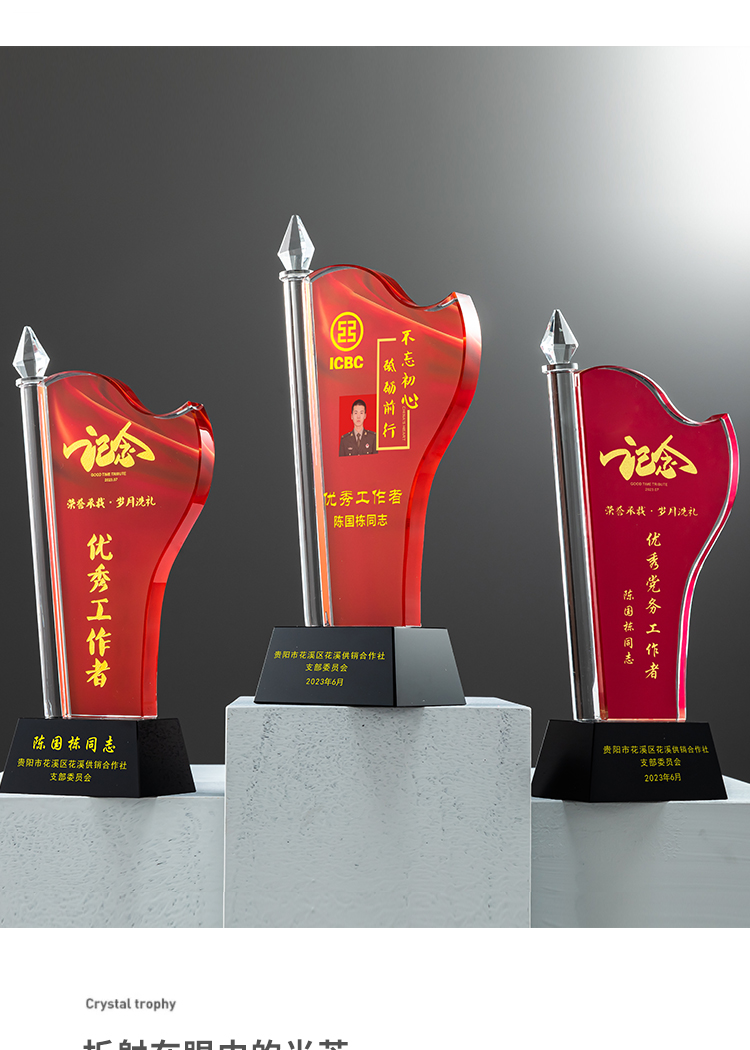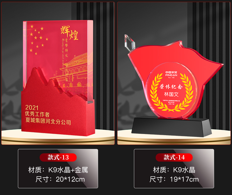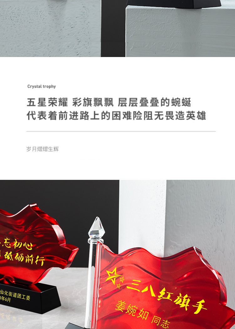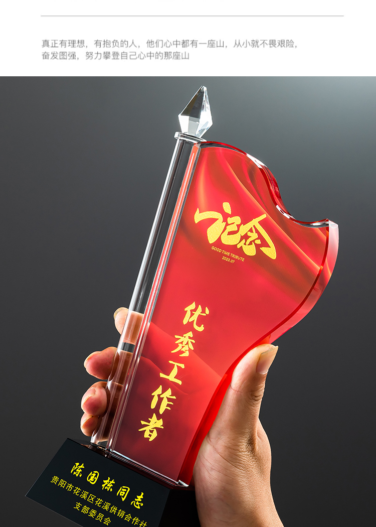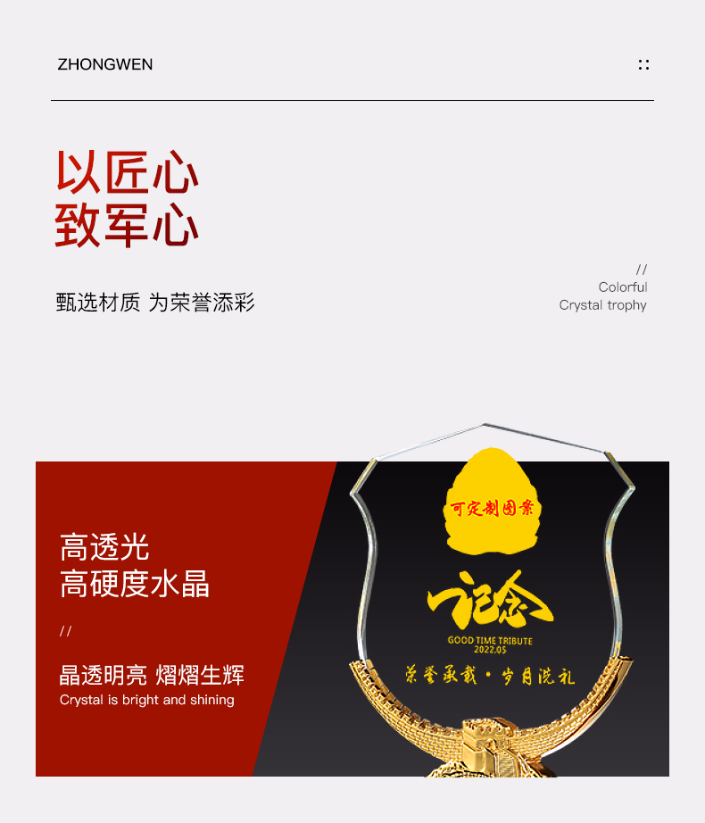 438 / 【红旗盾牌主题】退伍八一小金人军人老兵优秀士兵纪念品水晶奖杯定制金属树脂镀金
