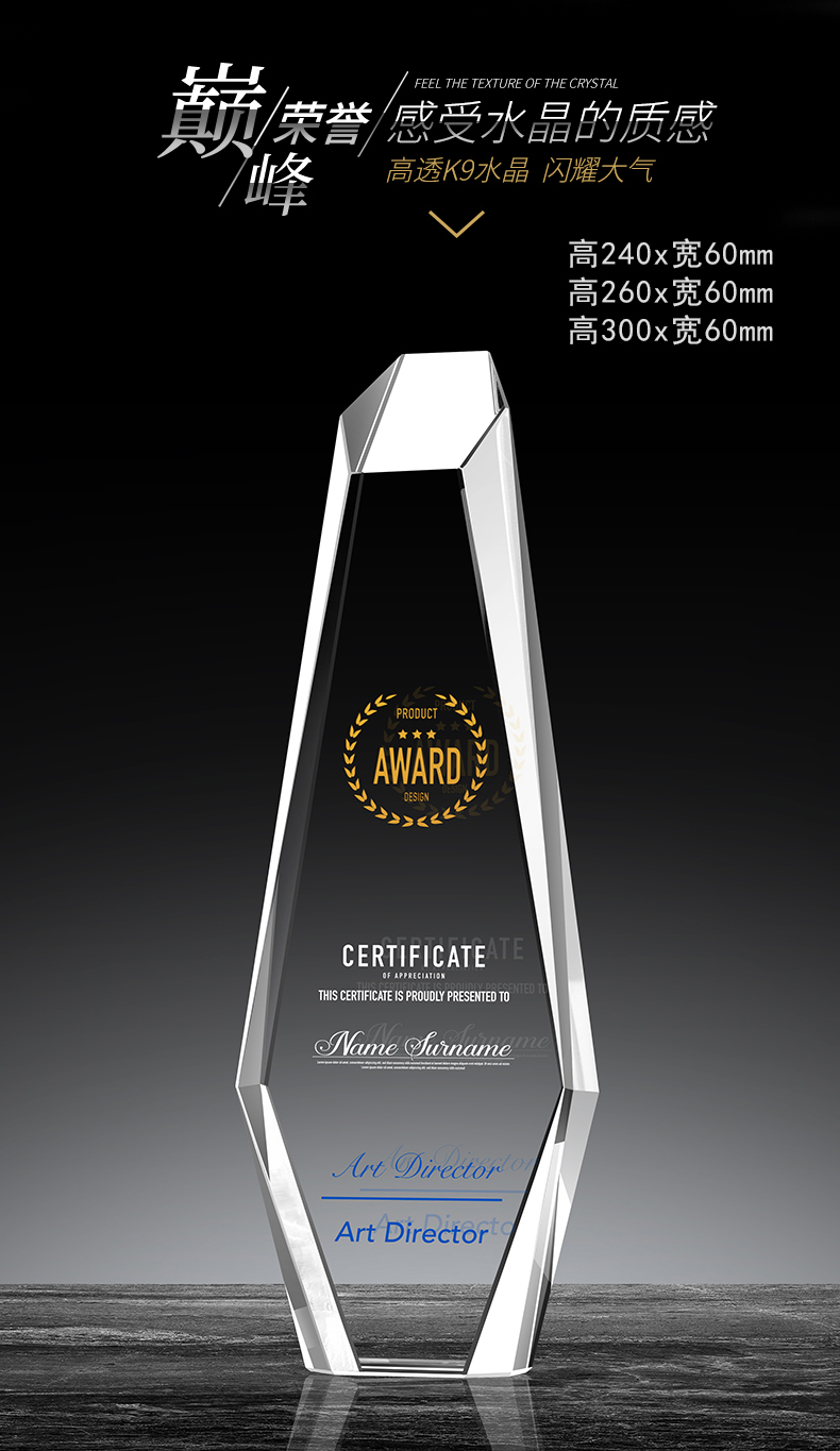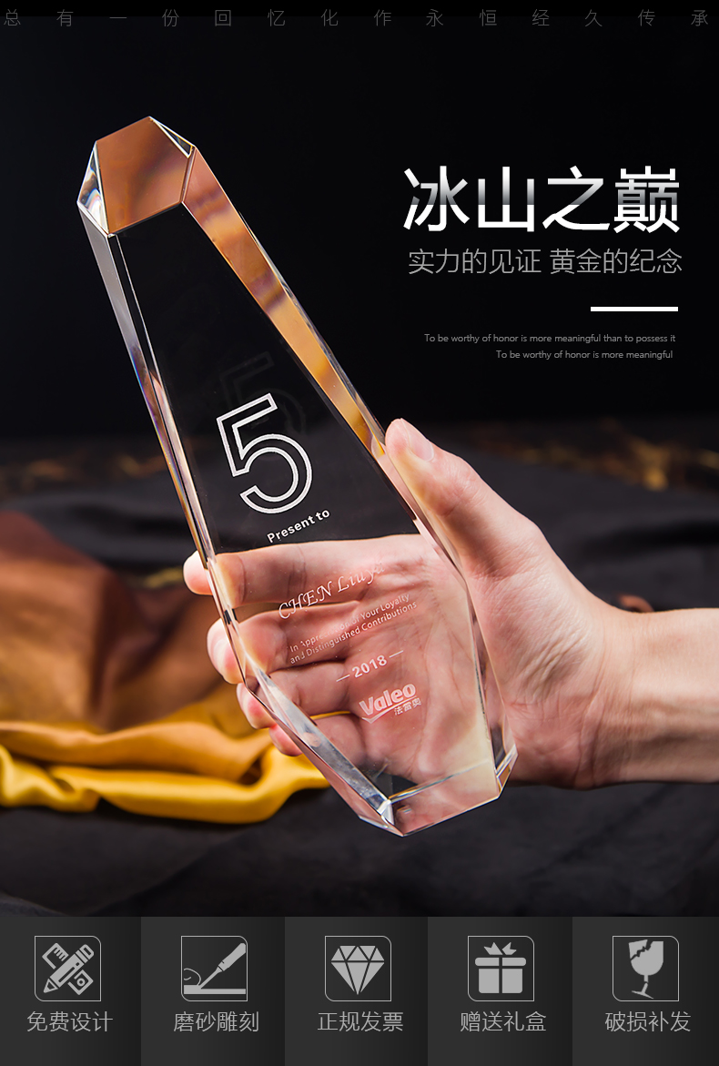 136 / 创意冰山系列水晶奖杯定制定做优秀员工冠军颁奖免费刻字制作