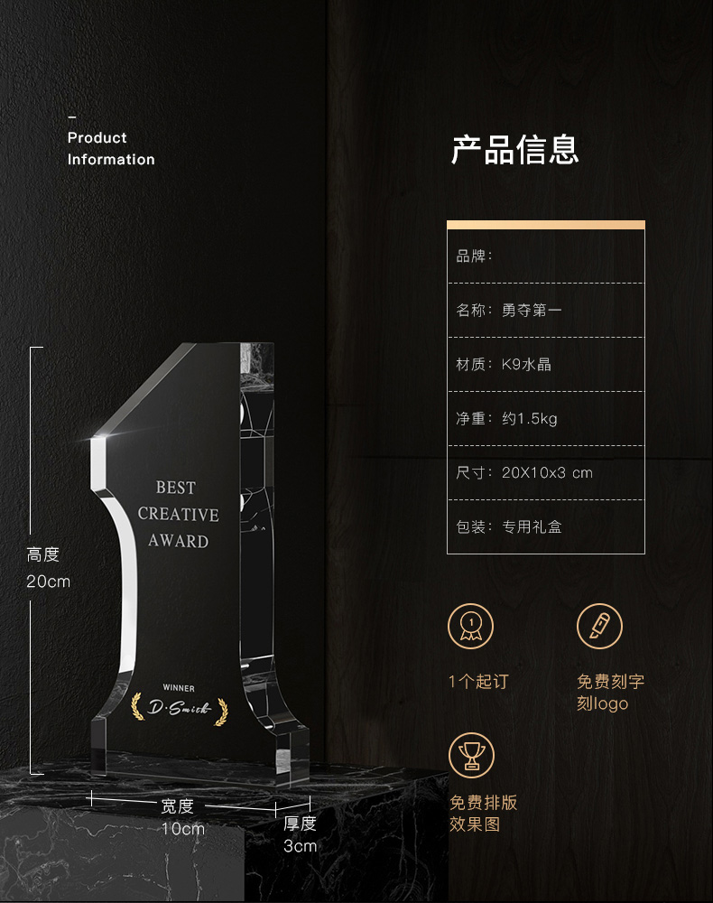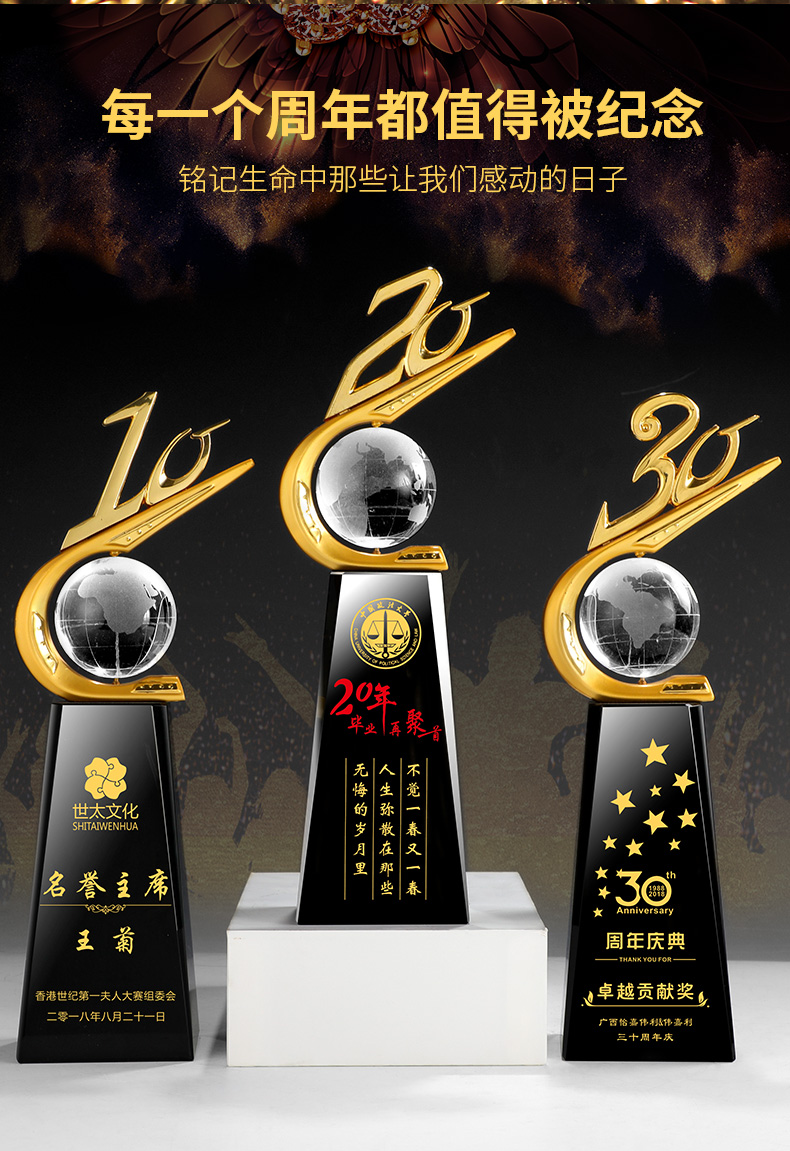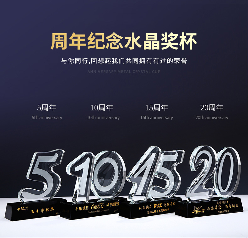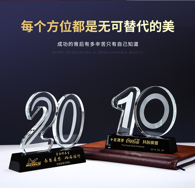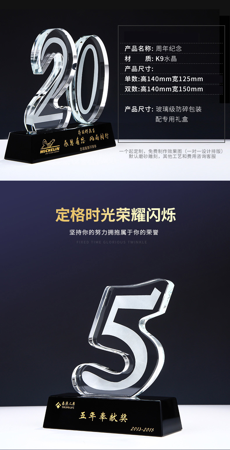 435 / 【周年纪念主题】水晶数字奖杯定制公司十周年庆典纪念品五周年二十周年老员工奖品