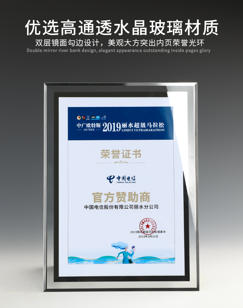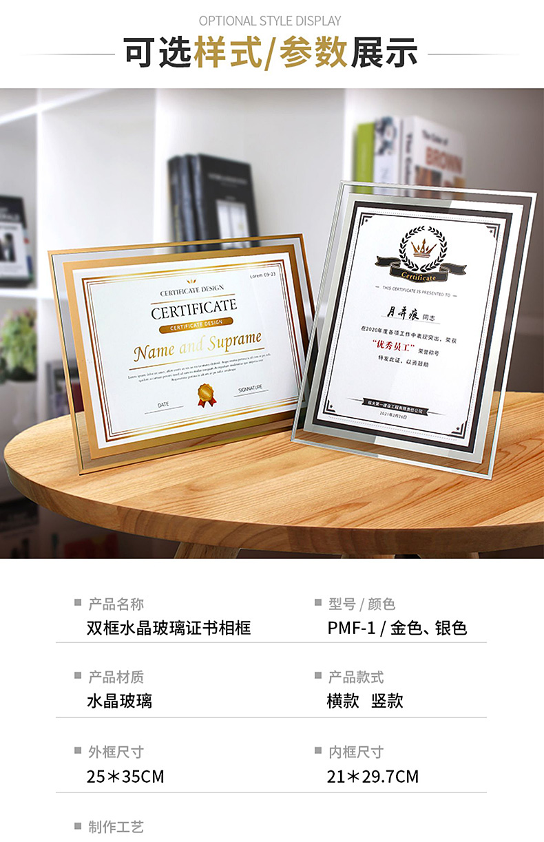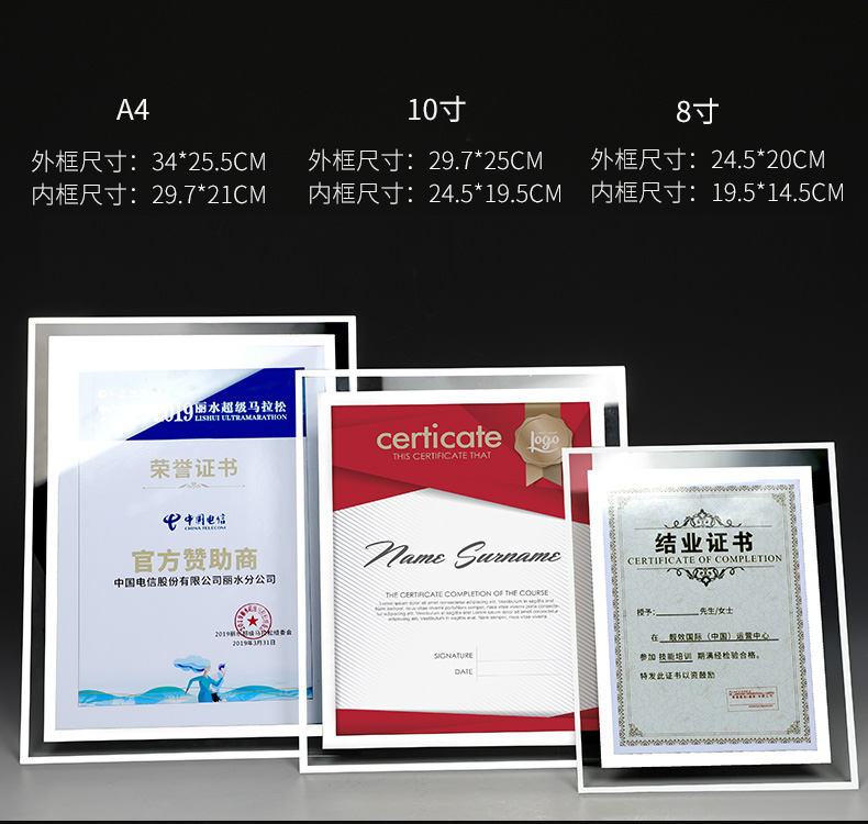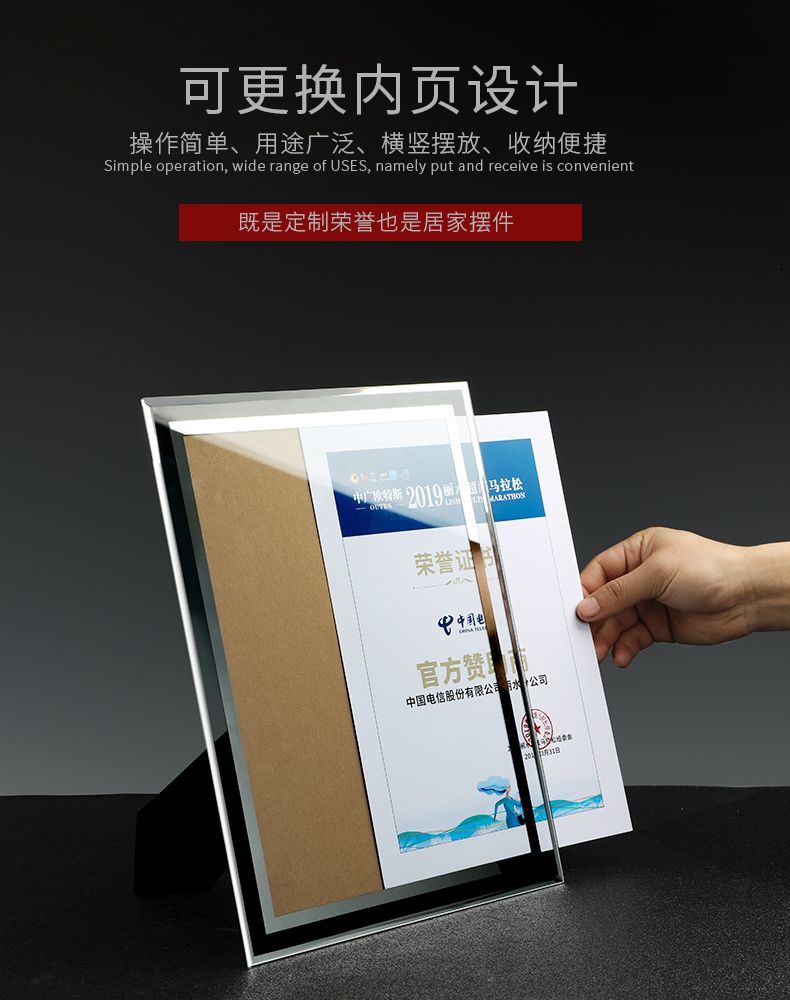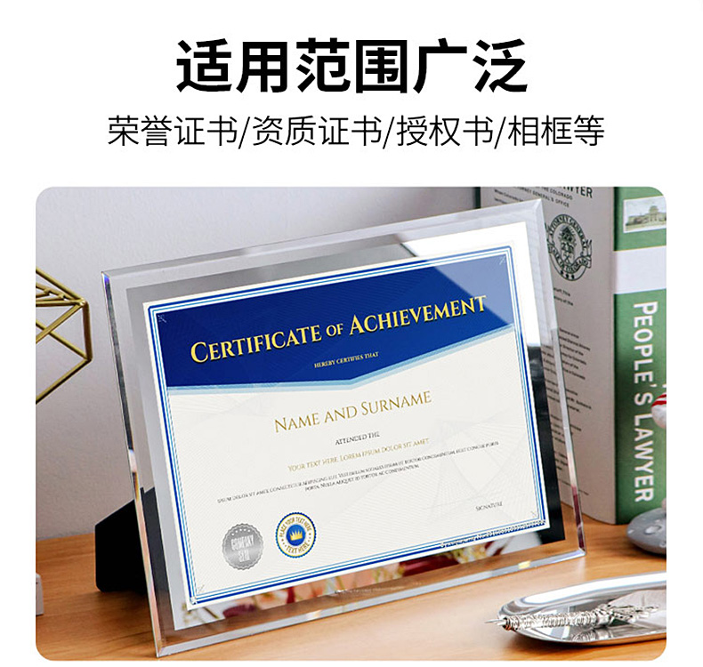 384 / 【透明水晶玻璃相框】6 7 8 12寸摆台A4授权证书12商标专利证书框挂墙