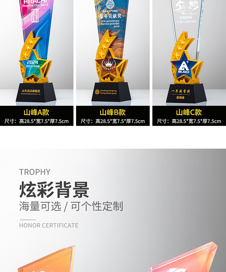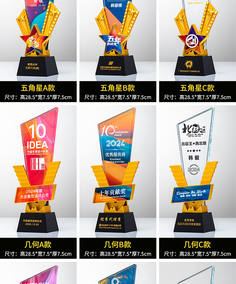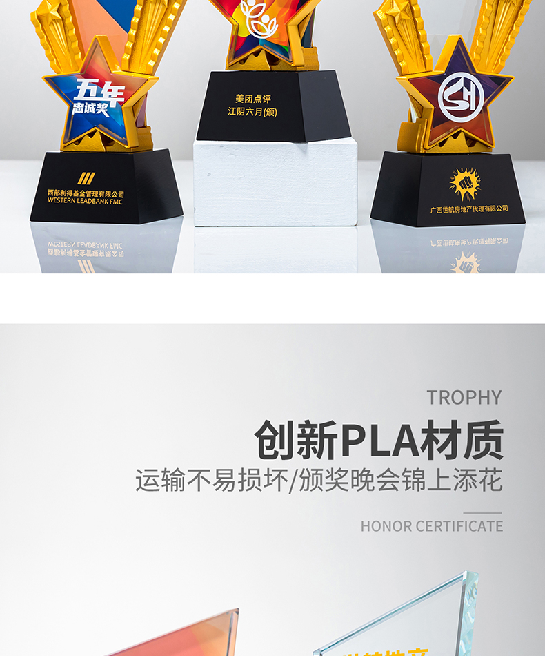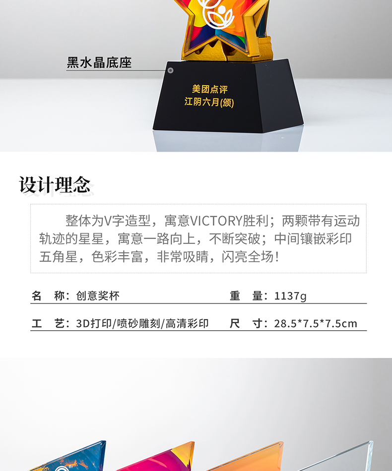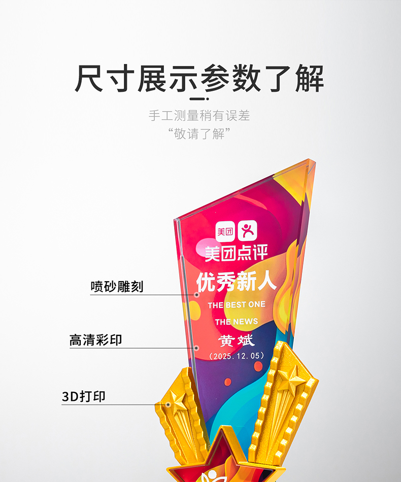 316 / 【3D打印款】新款创意奖杯五角星水晶奖杯定制定做公司年会嘉奖定制