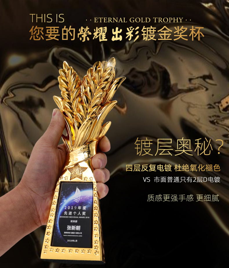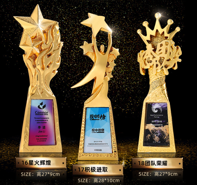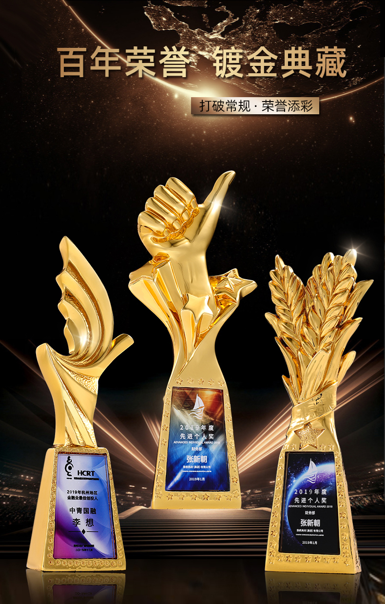 263 / 新款树脂镀金奖杯定制年会颁奖优秀员工创意项目活动比赛奖杯定做