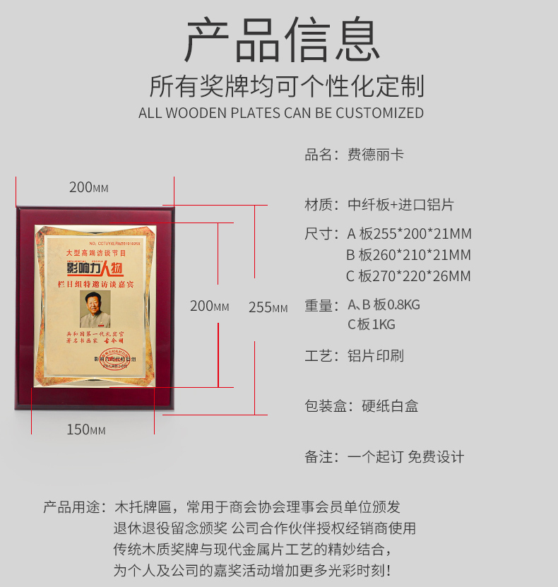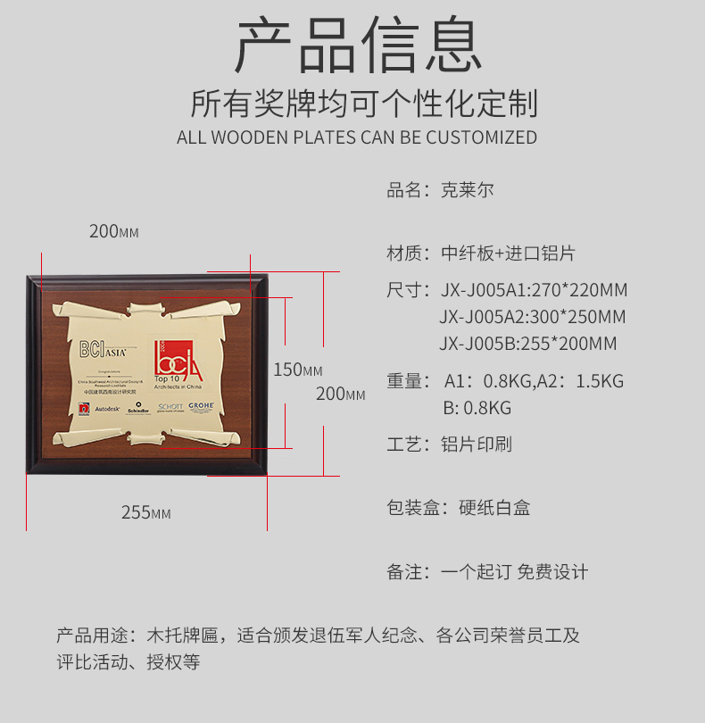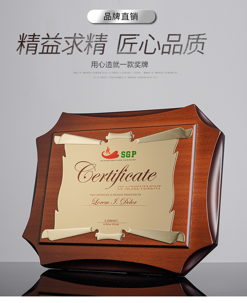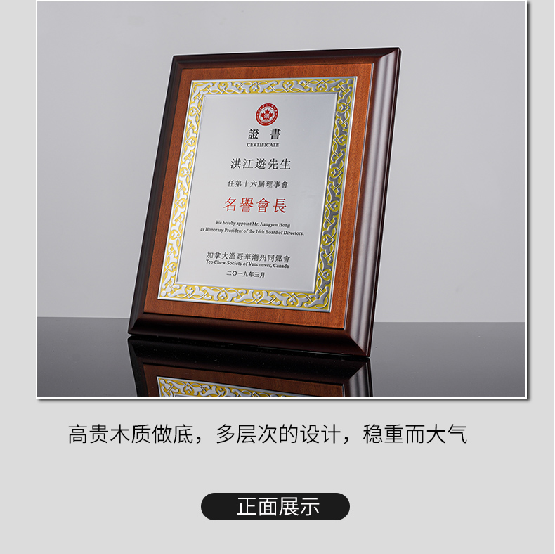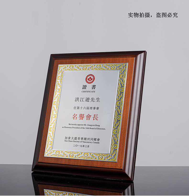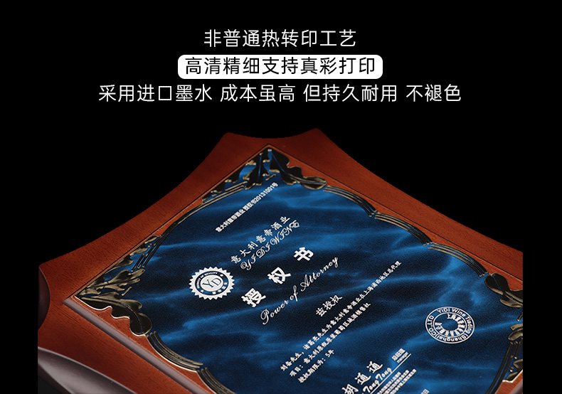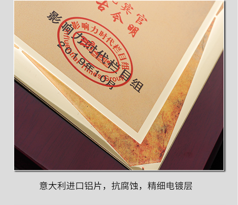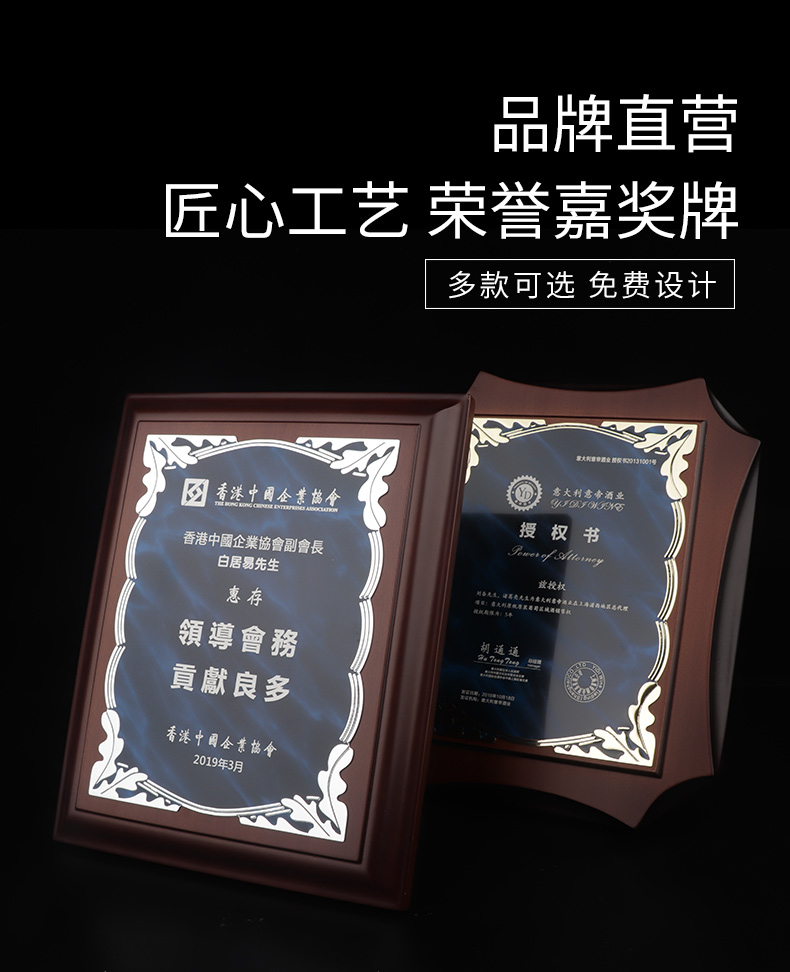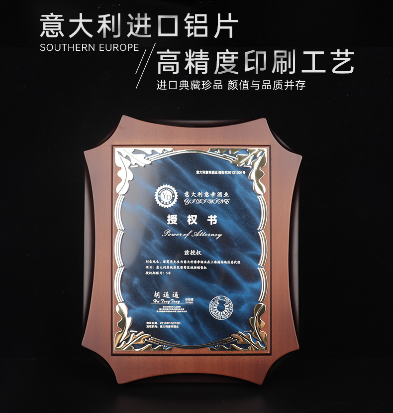 531 / 意大利进口木质奖牌定制订做高端商会牌匾加盟授权牌荣誉证书创意颁奖纪念品