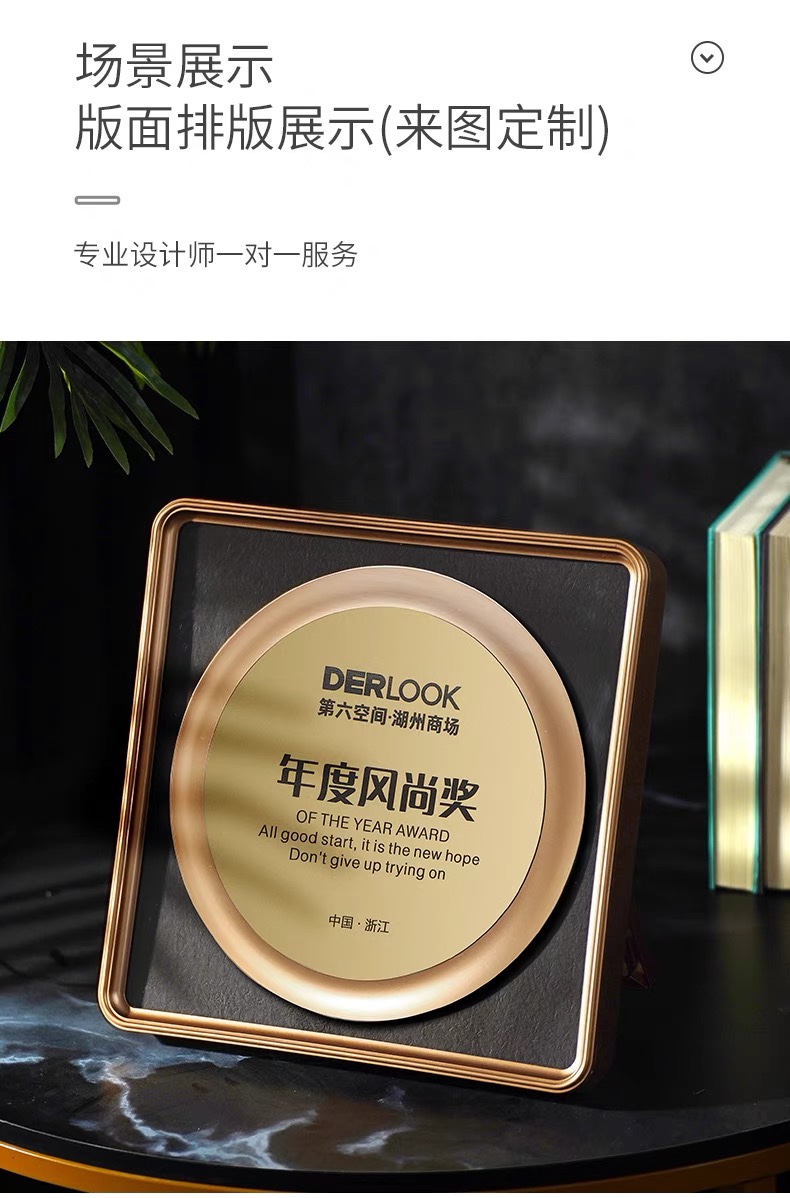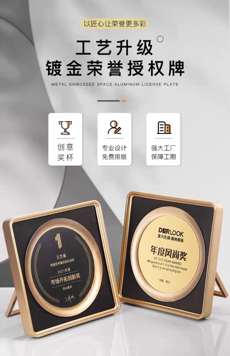 509 / 创意金属奖牌定制定做高档荣誉牌匾医美商会纪念奖盘加盟店授权牌