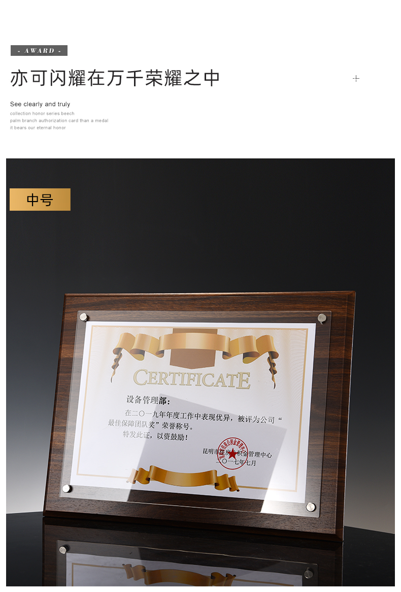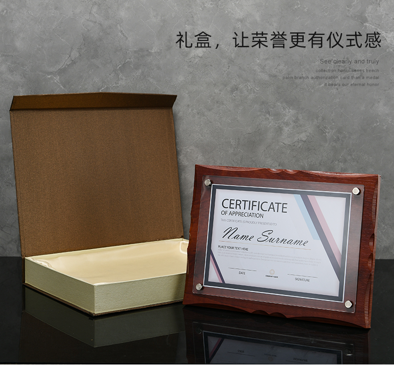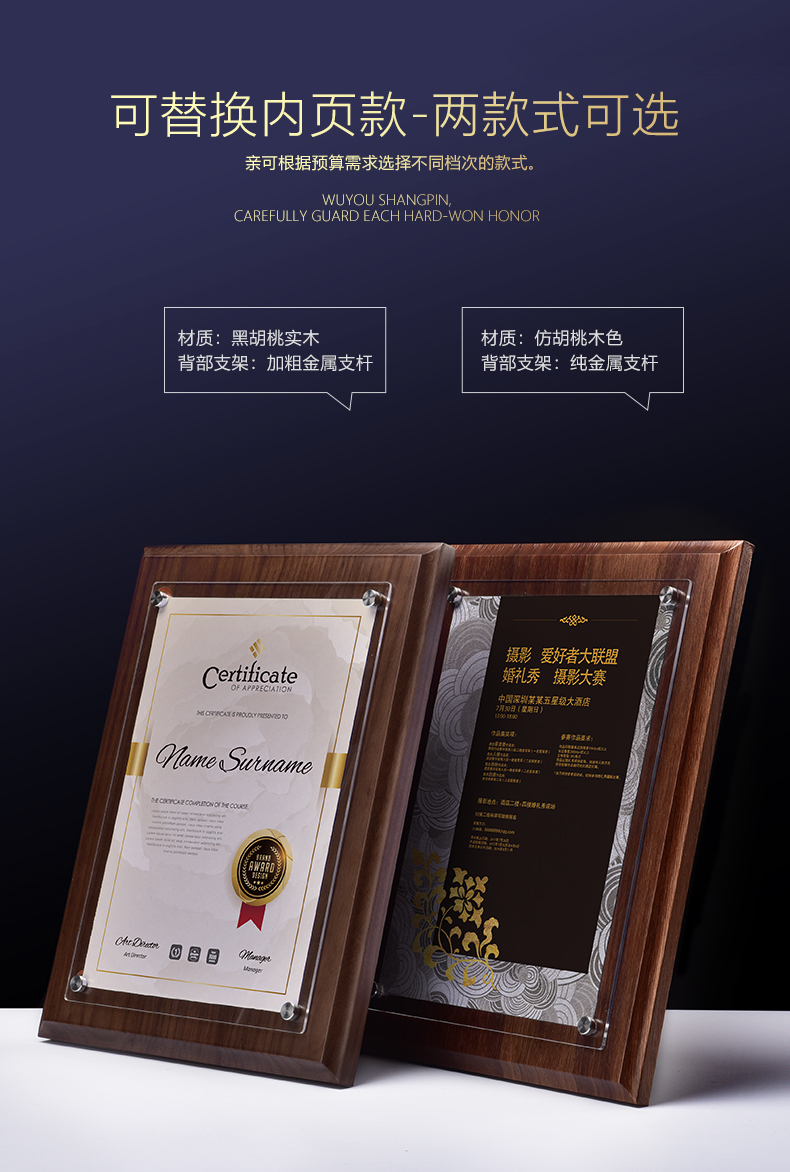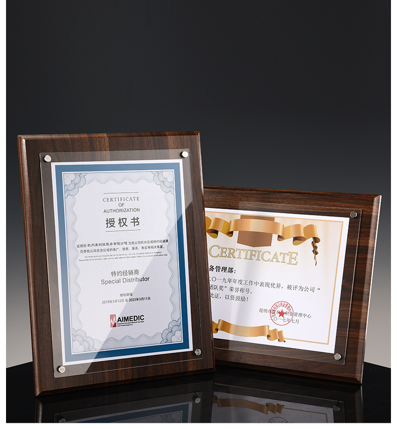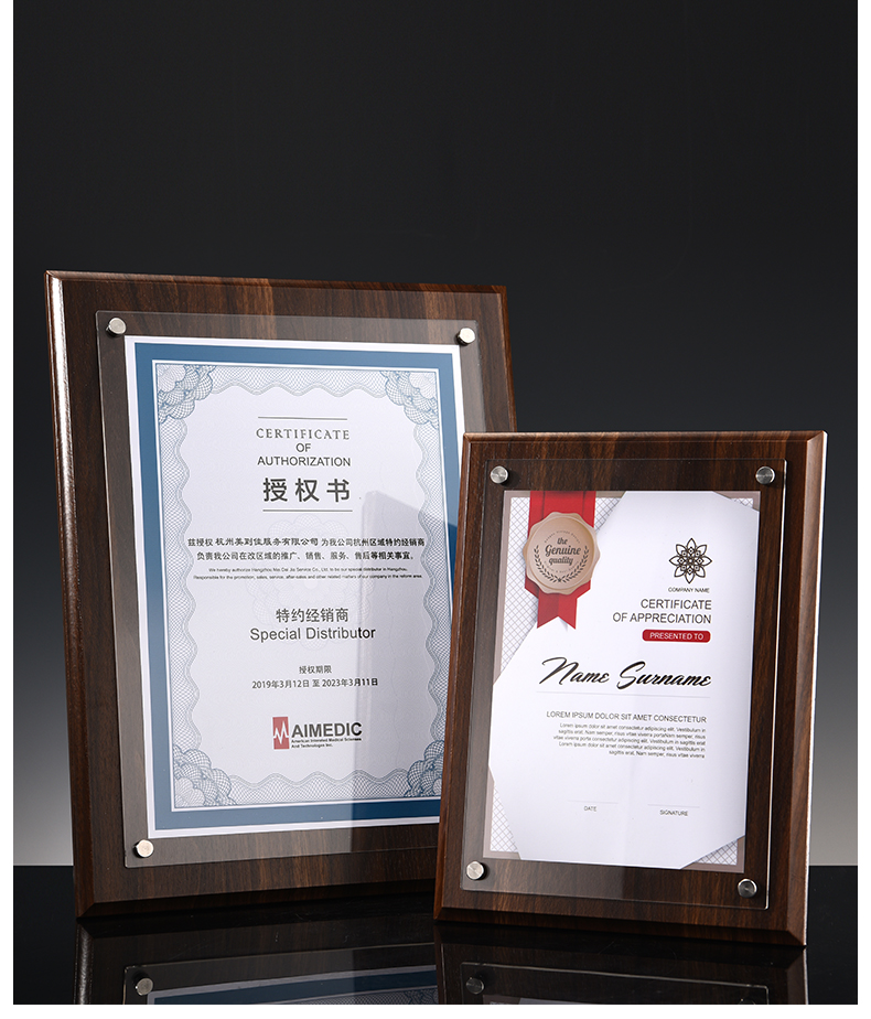508 / 【木相框】荣誉证书相框摆台制作打印捐赠毕业结业证书定制水晶企业培训资质定做