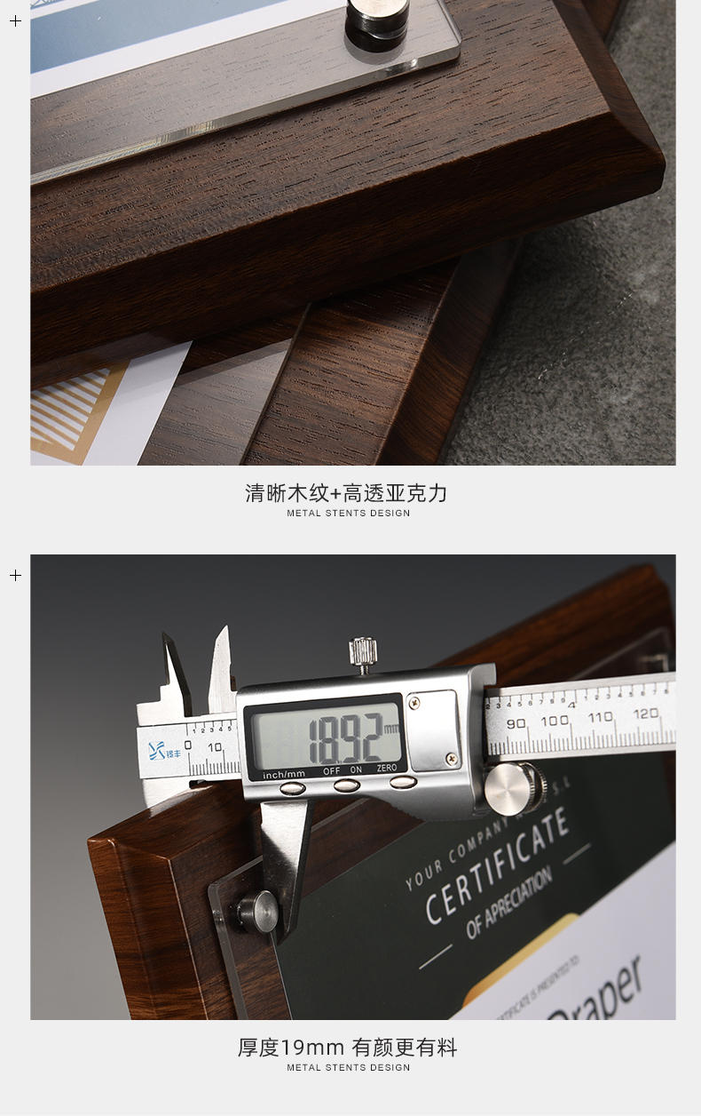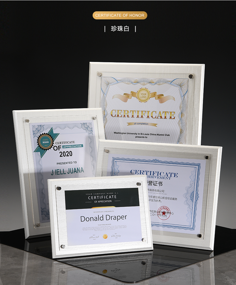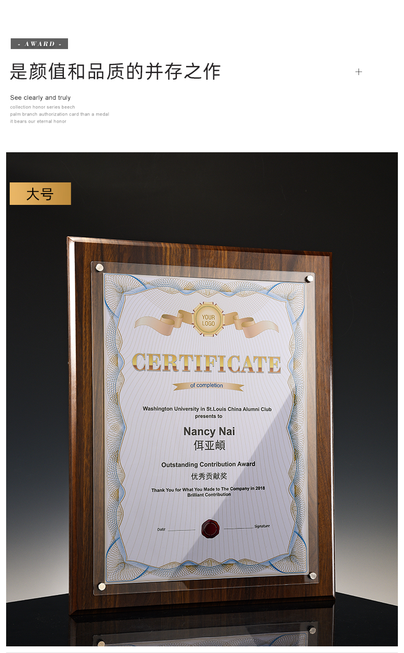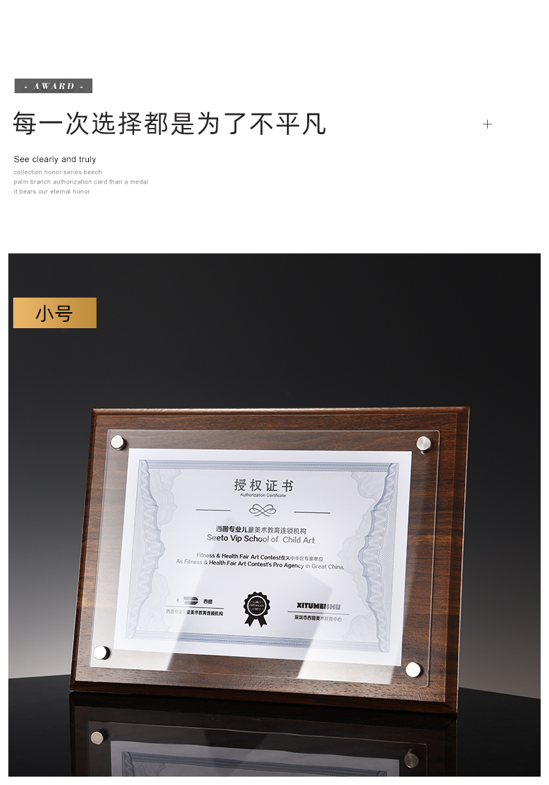508 / 【木相框】荣誉证书相框摆台制作打印捐赠毕业结业证书定制水晶企业培训资质定做