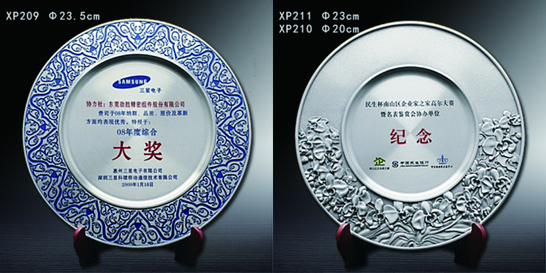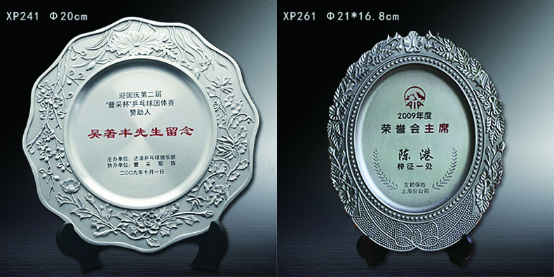 503 / 【纯锡奖盘】定制logo高档金属荣誉奖牌办公摆件退伍领导退休纪念品