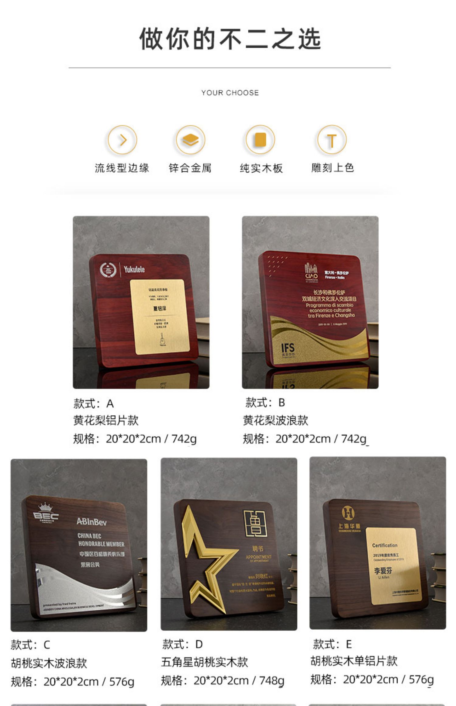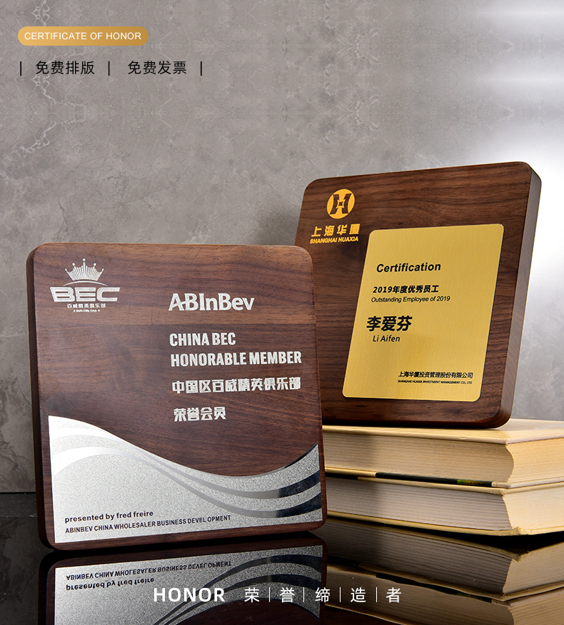 527 / 五角星胡桃实木奖牌定制授权牌荣誉证书聘书加盟代理表彰奖杯奖牌