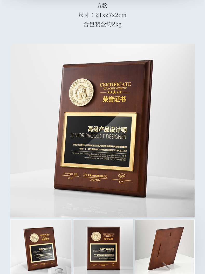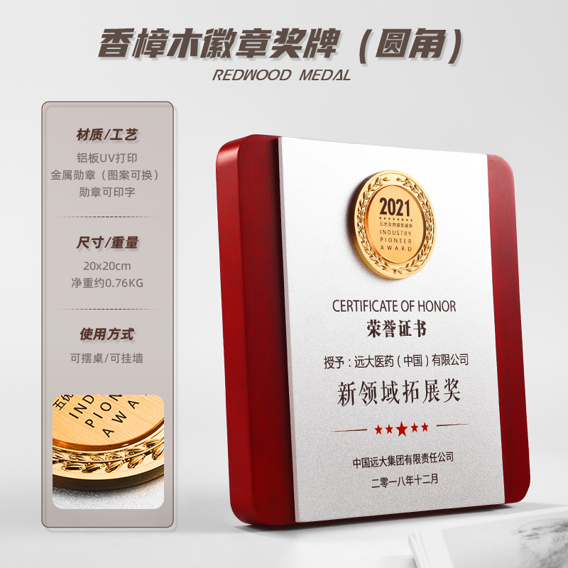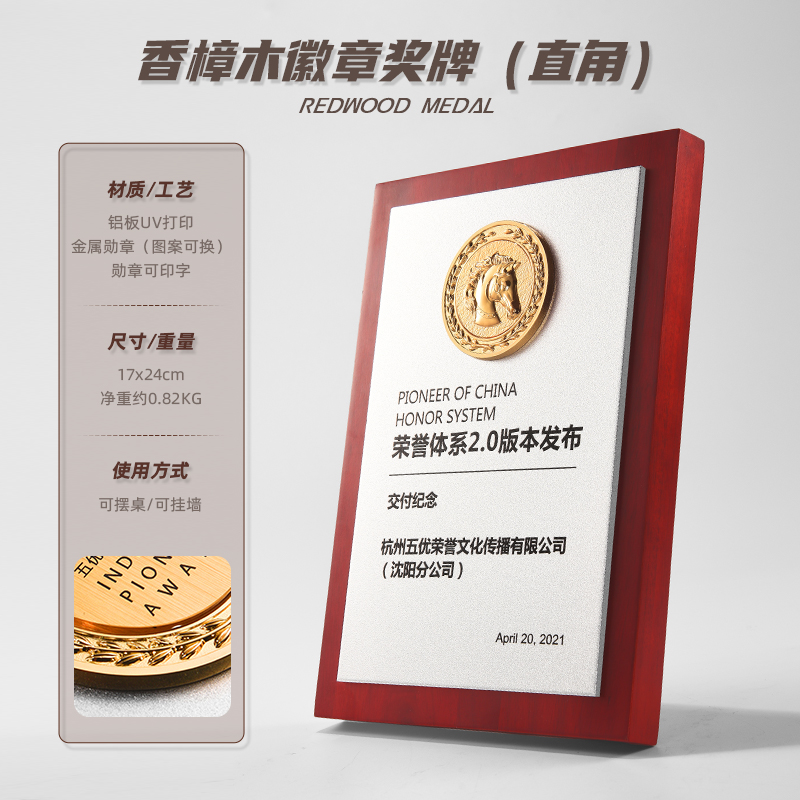 575 / 【红实木奖牌】定制定做代理商授权牌木质荣誉奖杯订制颁奖牌证书授牌