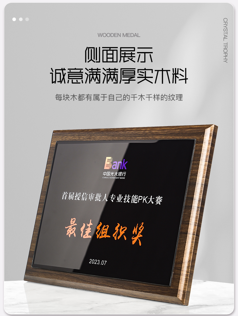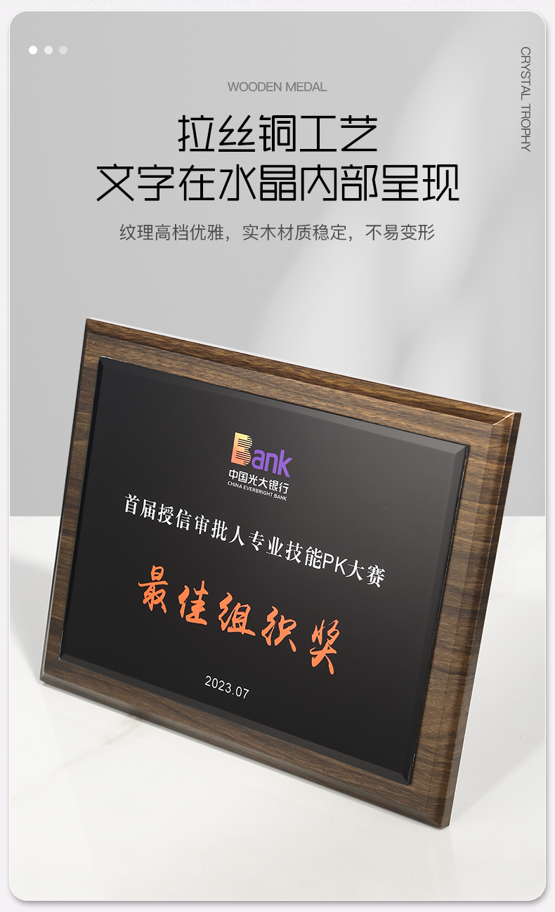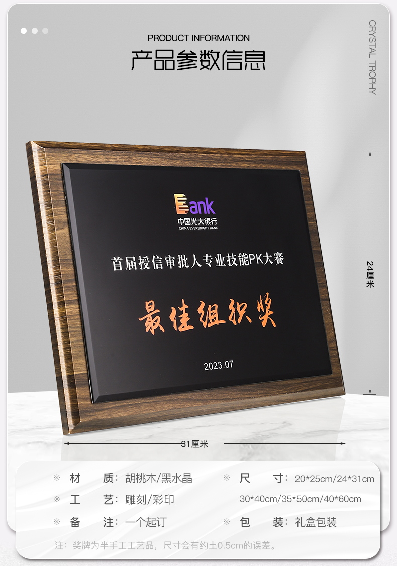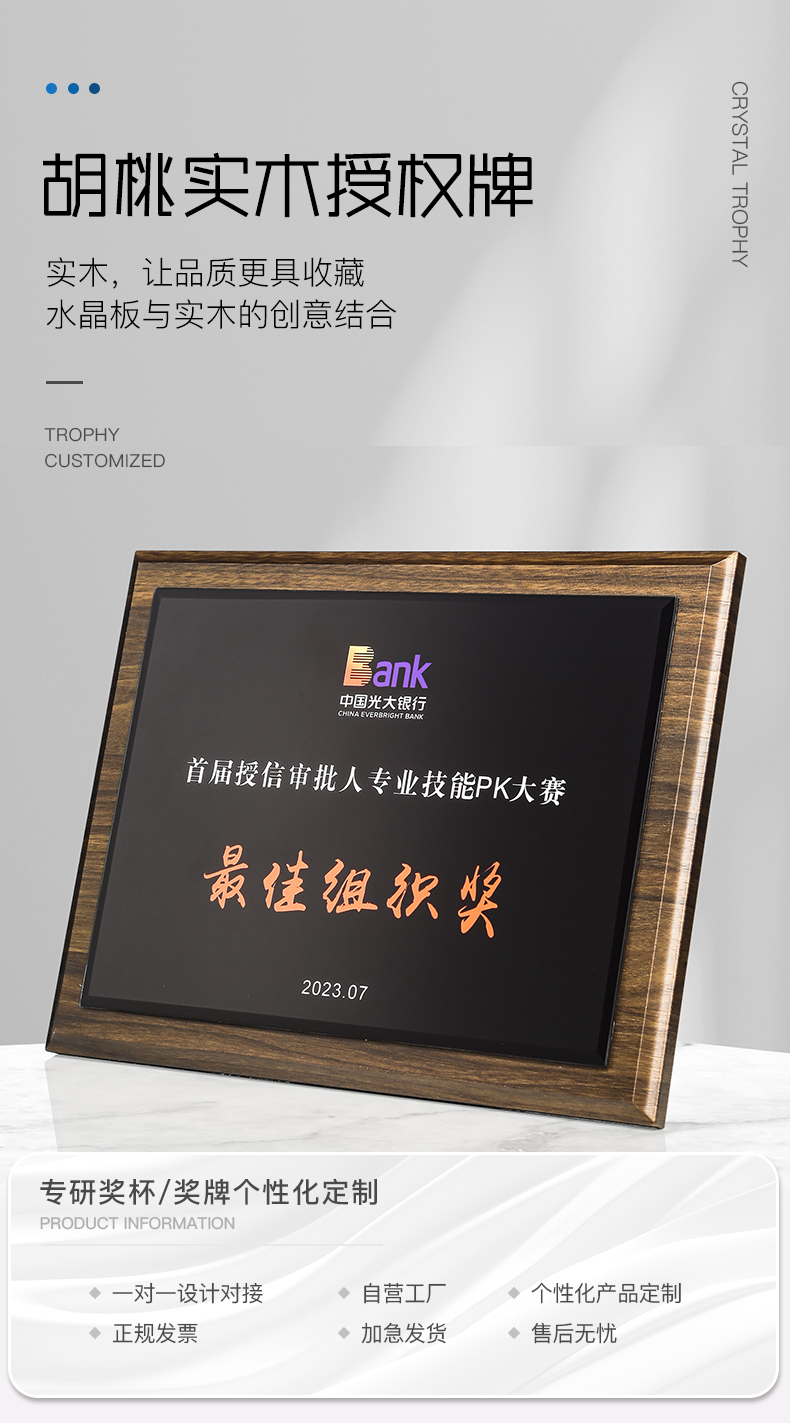 518 / 胡桃木水晶奖牌胡桃木奖牌定制高档木质荣誉牌匾挂墙证书聘书加盟会员授权牌订制