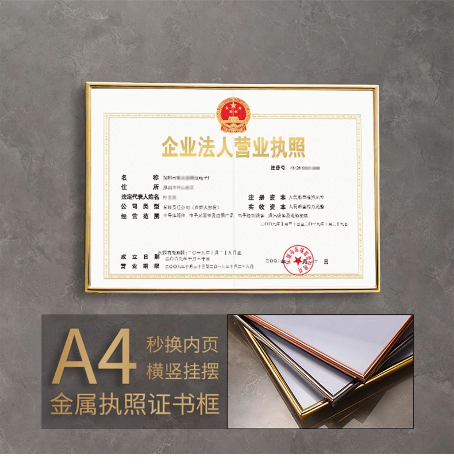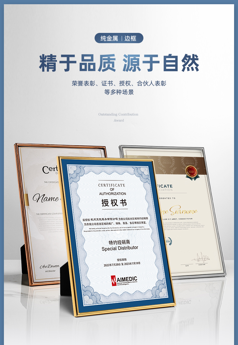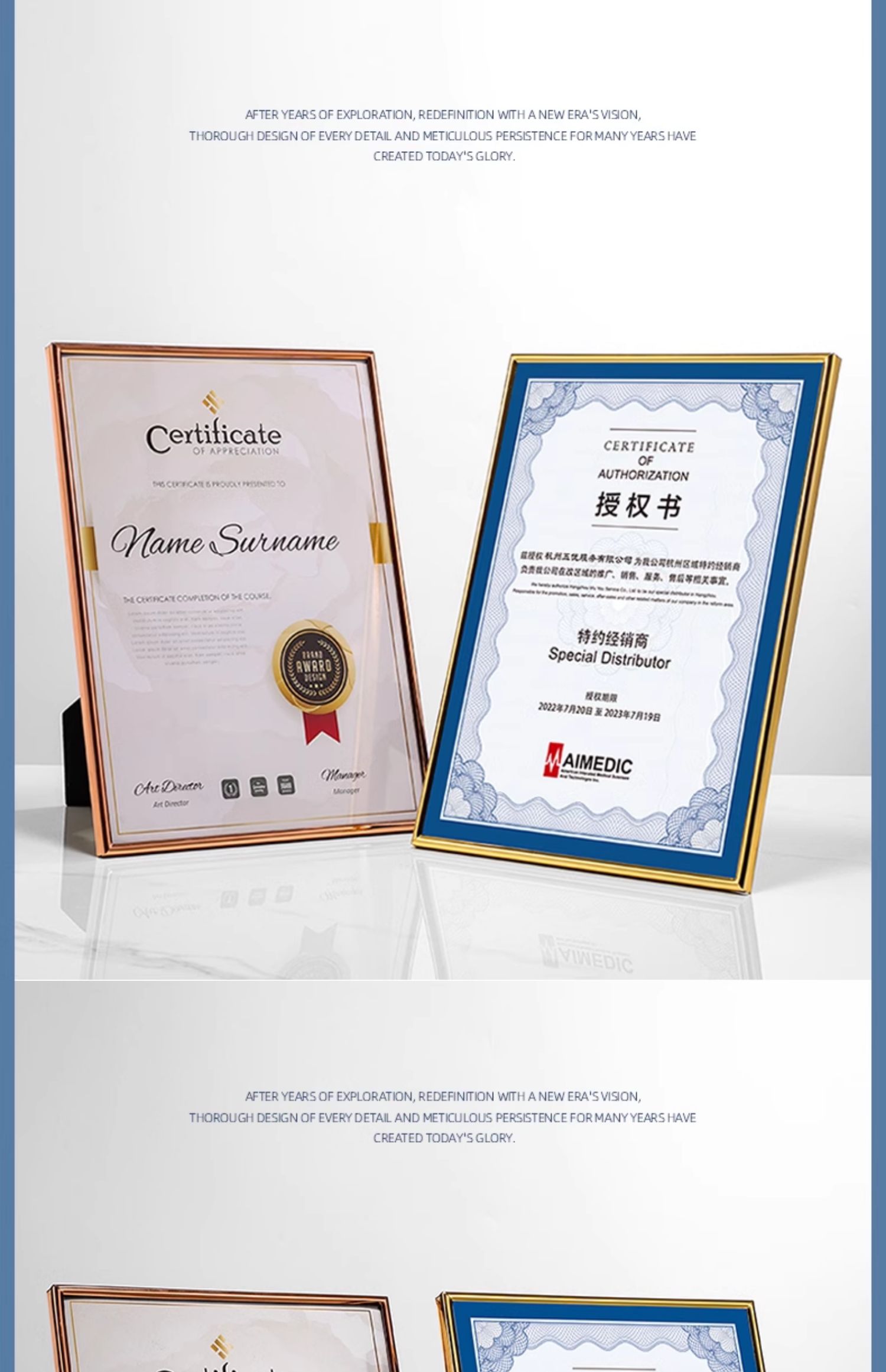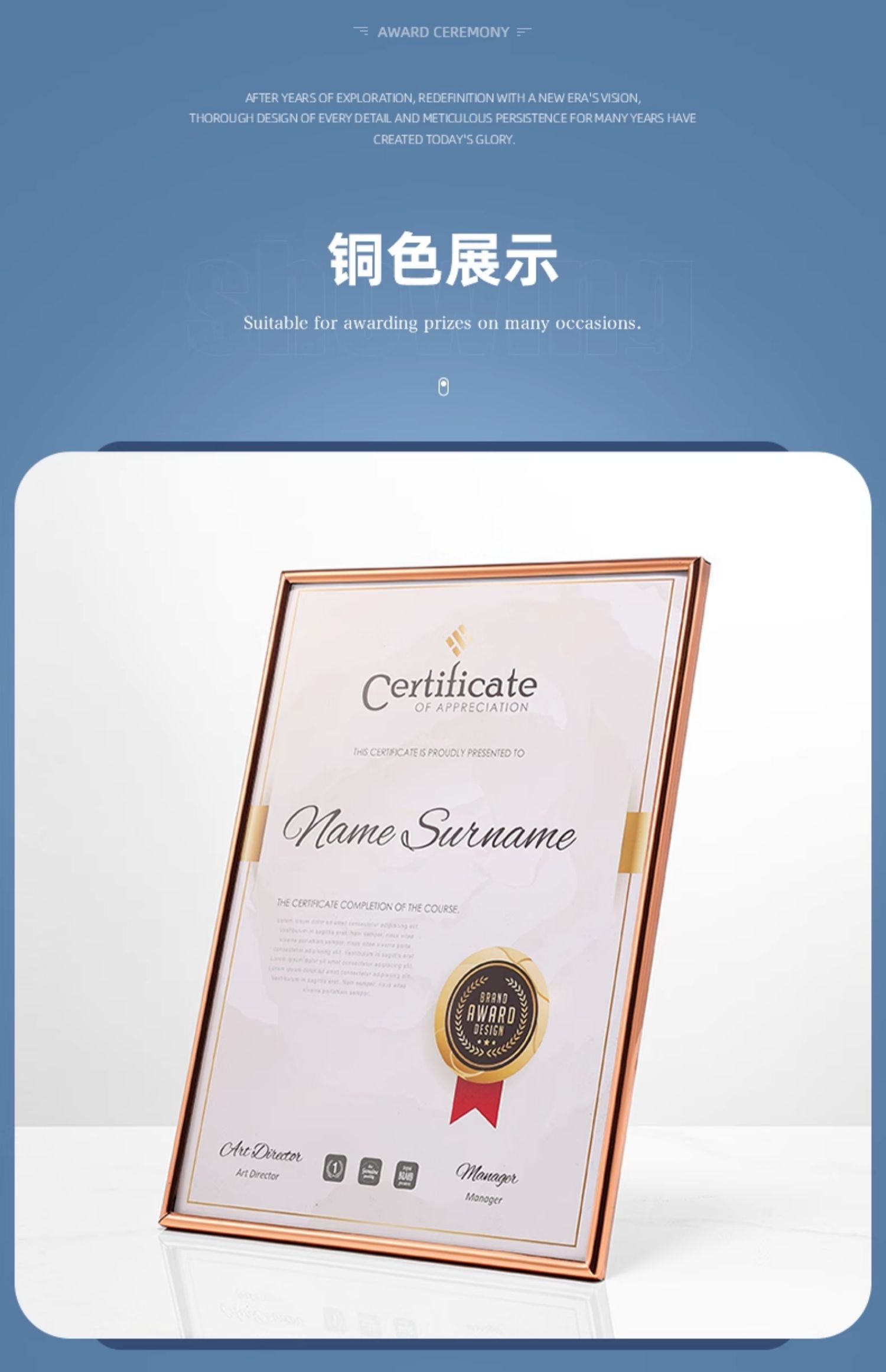587 / 【金属边相框】颁奖A4认证授权书荣誉证书框聘书框金属奖牌定制定做表彰代理加盟