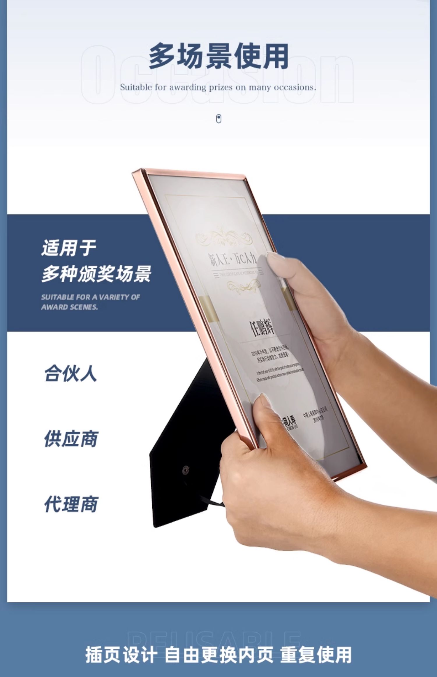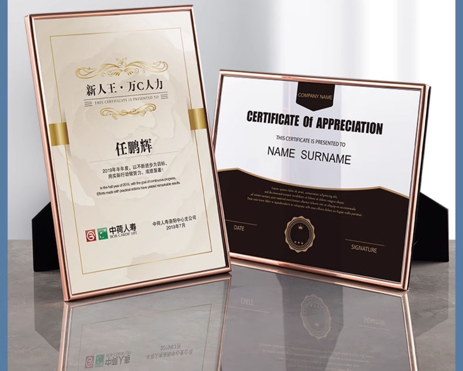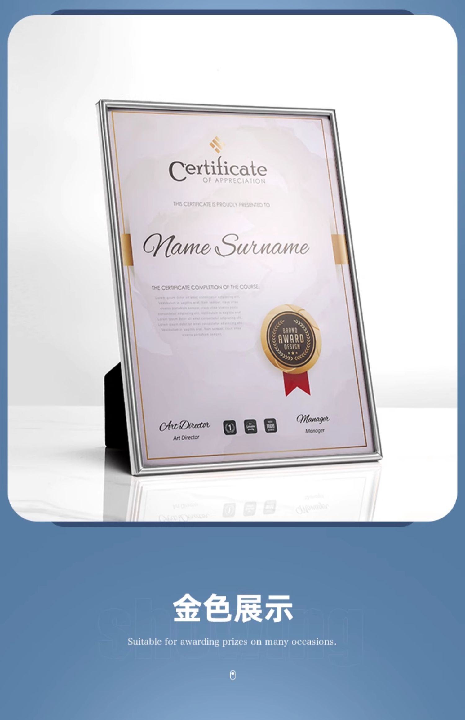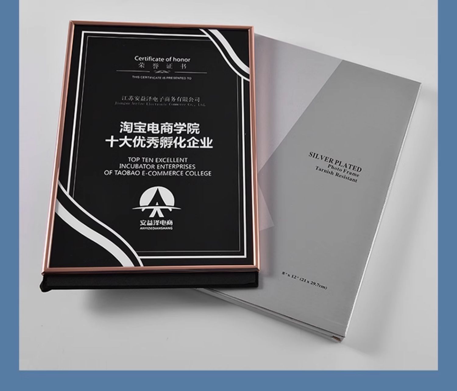 587 / 【金属边相框】颁奖A4认证授权书荣誉证书框聘书框金属奖牌定制定做表彰代理加盟
