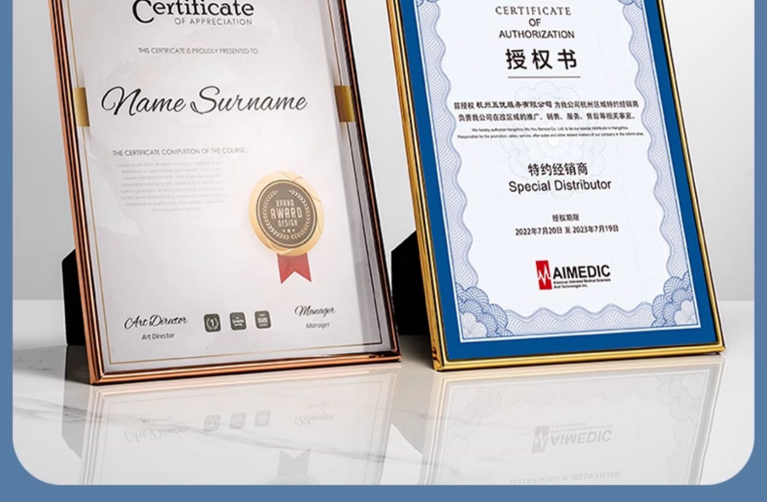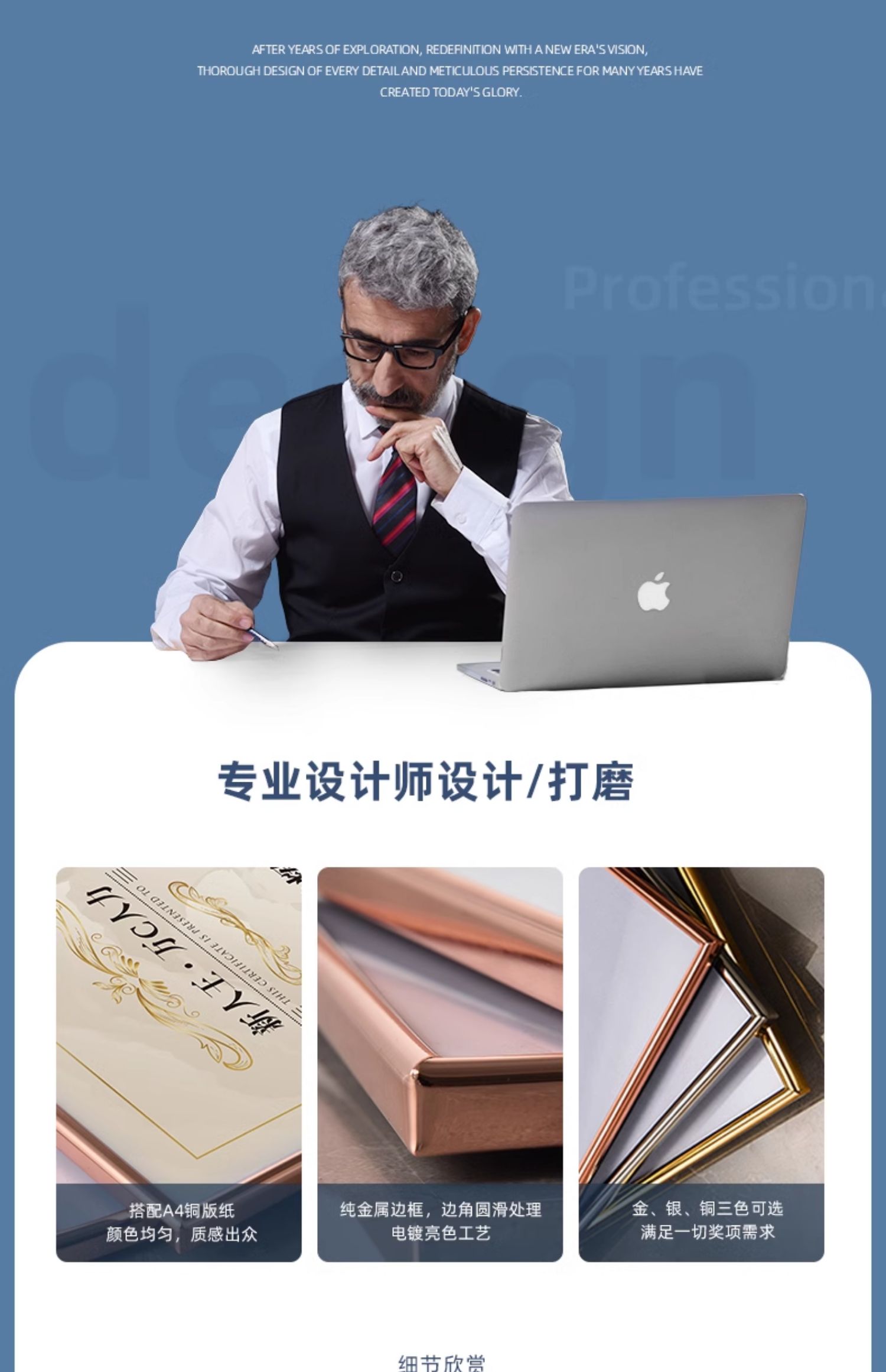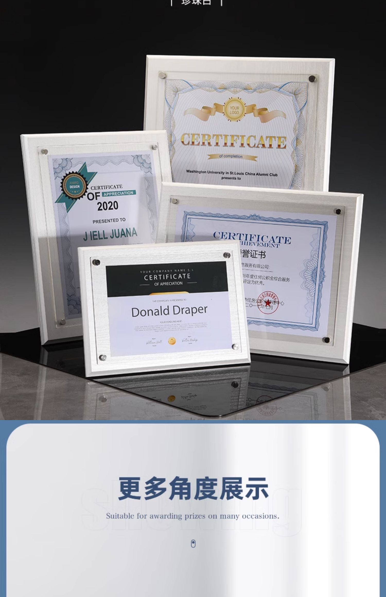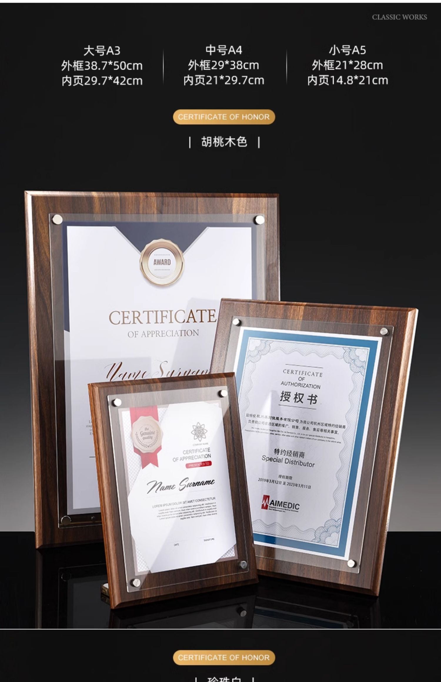 587 / 【金属边相框】颁奖A4认证授权书荣誉证书框聘书框金属奖牌定制定做表彰代理加盟