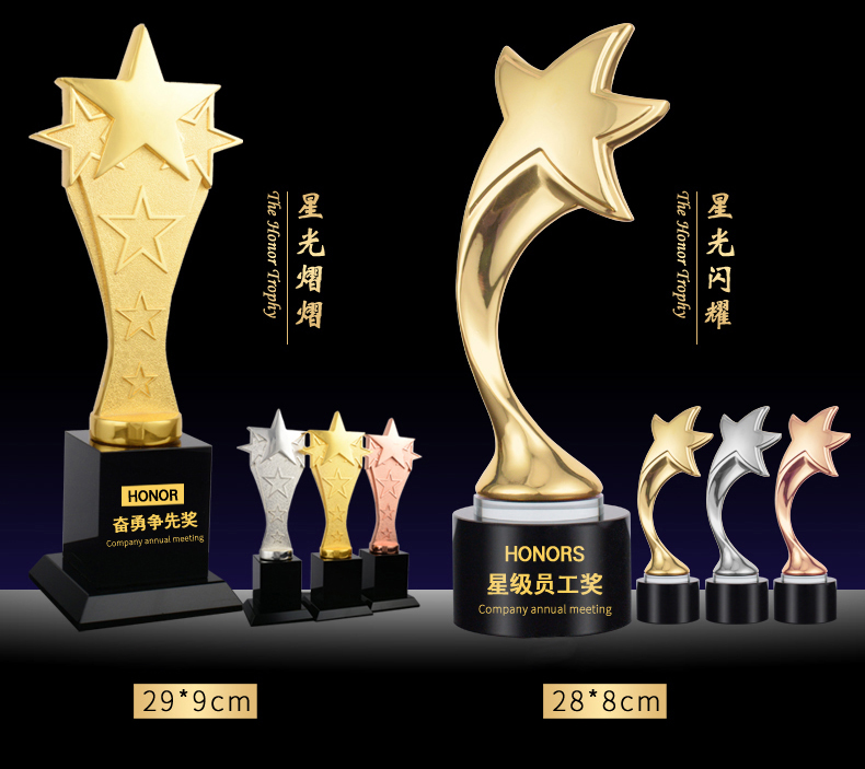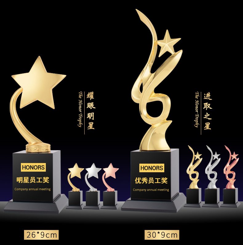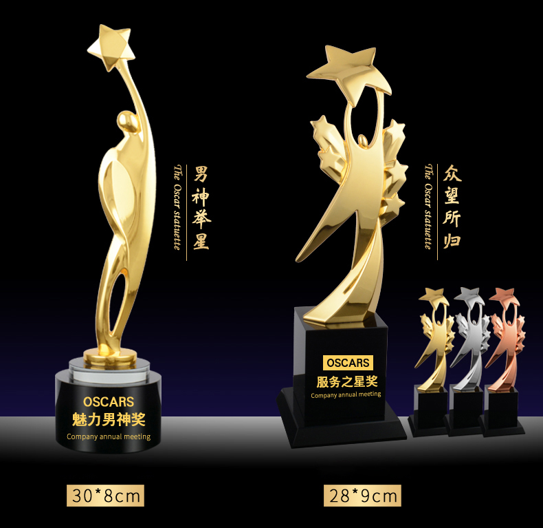 105 / 【金属奖杯】新款金属奖杯镀金五角星奥斯卡小金人定制金银铜奖杯定做比赛颁奖