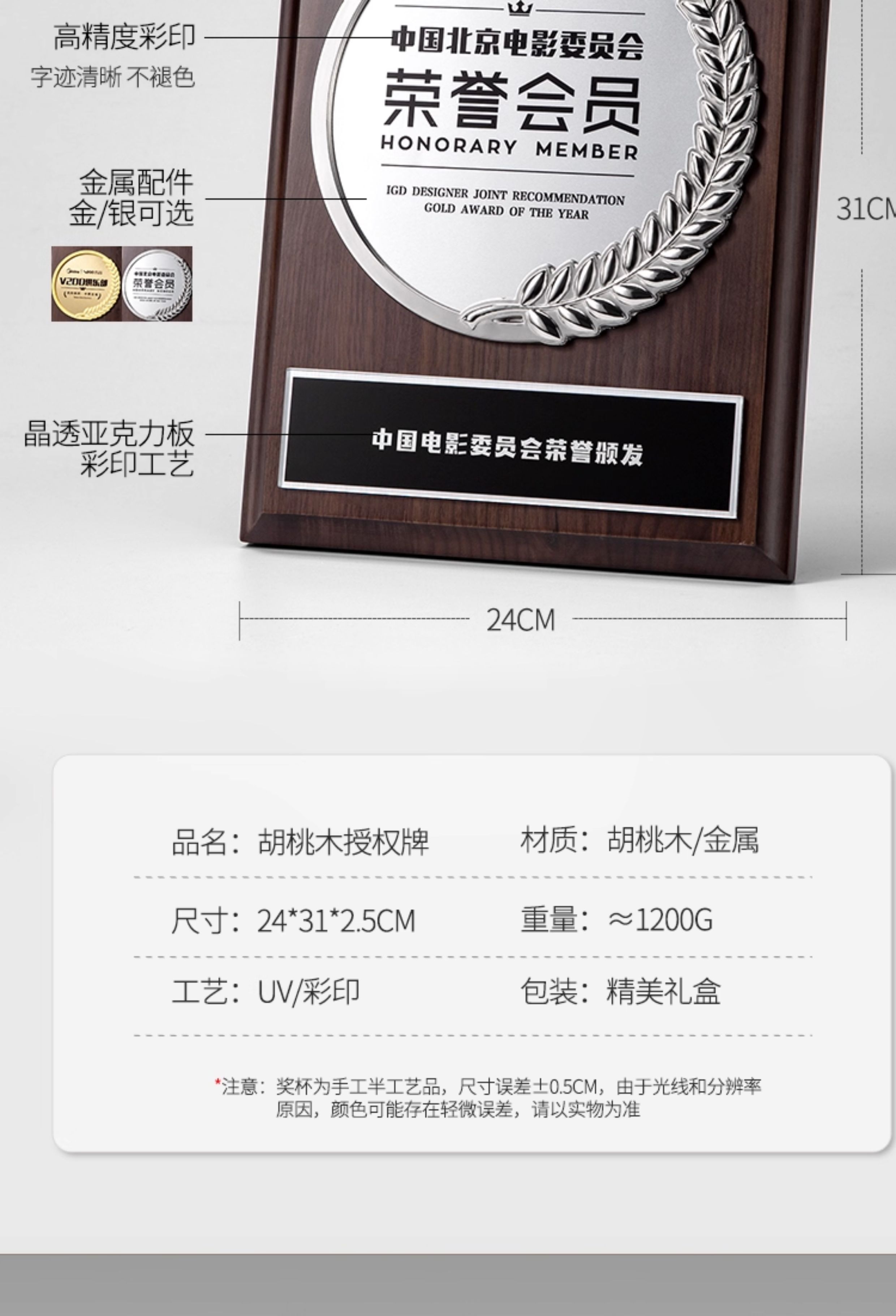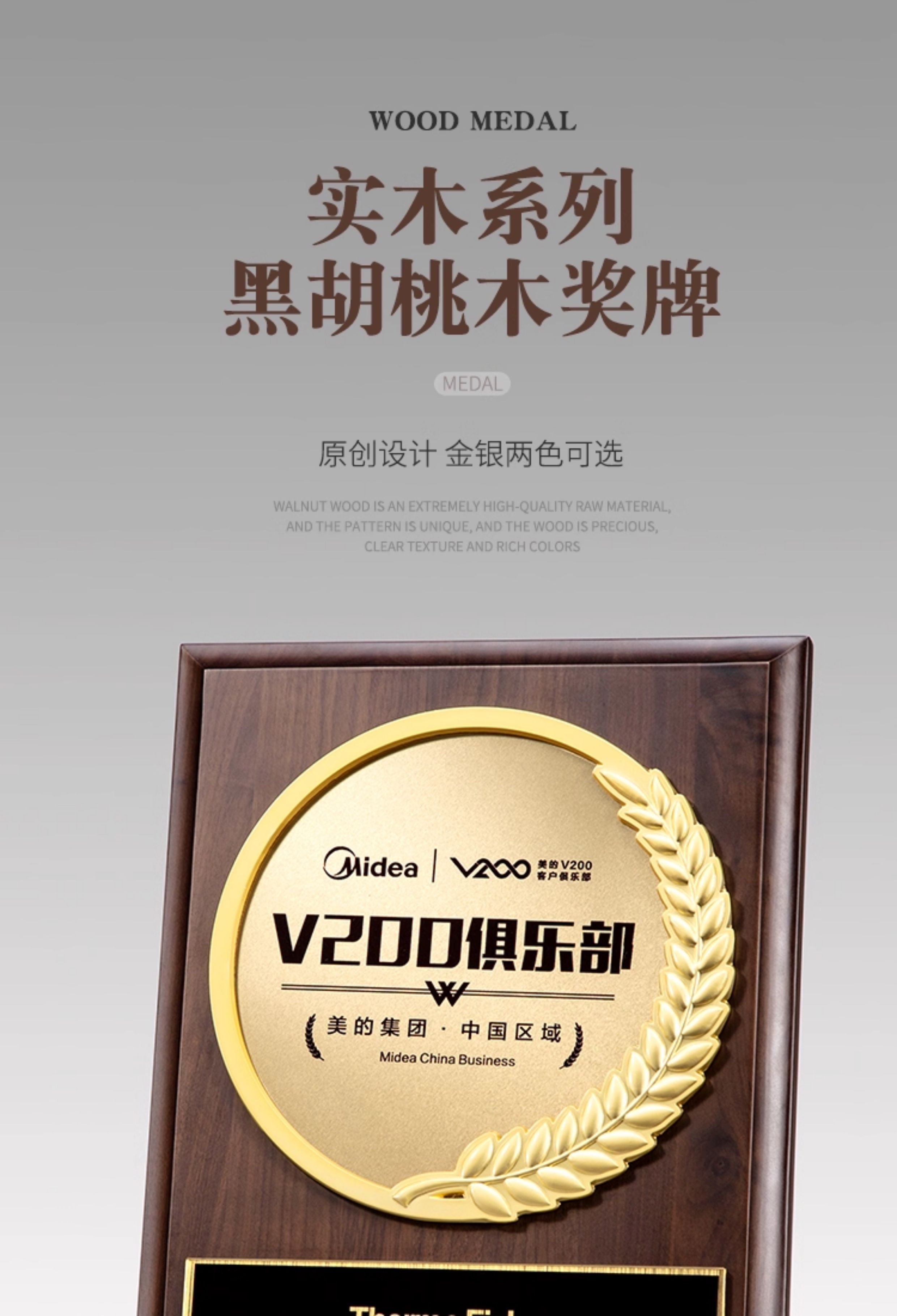 589 / 【实木奖牌】创意实木质奖牌定制定做水晶奖杯纪念品加盟商荣誉牌匾代理授权牌