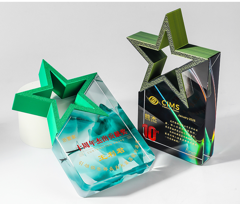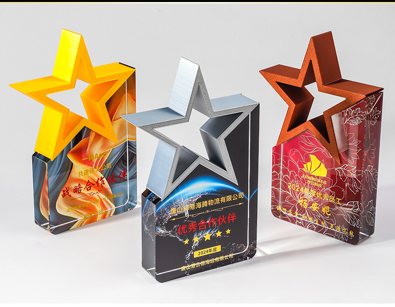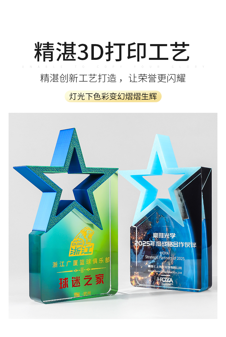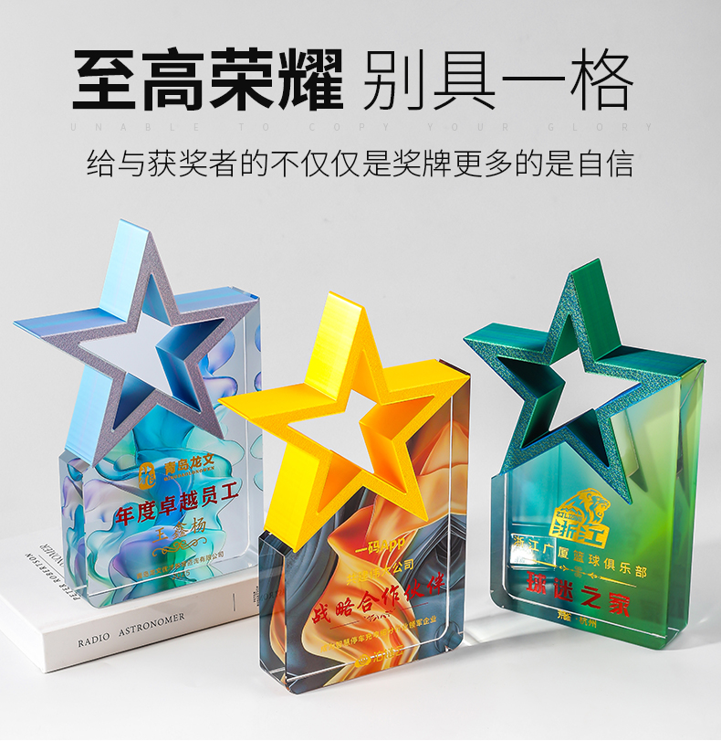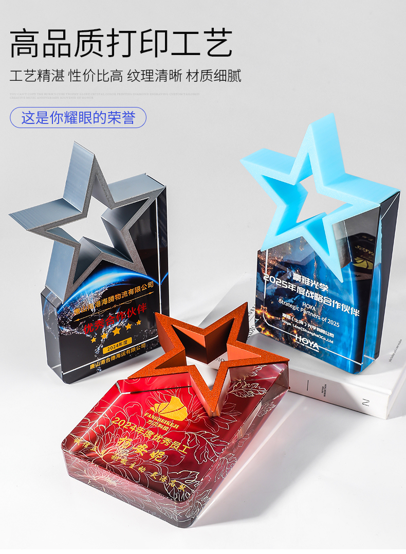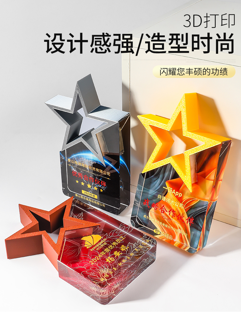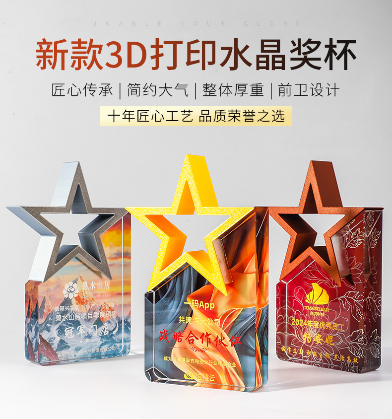 185 / 【3D打印水晶奖杯】高档水晶奖杯定制新款彩色五角星定做荣誉刻字奖牌订制年会颁奖