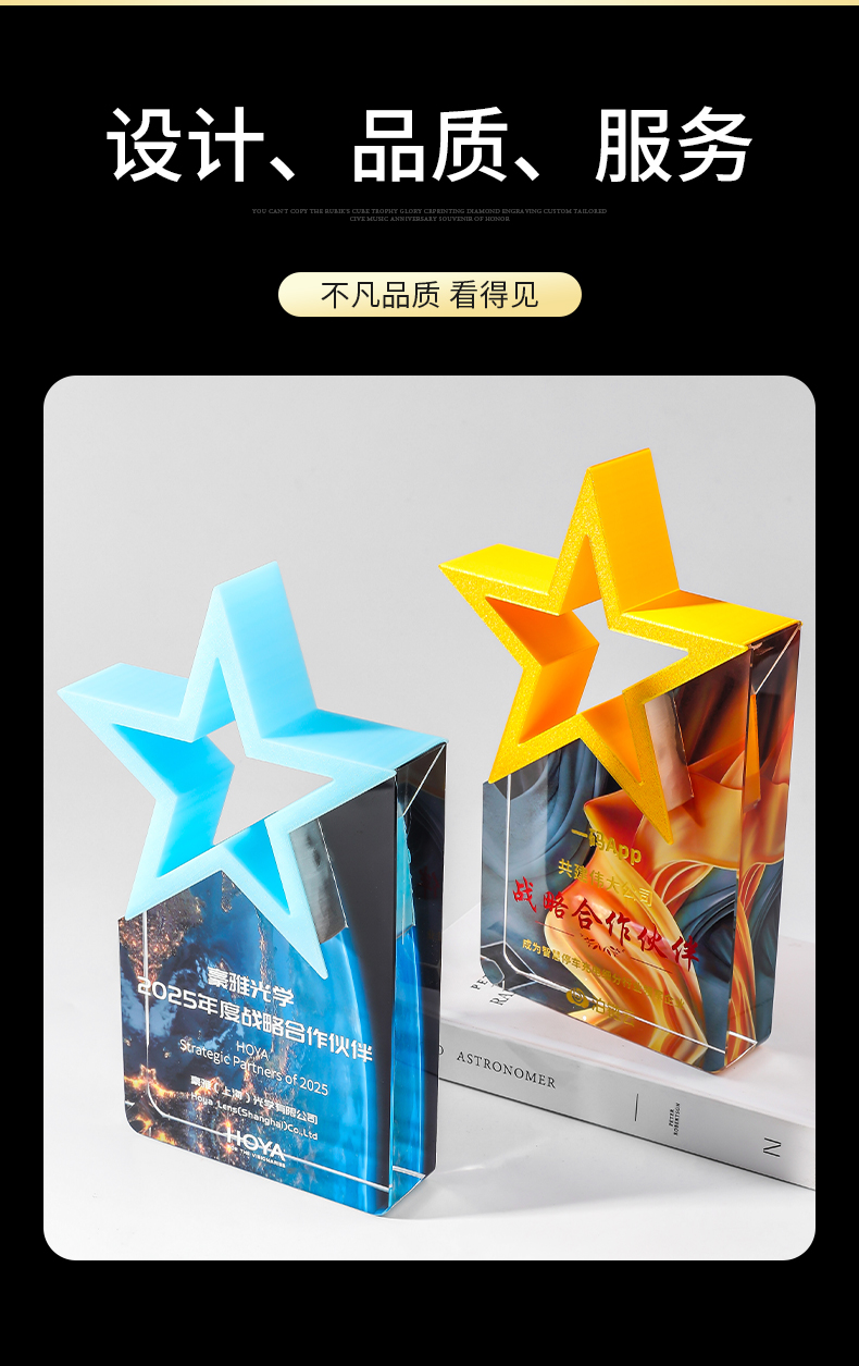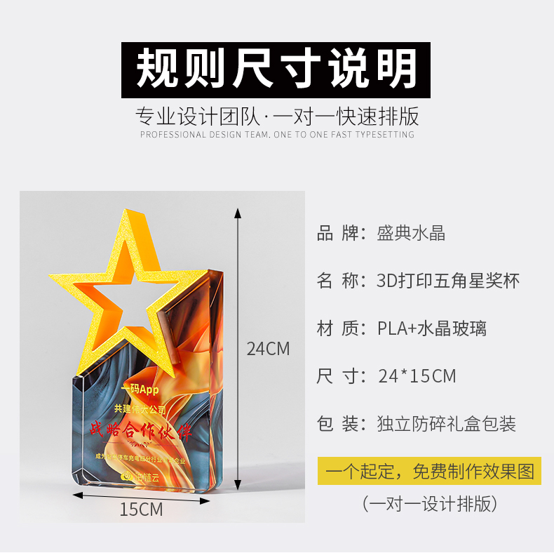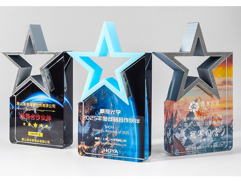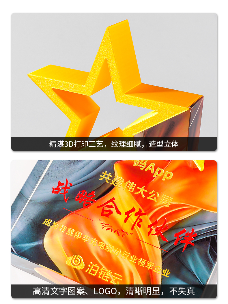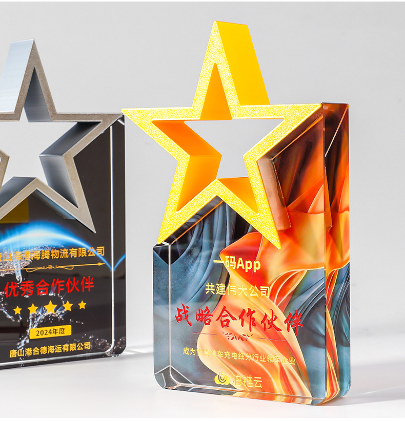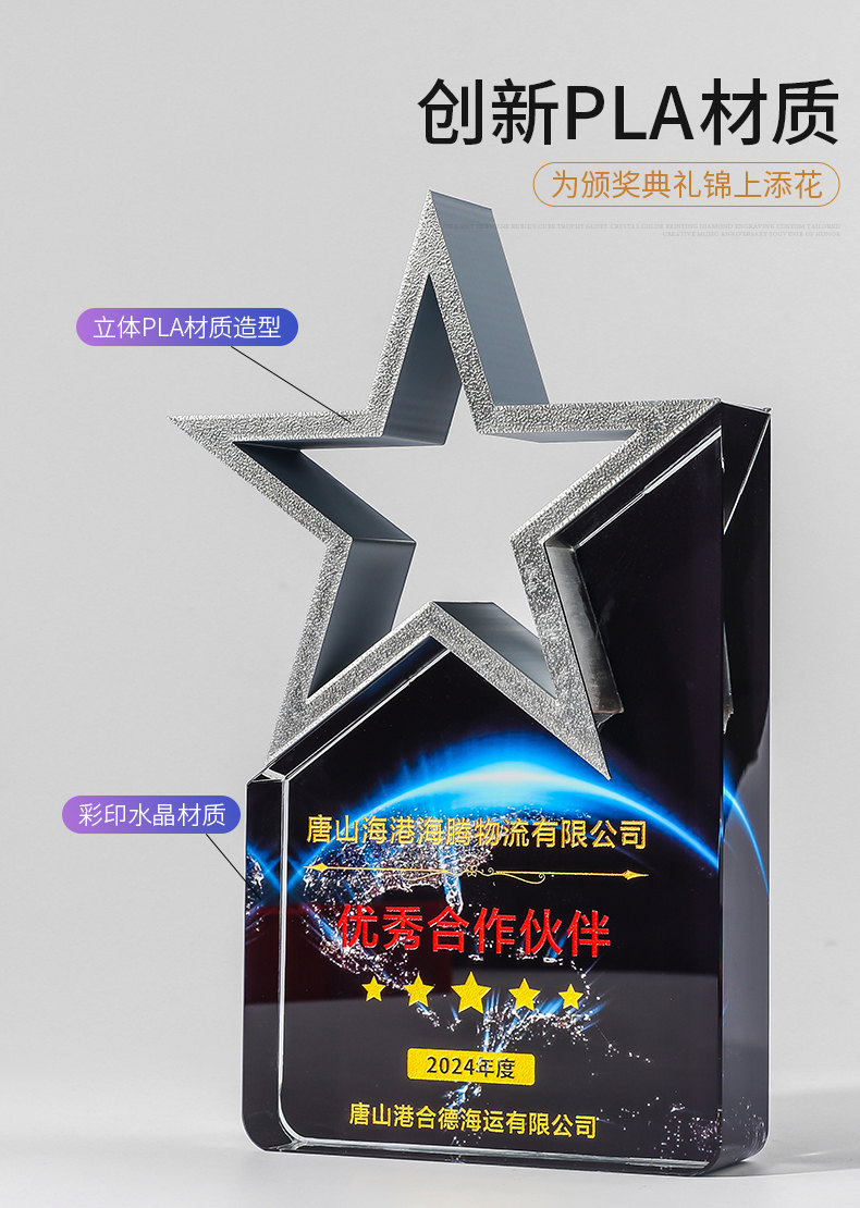 185 / 【3D打印水晶奖杯】高档水晶奖杯定制新款彩色五角星定做荣誉刻字奖牌订制年会颁奖