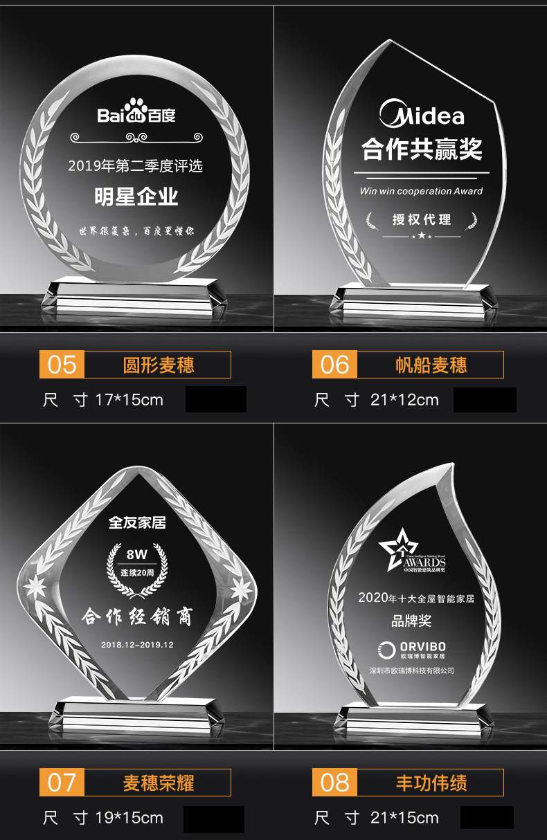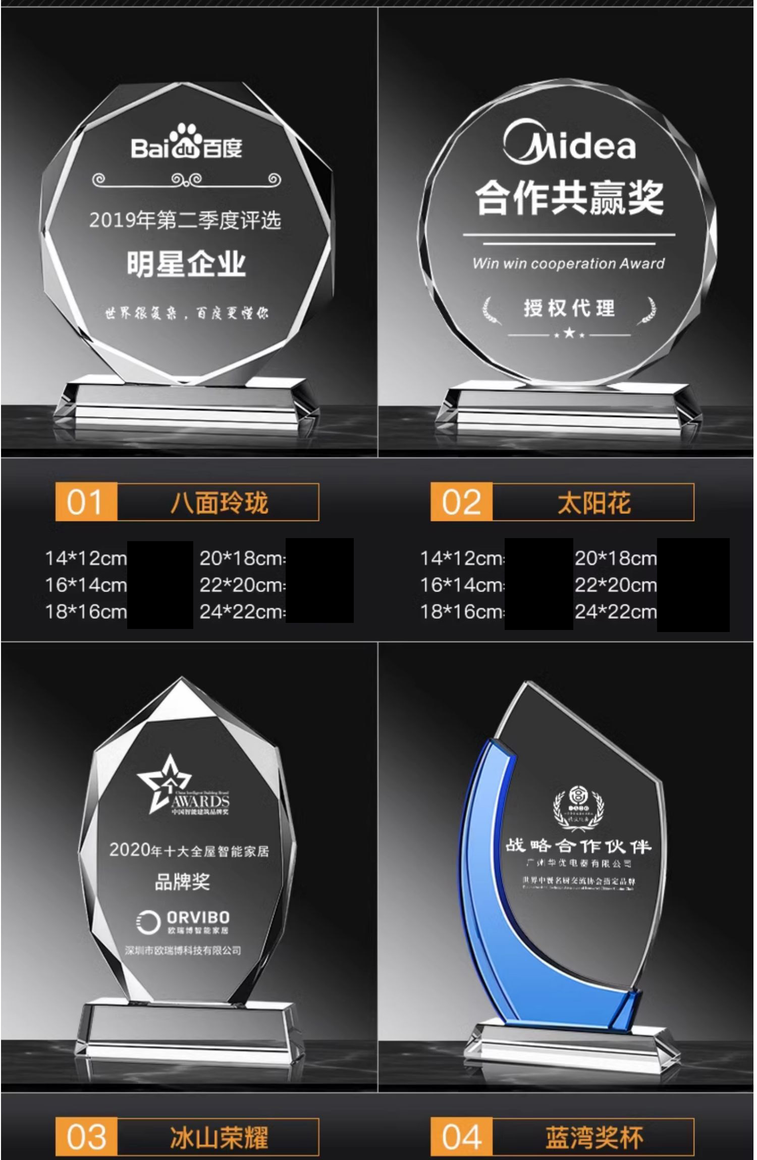 151 / 水晶奖杯奖牌定制刻字感谢学生儿童玻璃圆形座八角退休毕业纪念品