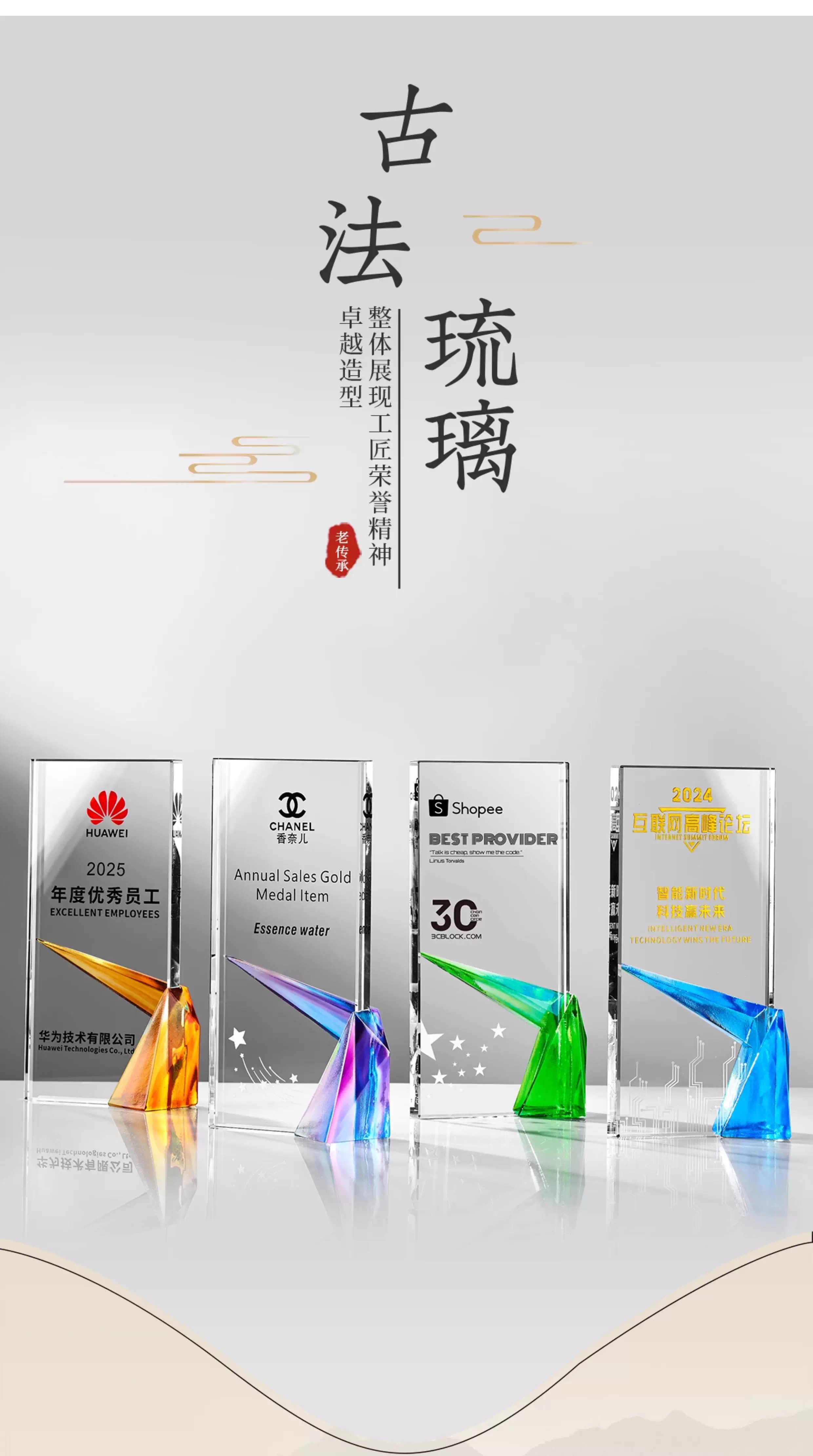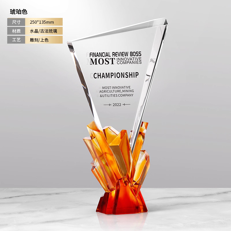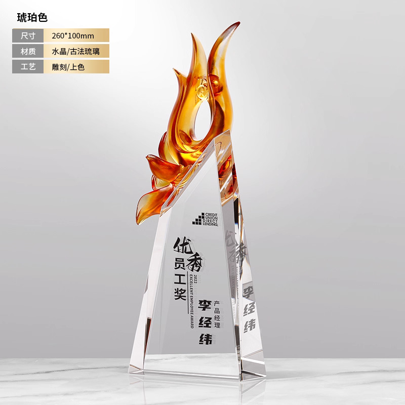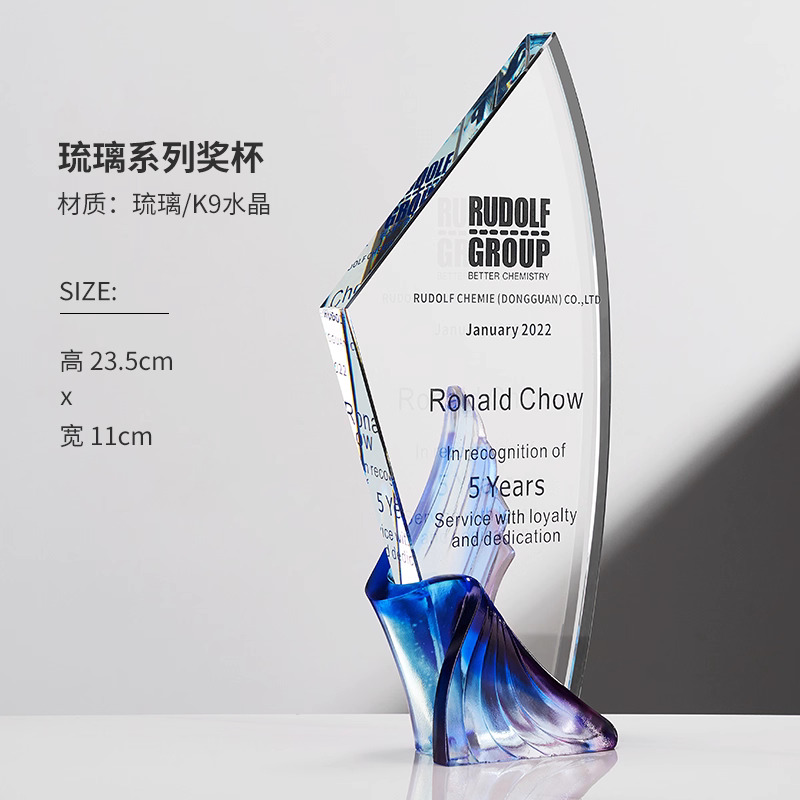 281 / 【琉璃水晶奖杯】新款高档创意琉璃水晶奖杯定制定做奖牌订做制作优秀员工年会颁奖