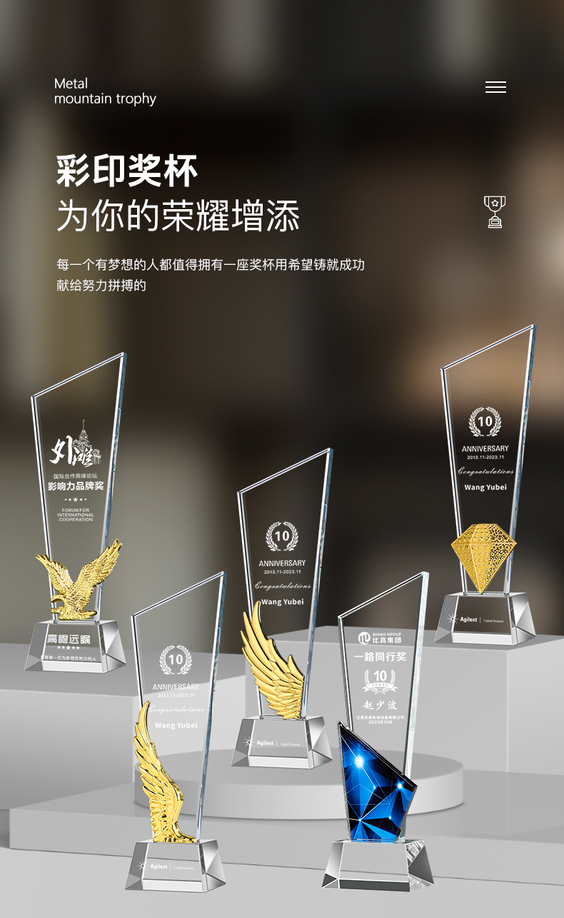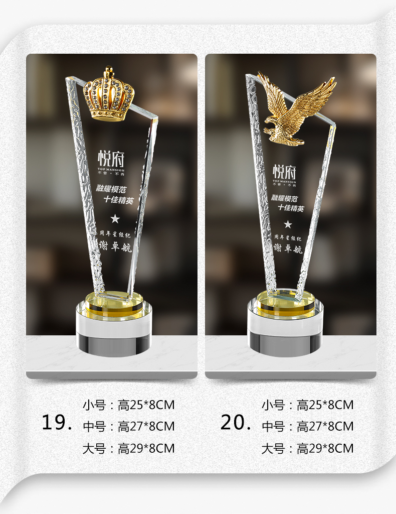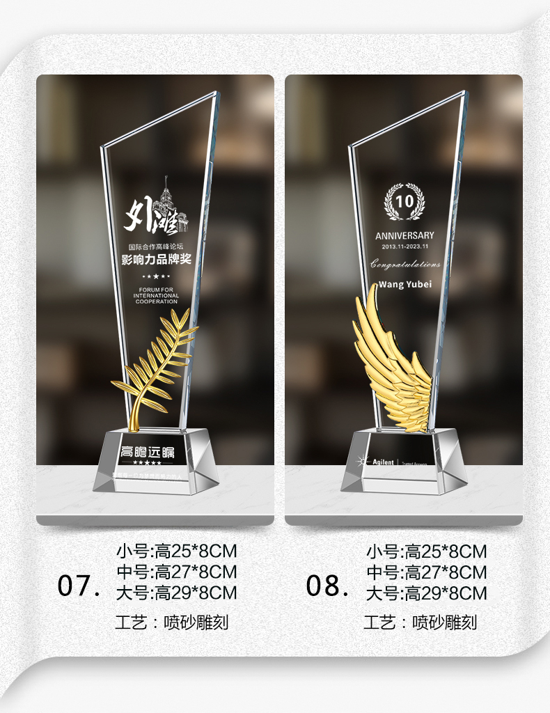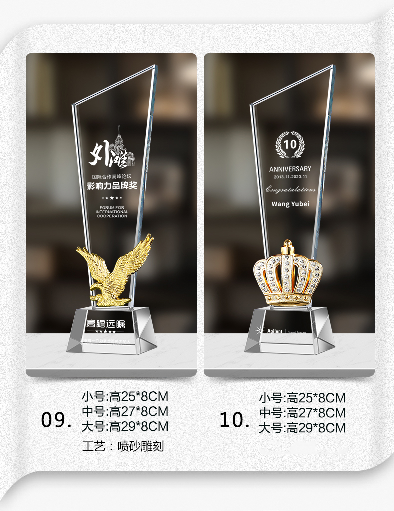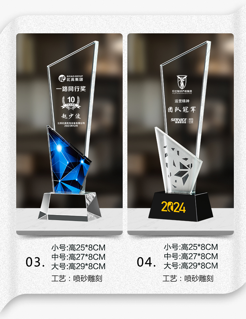 108 / 水晶奖杯定制创意五角星年会颁奖优秀员工奖牌订做玻璃刀片授权牌
