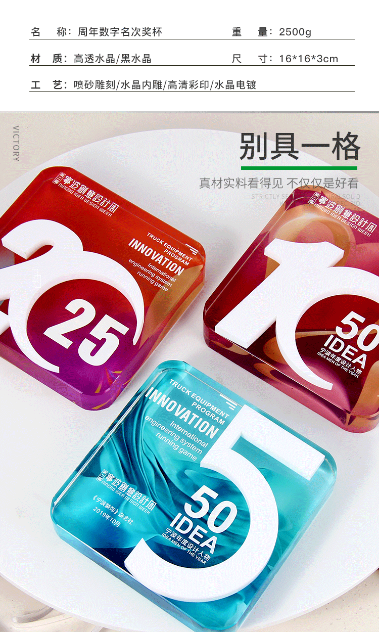 184 / 新款创意水晶奖杯定制高档2025企业优秀员工定做年会周年数字奖杯