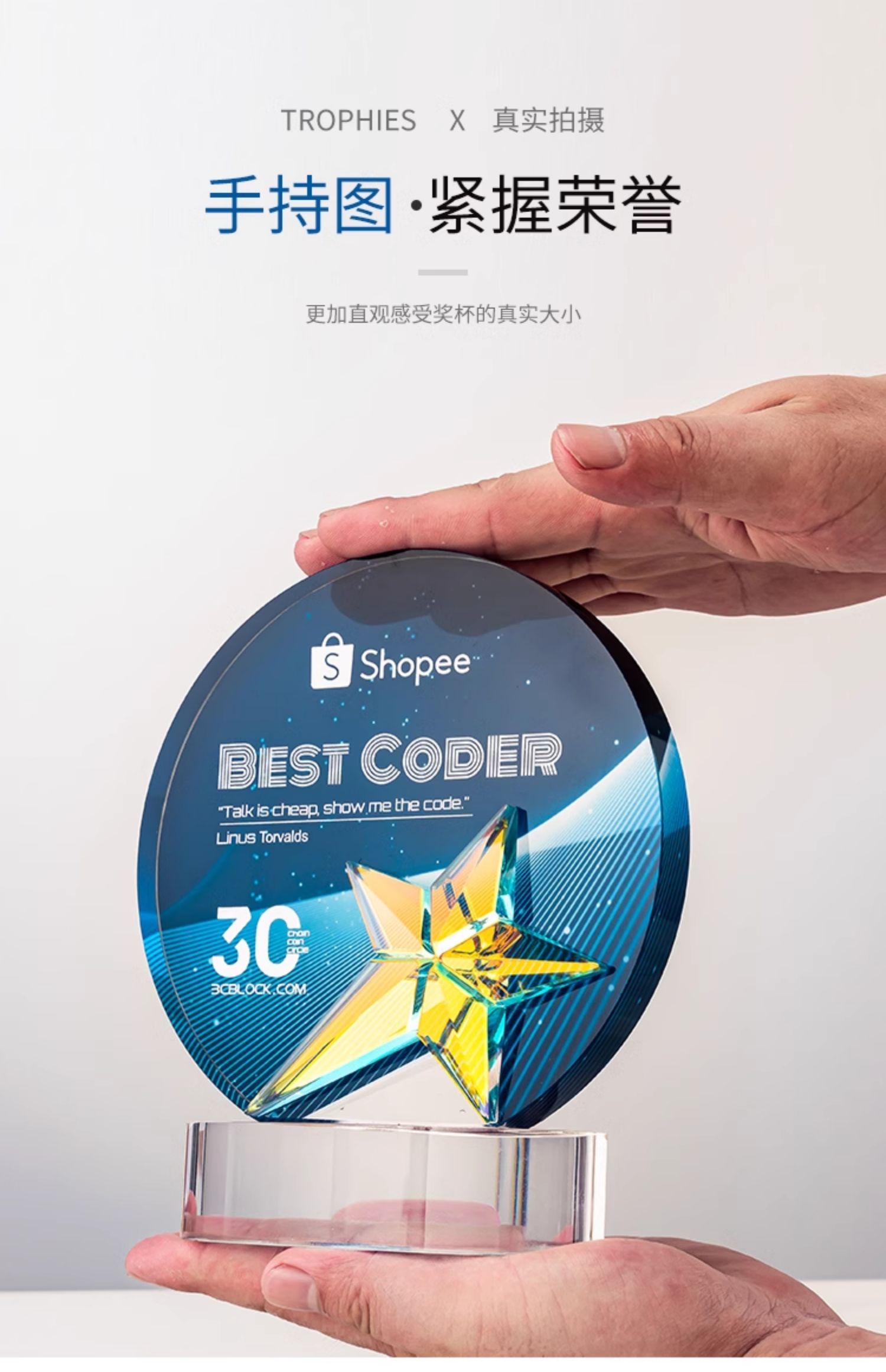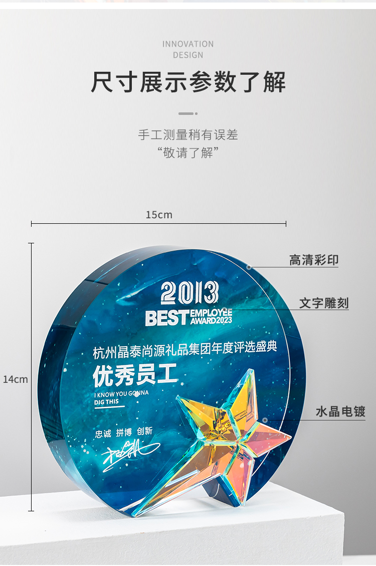 210 / 高档炫彩创意彩色水晶奖杯比赛冠军企业周年年会优秀员工荣誉纪念