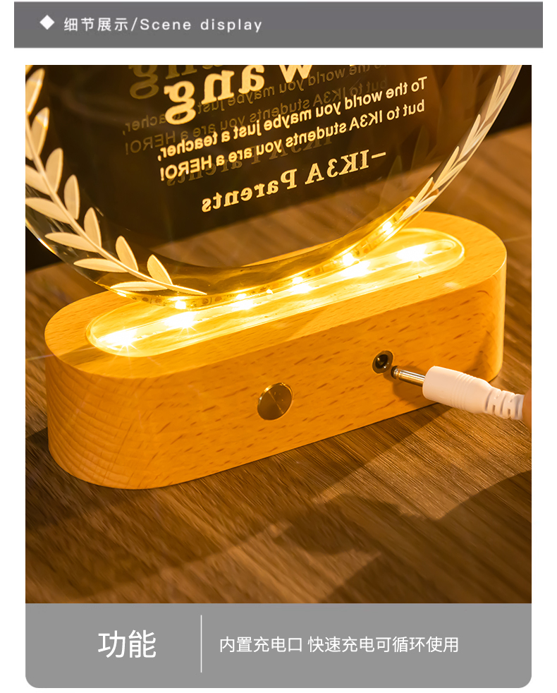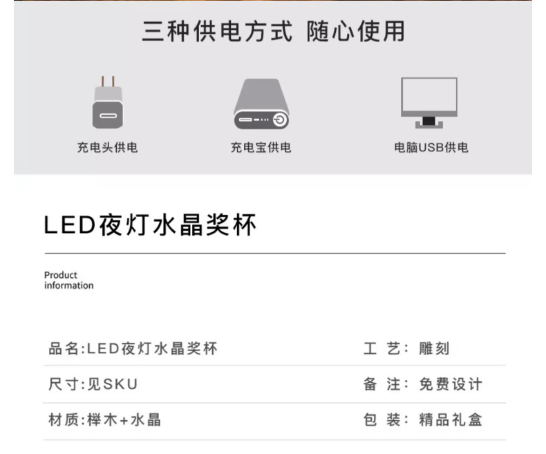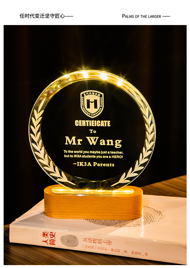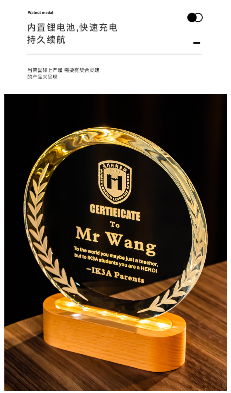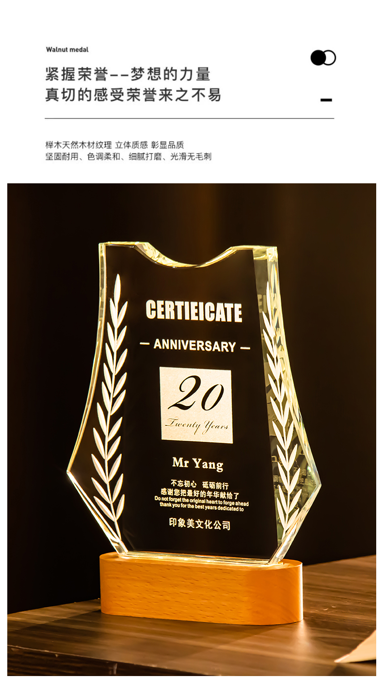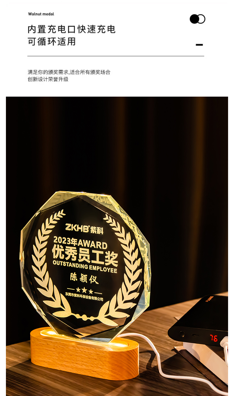 361 / 新款水晶奖杯定制定做创意年会颁奖优秀员工荣誉发光奖牌订制纪念