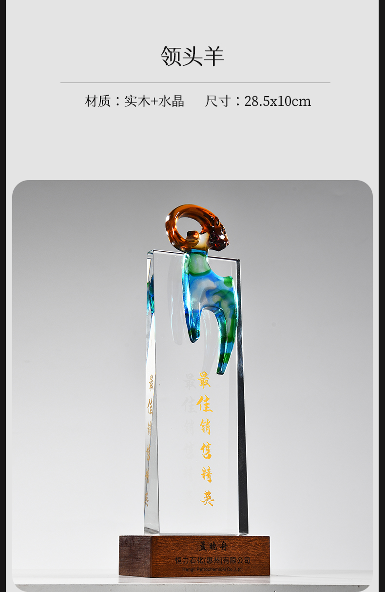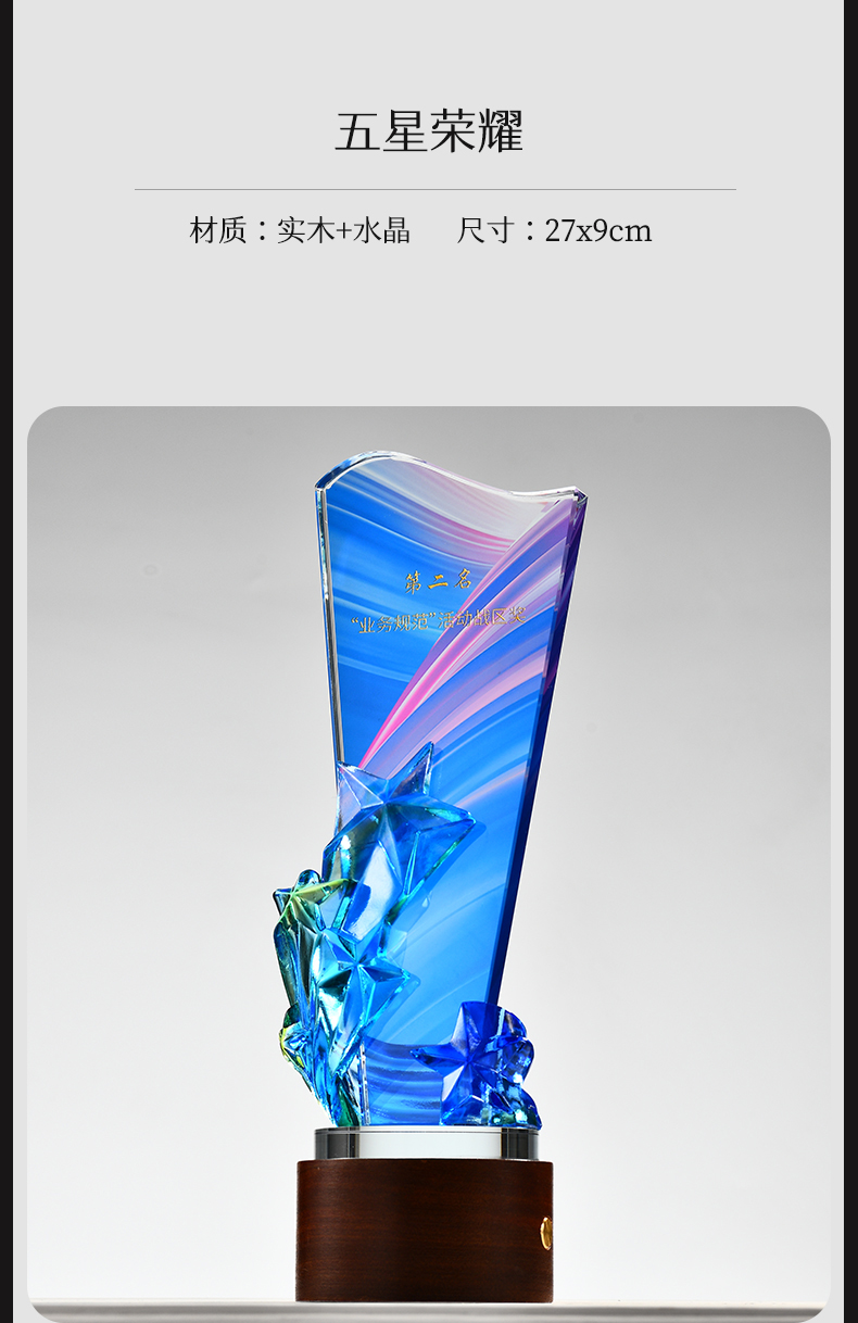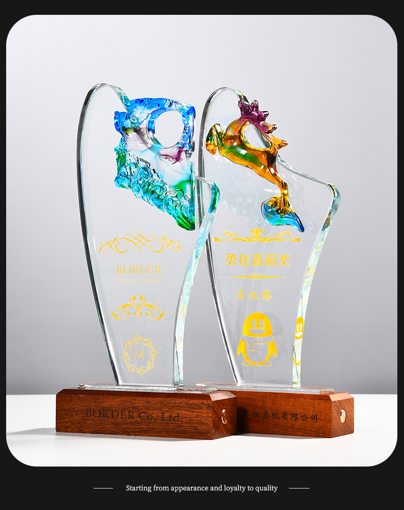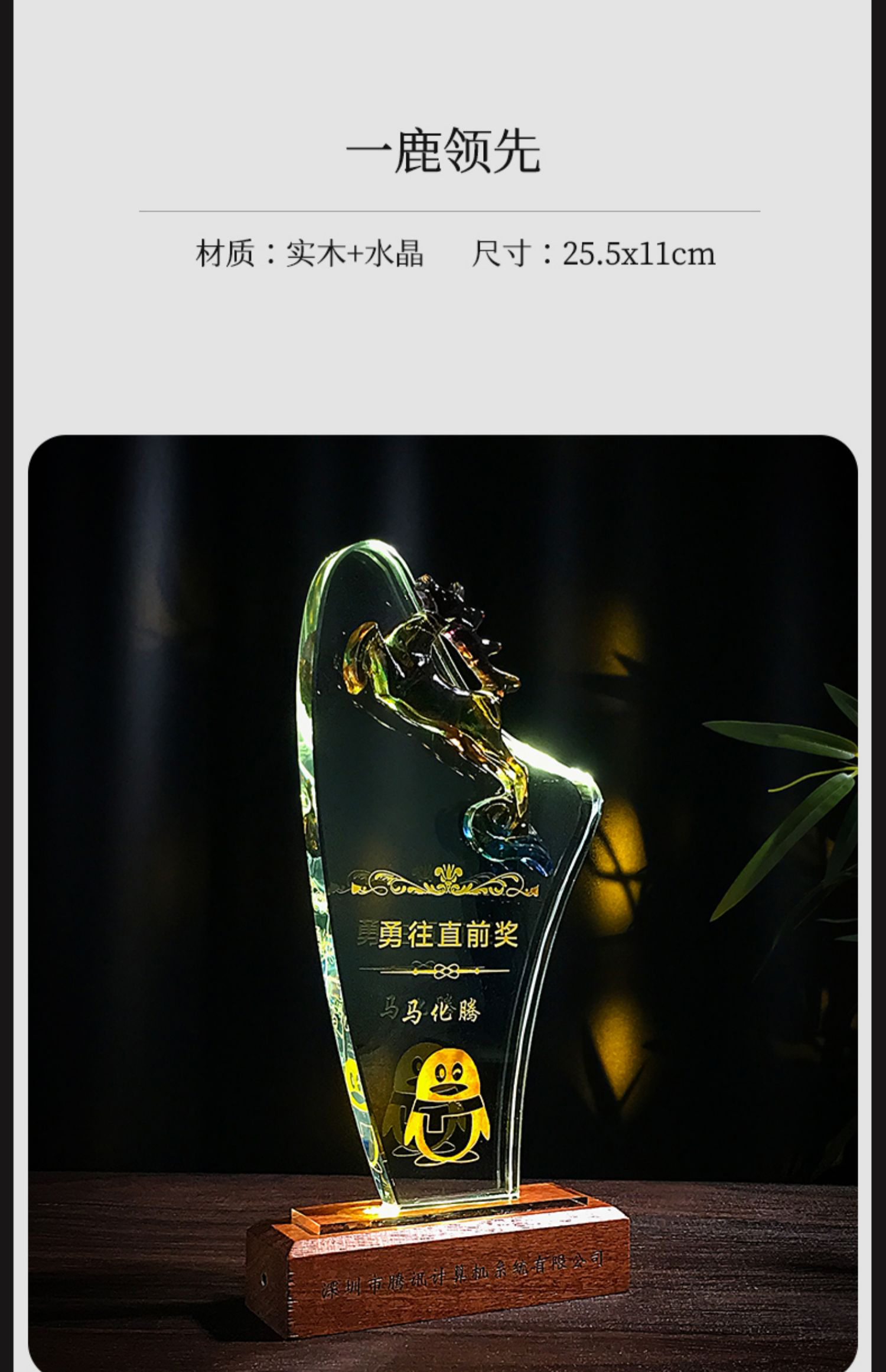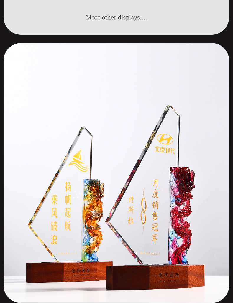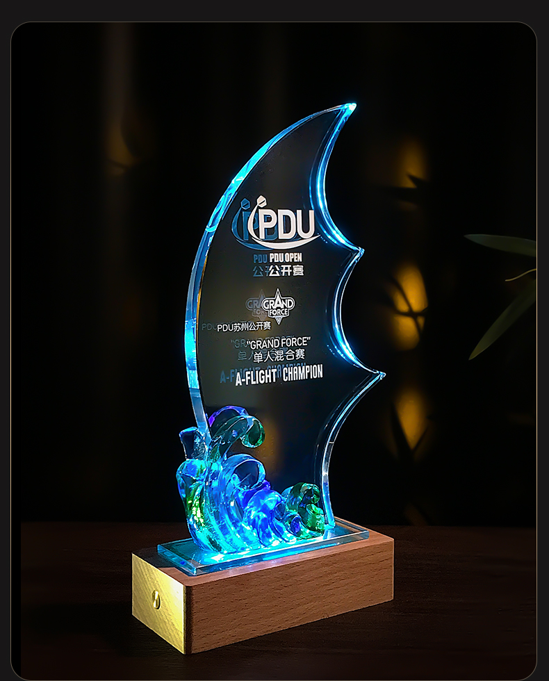 363 / 新款创意发光琉璃奖杯定制订做年会水晶奖杯实木年会优秀员工颁奖