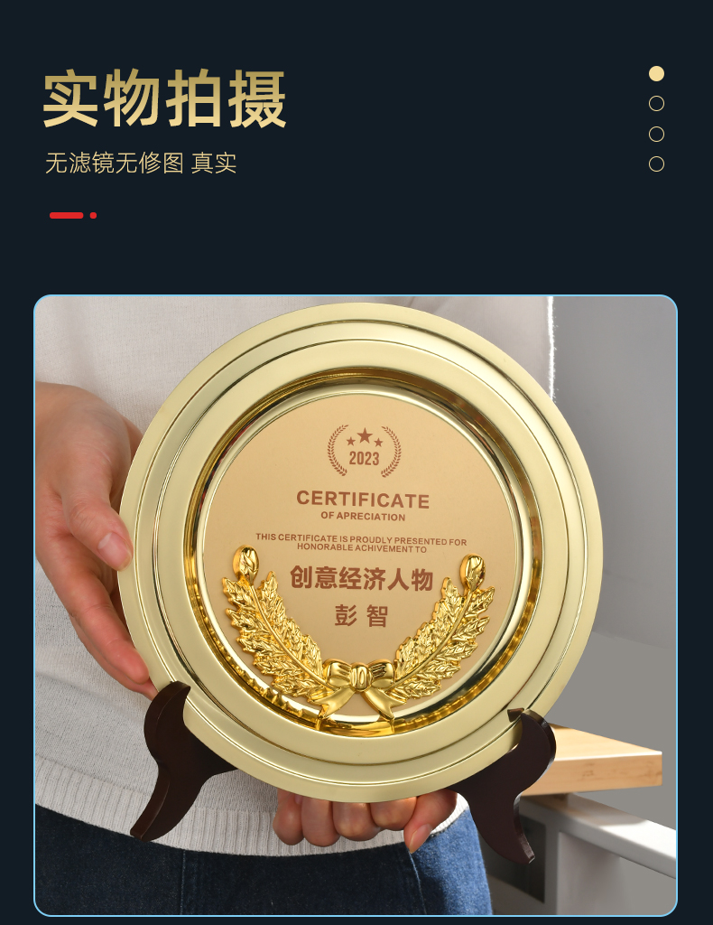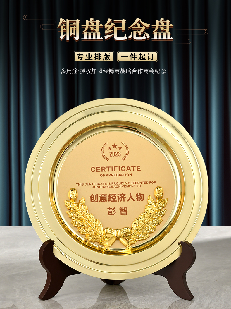 528 / 【铜盘奖盘】奖盘定制定做金属奖杯圆盘奖牌授权牌荣誉牌景泰蓝铜盘摆盘纪念品