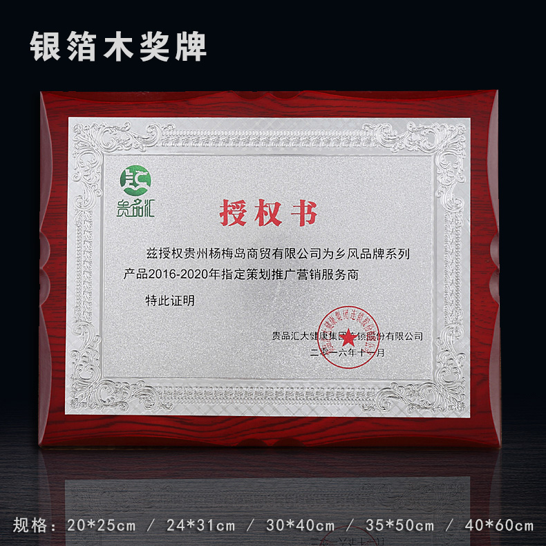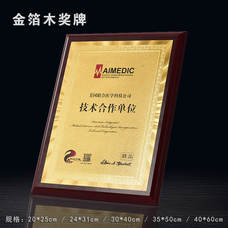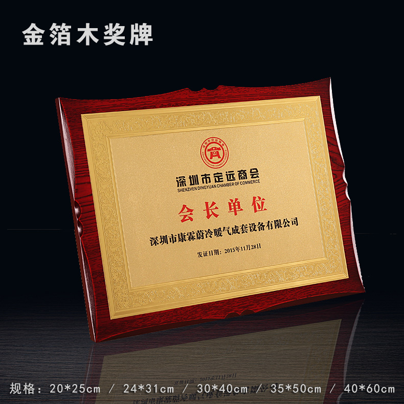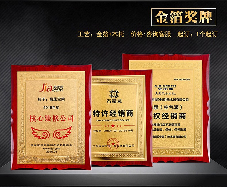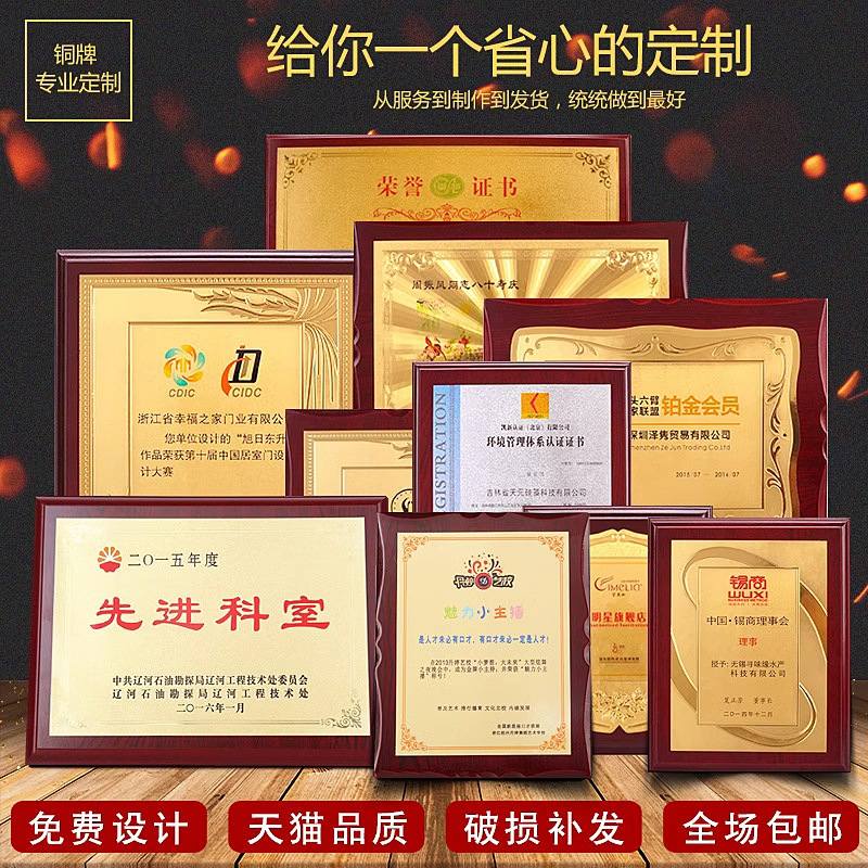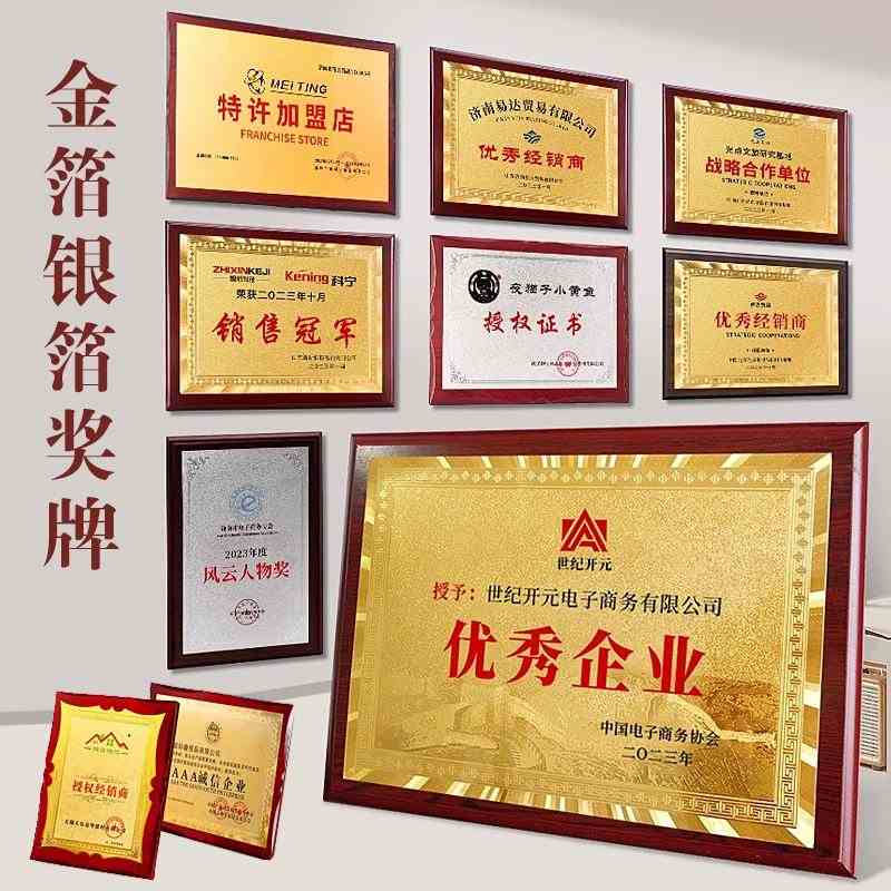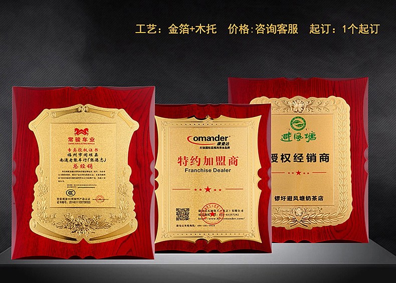 508 / 金箔奖牌定制定做实木授权牌荣誉牌牌匾制作木托铜牌木质代理证书