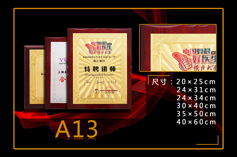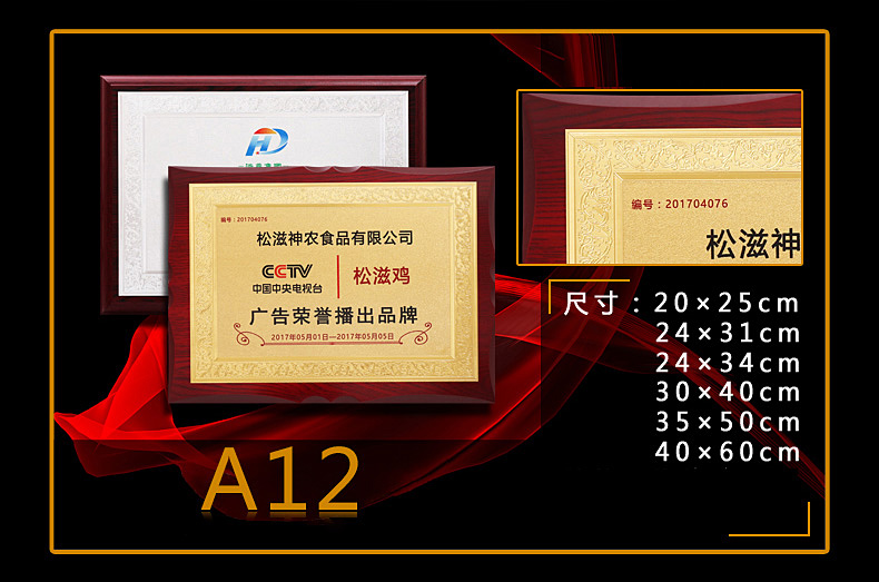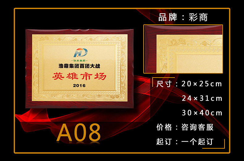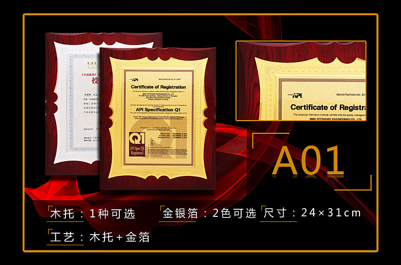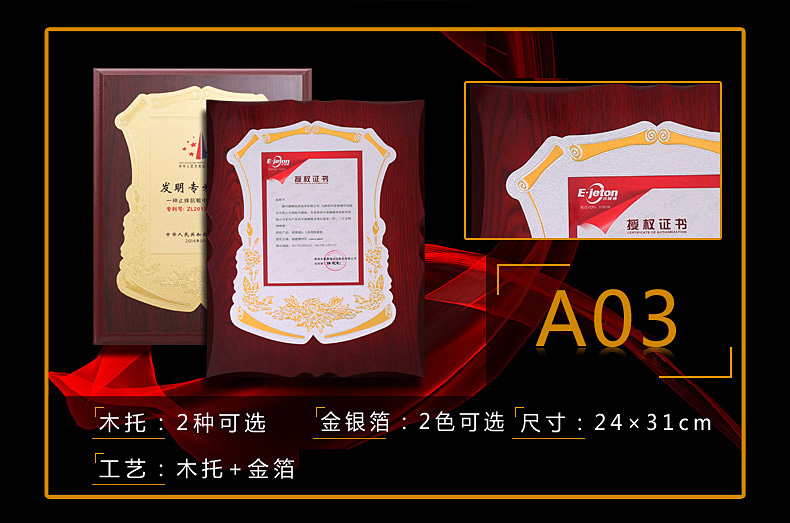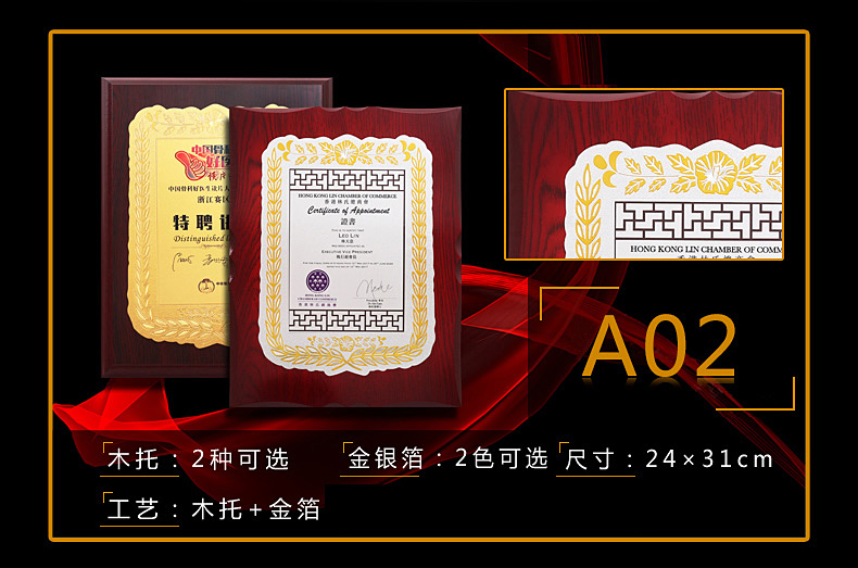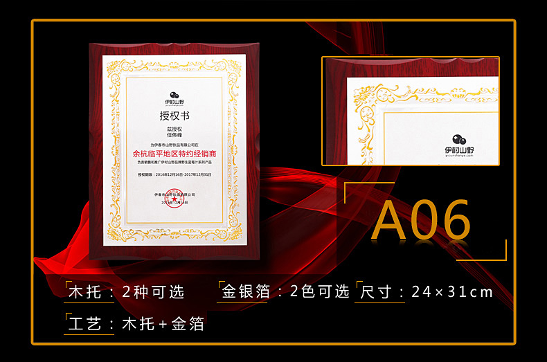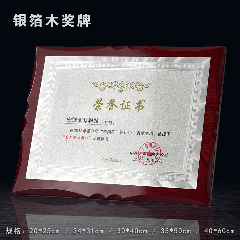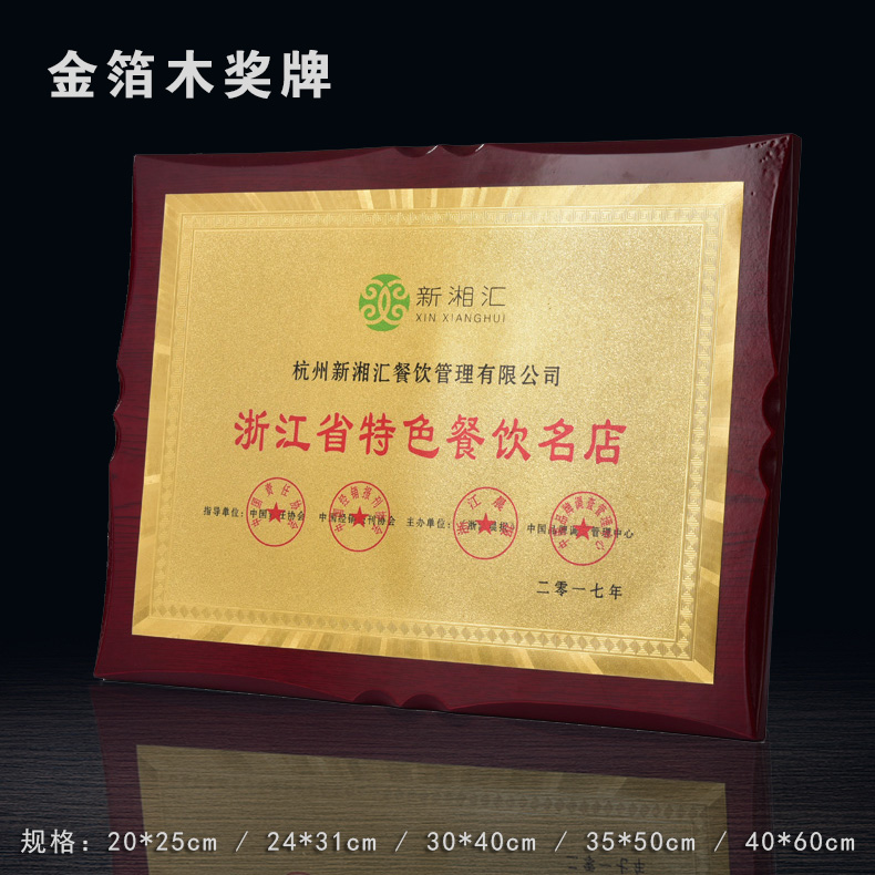 508 / 金箔奖牌定制定做实木授权牌荣誉牌牌匾制作木托铜牌木质代理证书