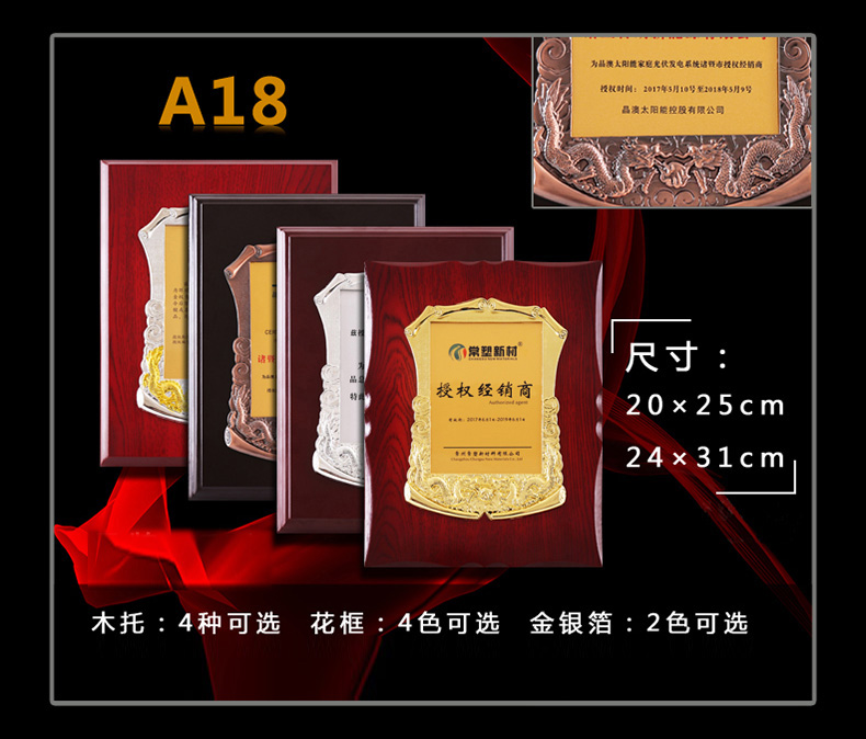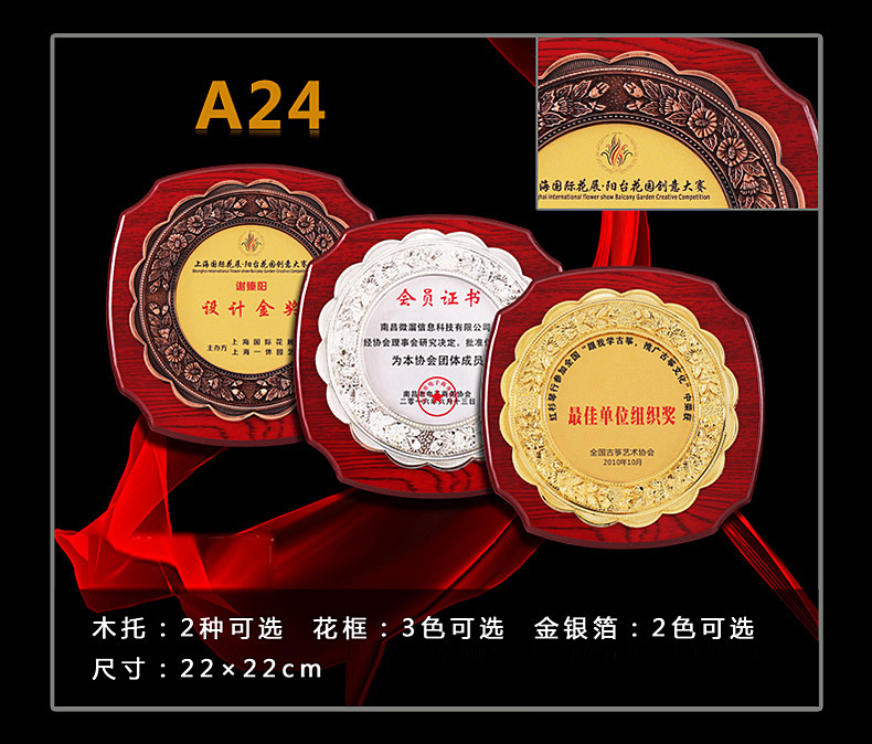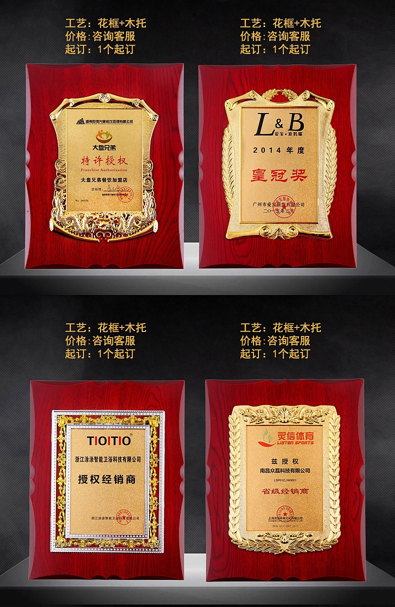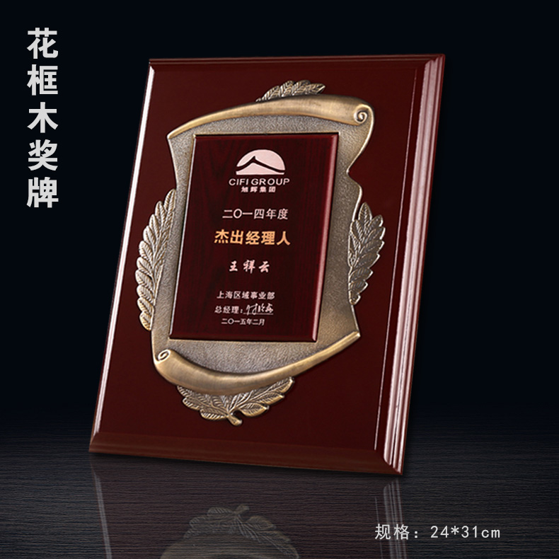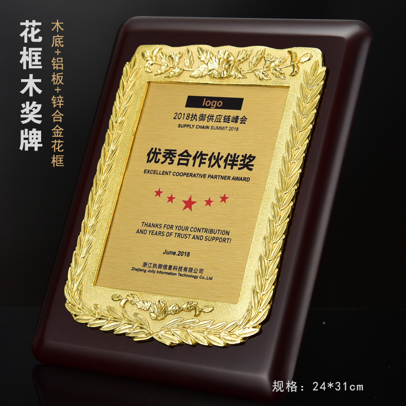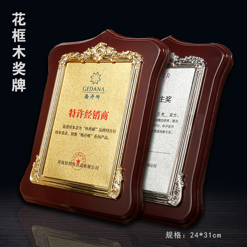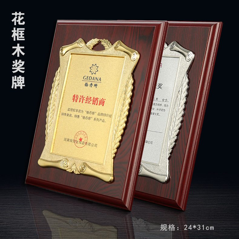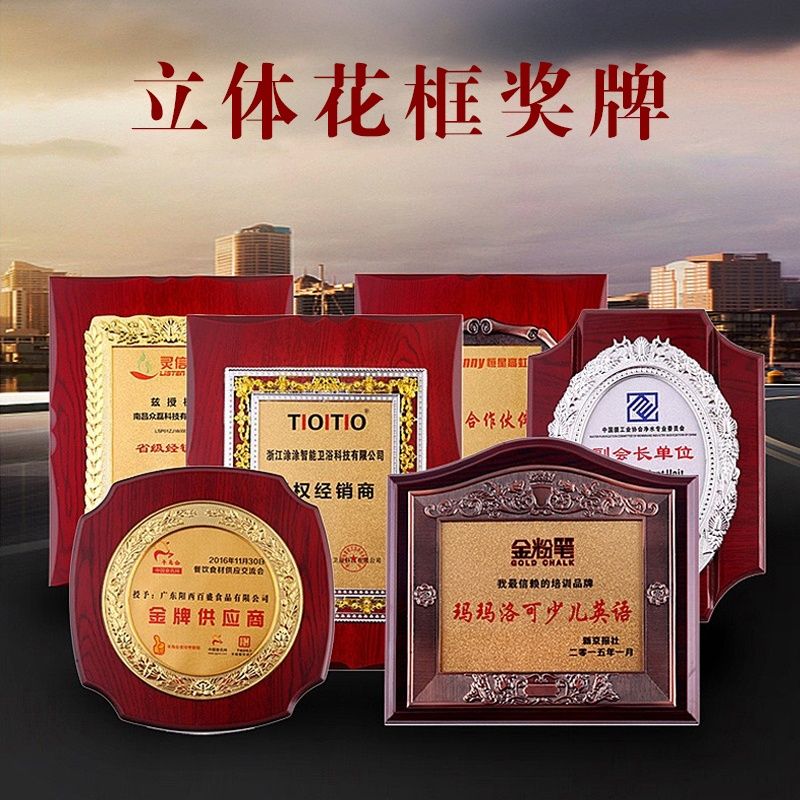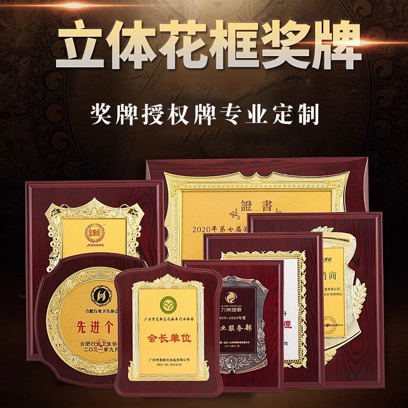 508 / 立体花框奖牌花框金箔奖牌荣誉公司牌匾制作定制定做水晶授权牌子木质
