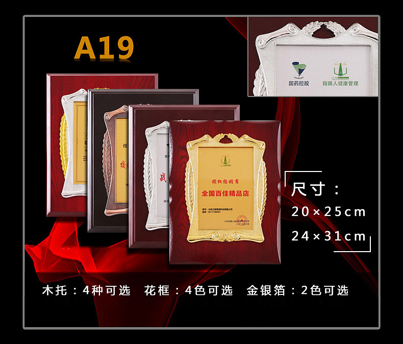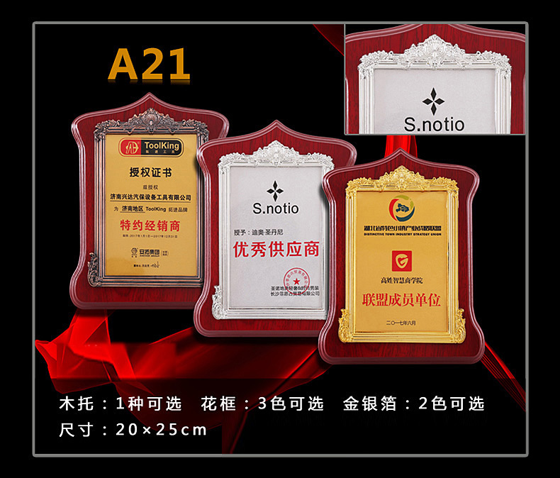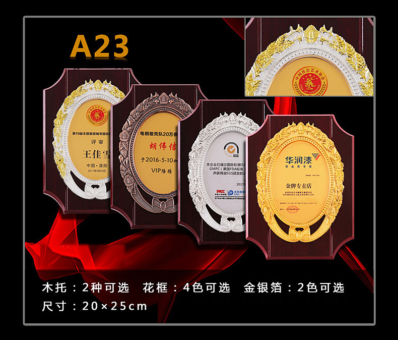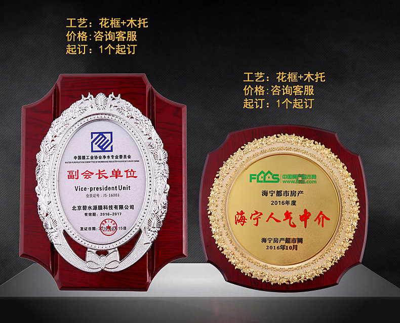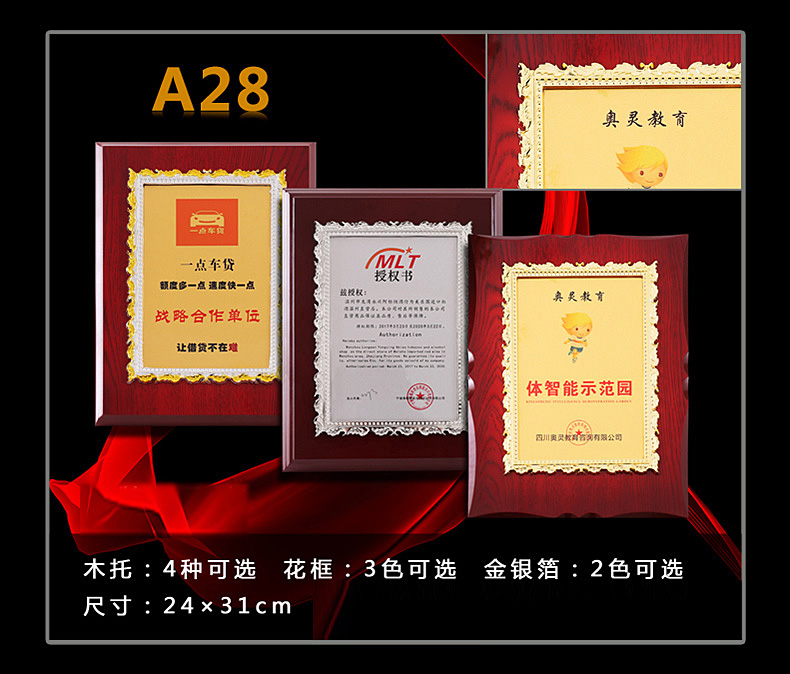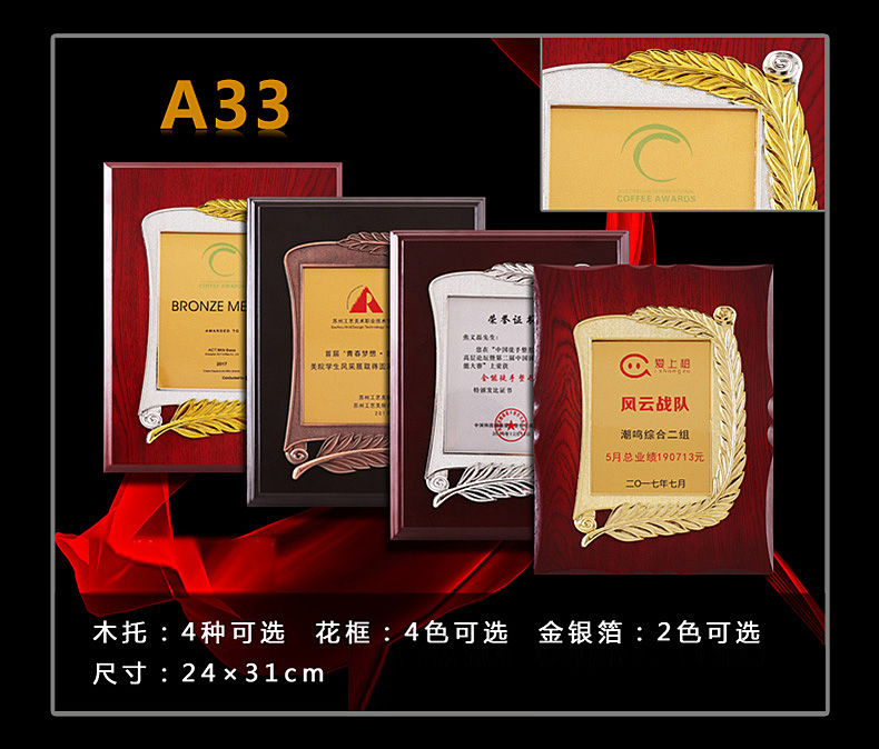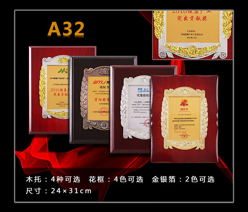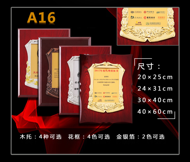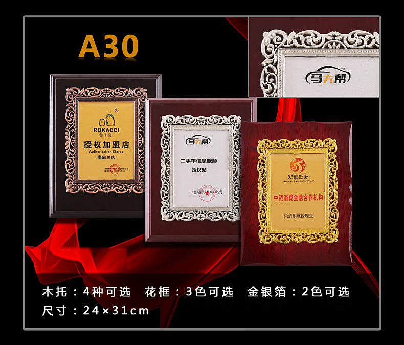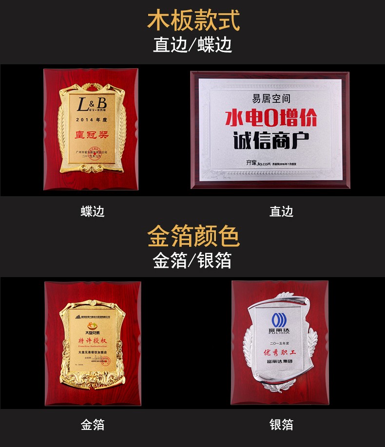 508 / 立体花框奖牌花框金箔奖牌荣誉公司牌匾制作定制定做水晶授权牌子木质