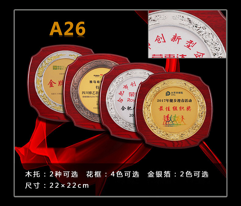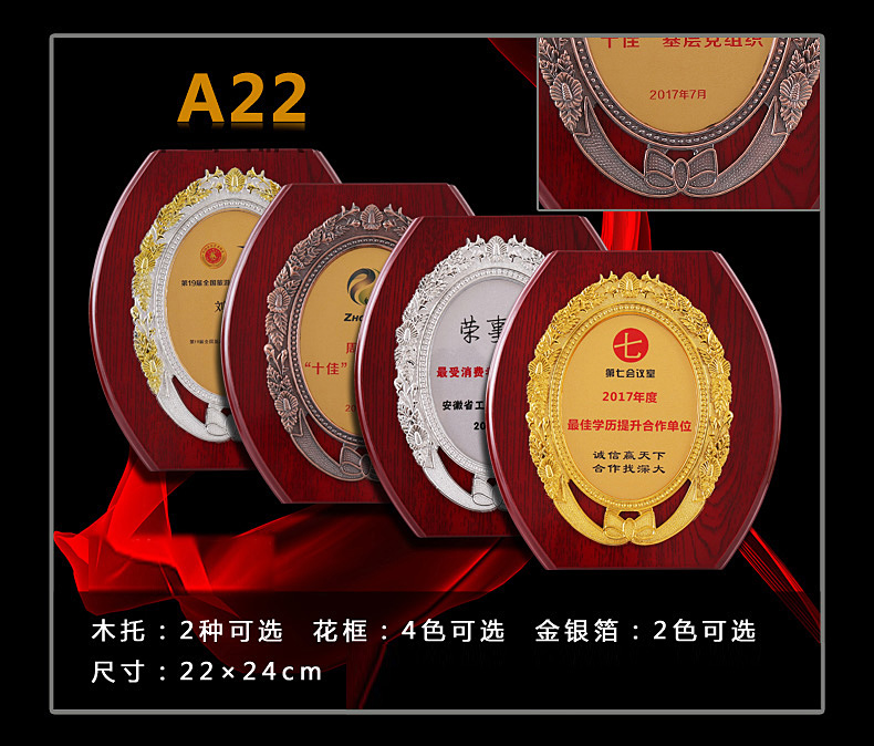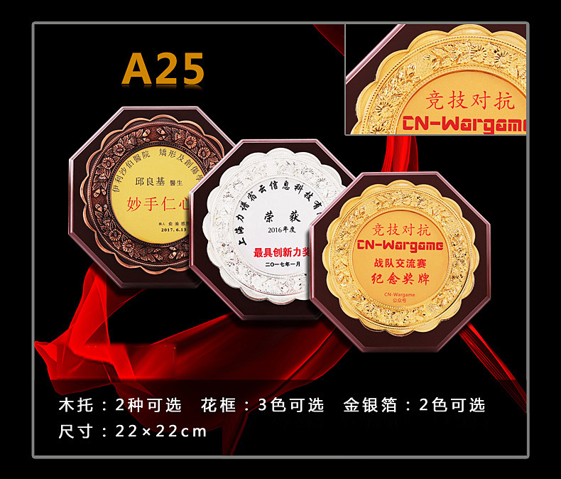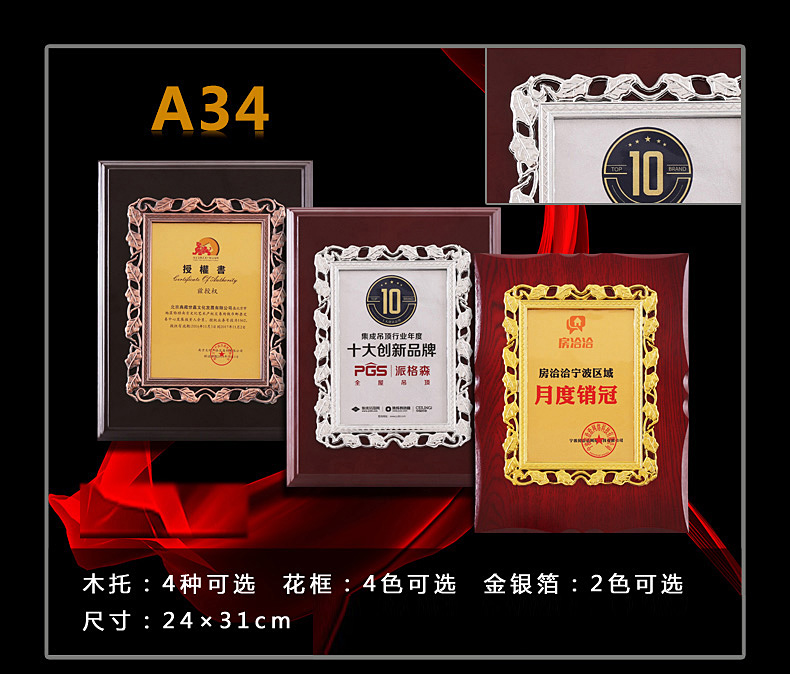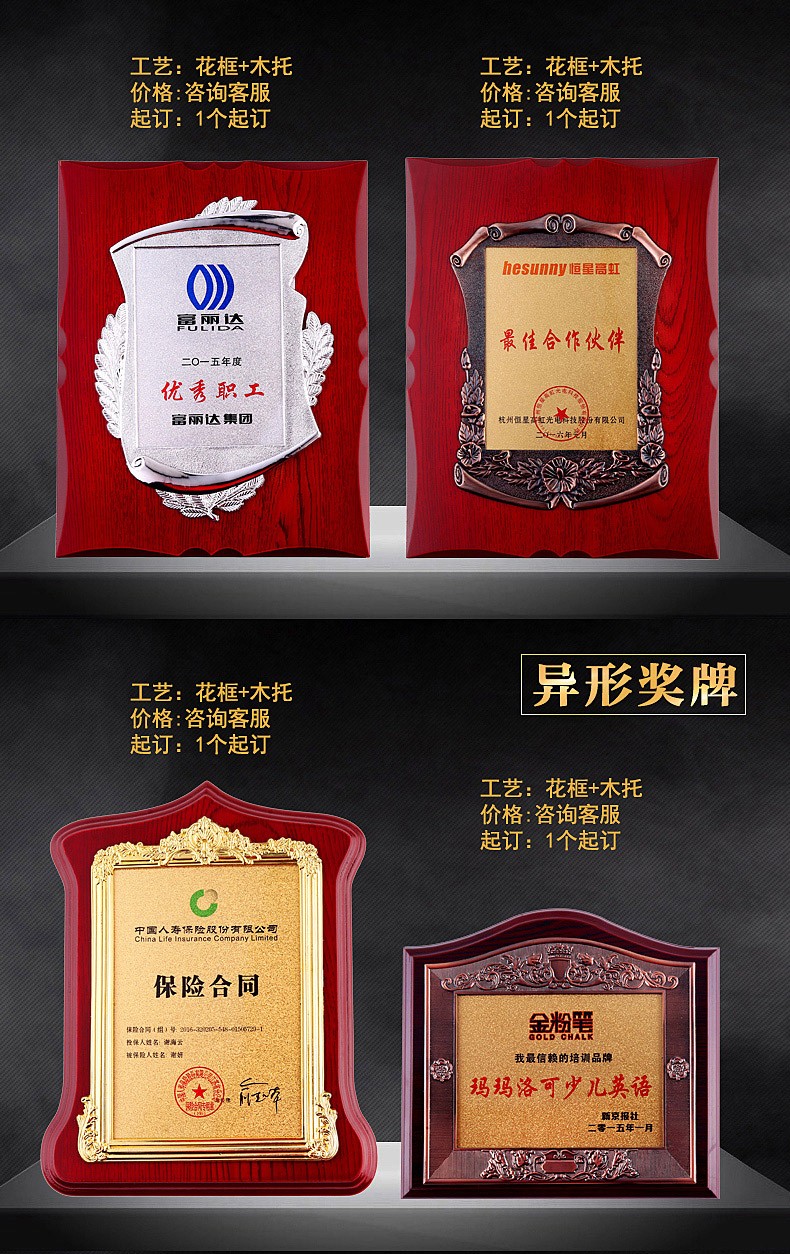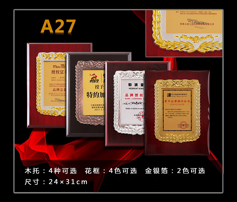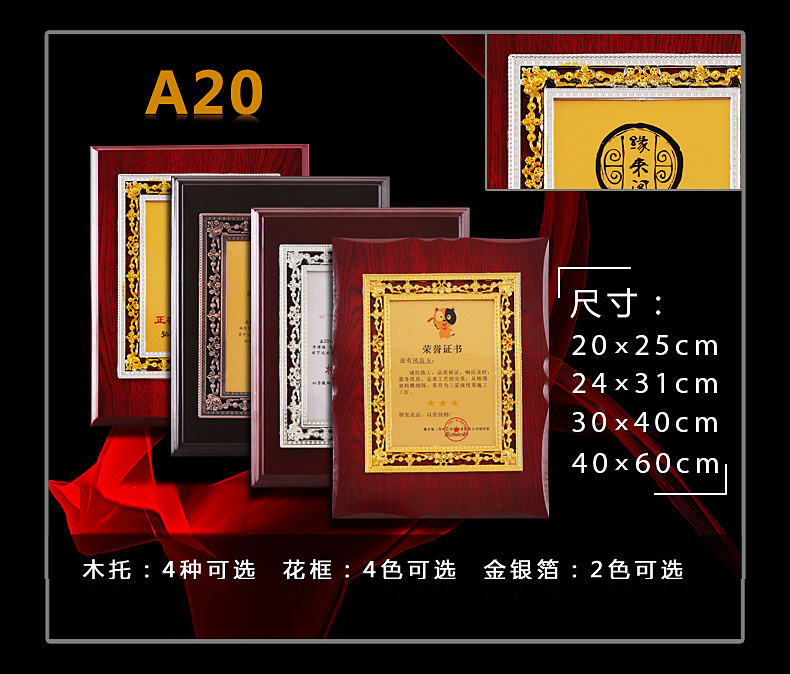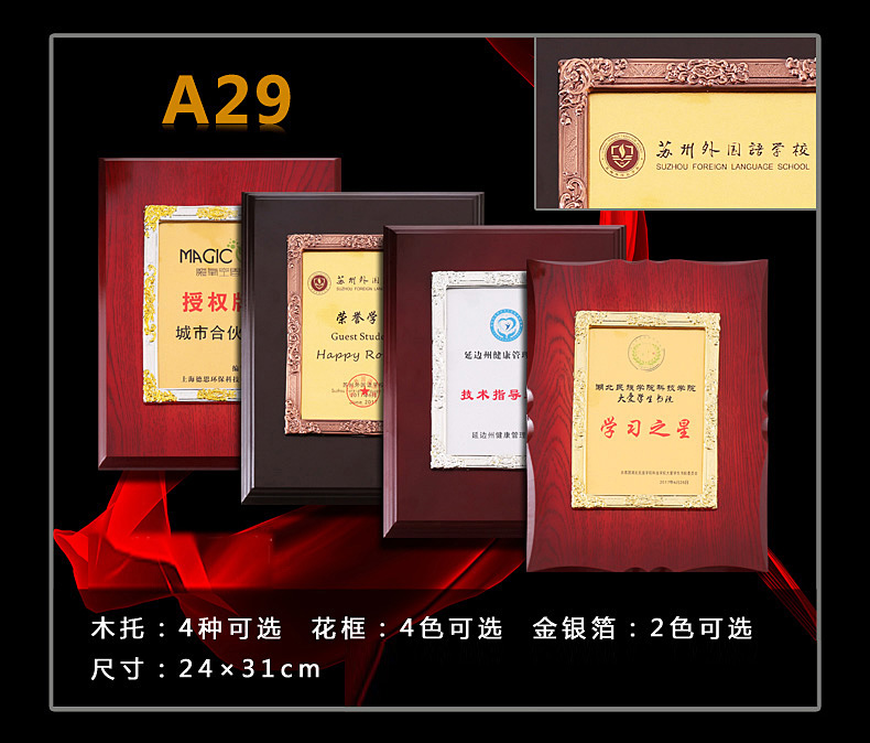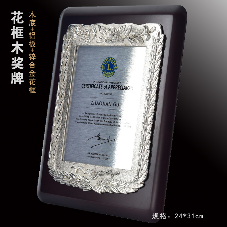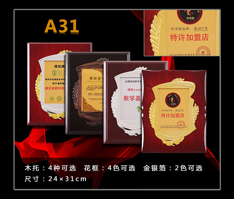 508 / 立体花框奖牌花框金箔奖牌荣誉公司牌匾制作定制定做水晶授权牌子木质