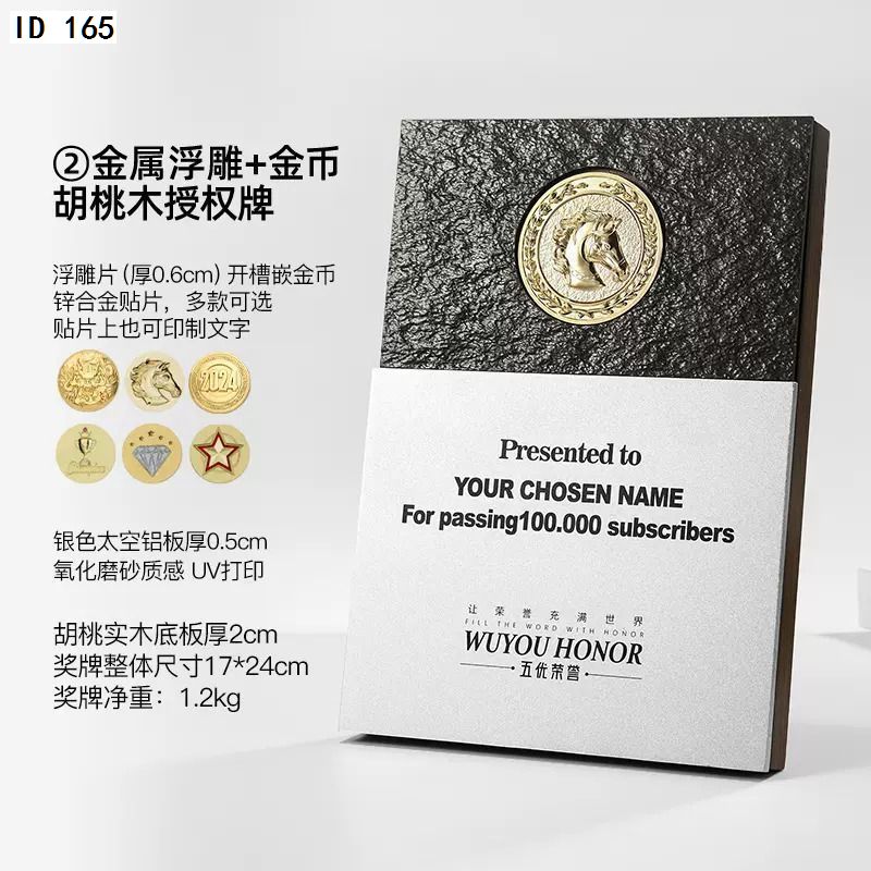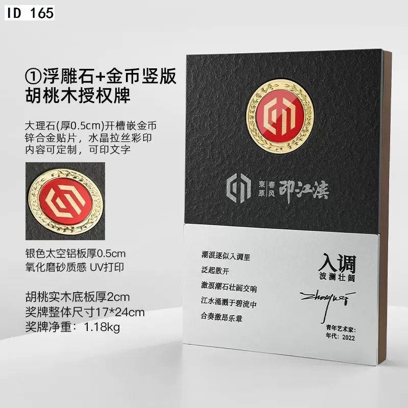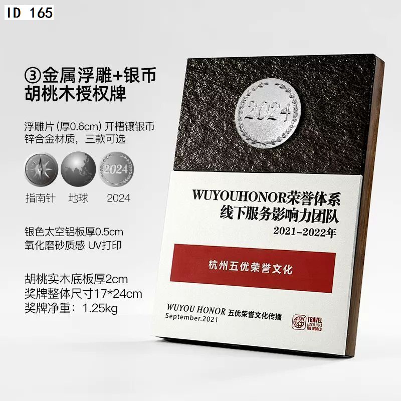508 / 金属绒布边授权牌经销商荣誉代理商奖牌退休纪念奖杯铜牌定制定做