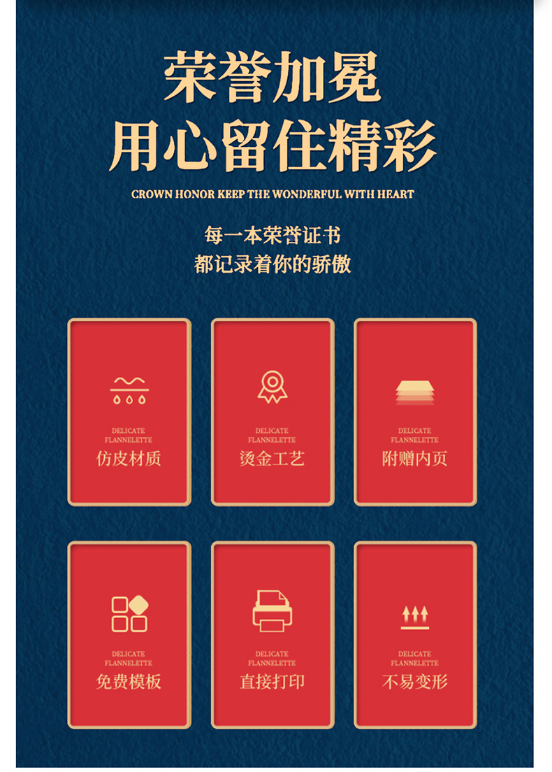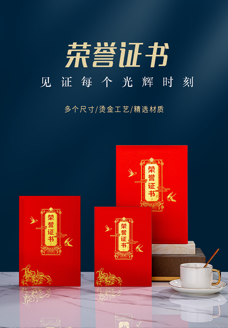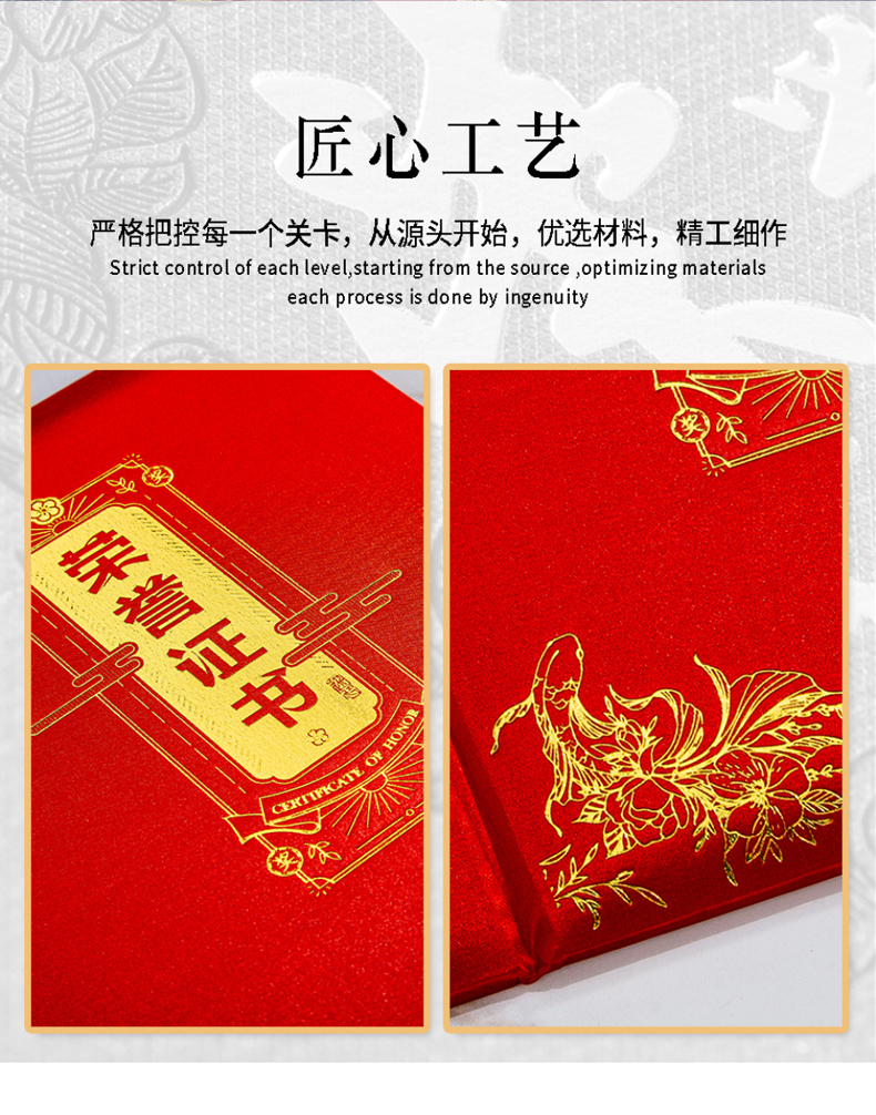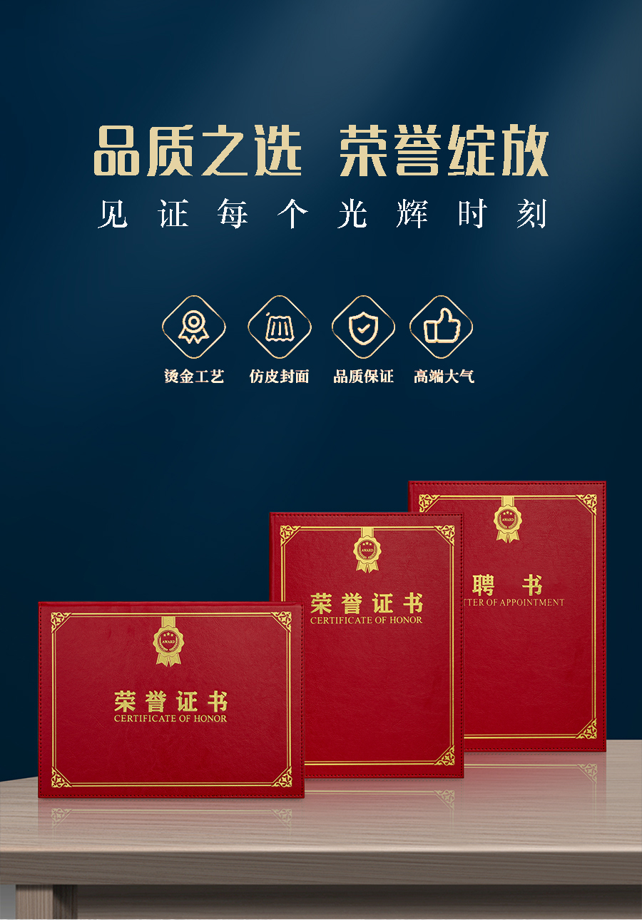 744 / 烫金荣誉证书定制定做高档大气聘书优秀员工培训结业比赛颁奖证书