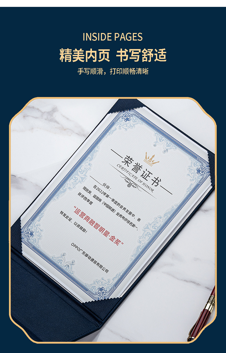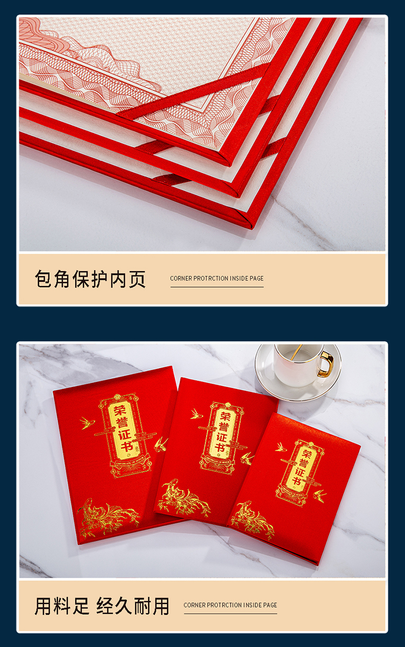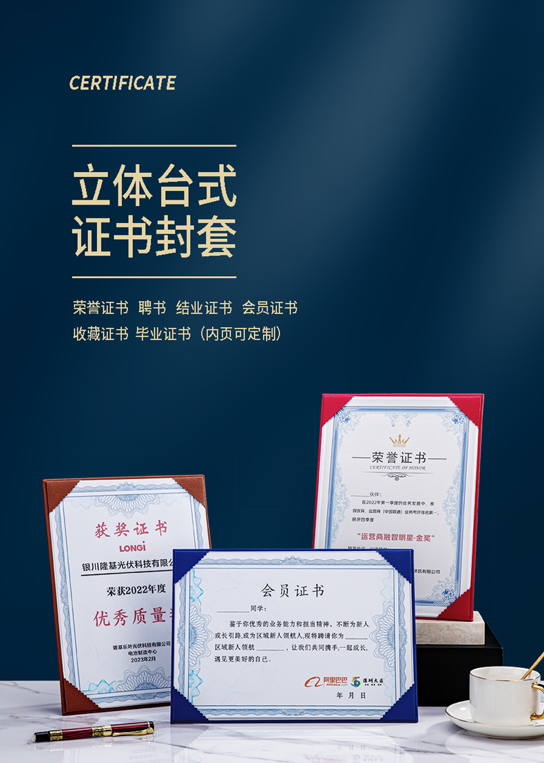 744 / 烫金荣誉证书定制定做高档大气聘书优秀员工培训结业比赛颁奖证书